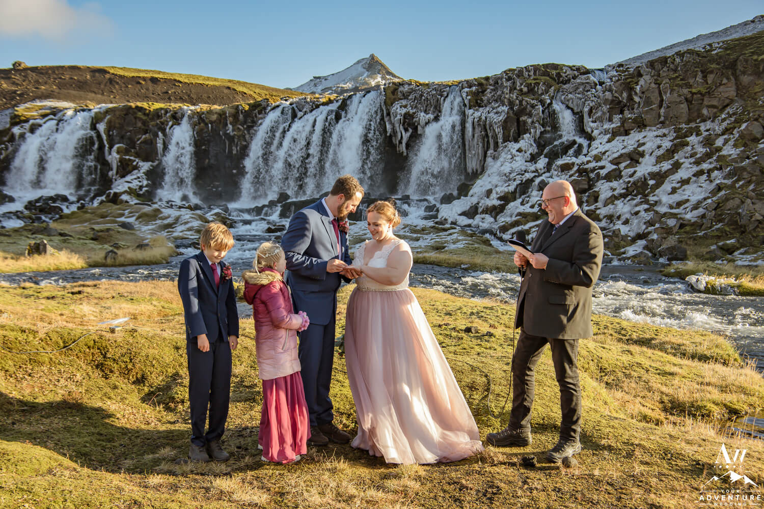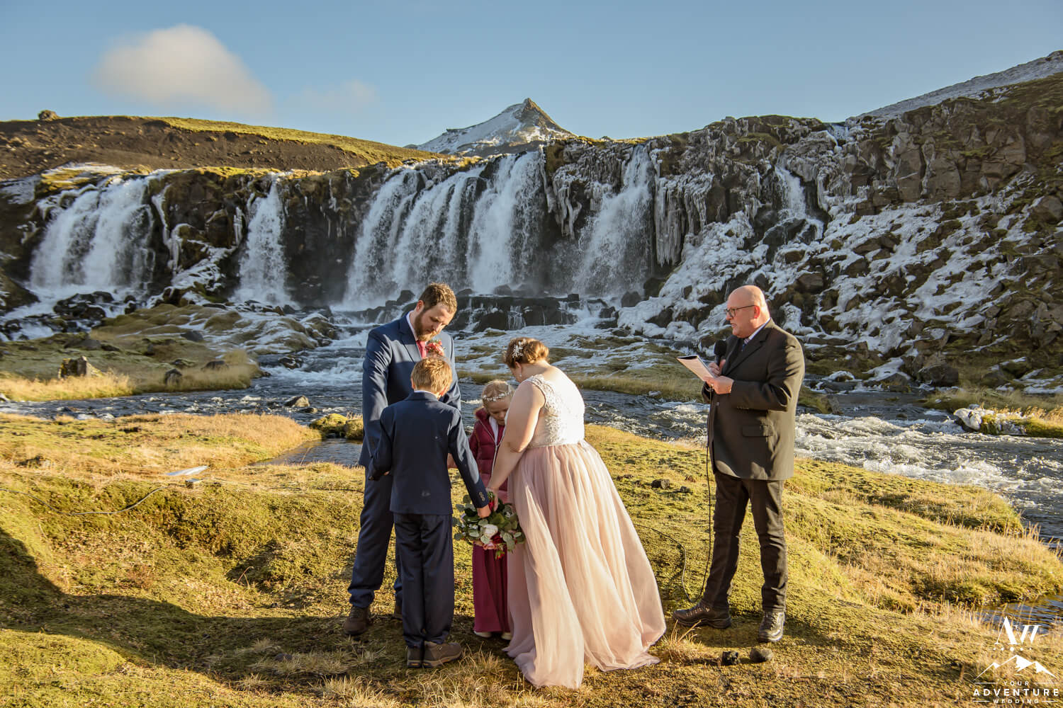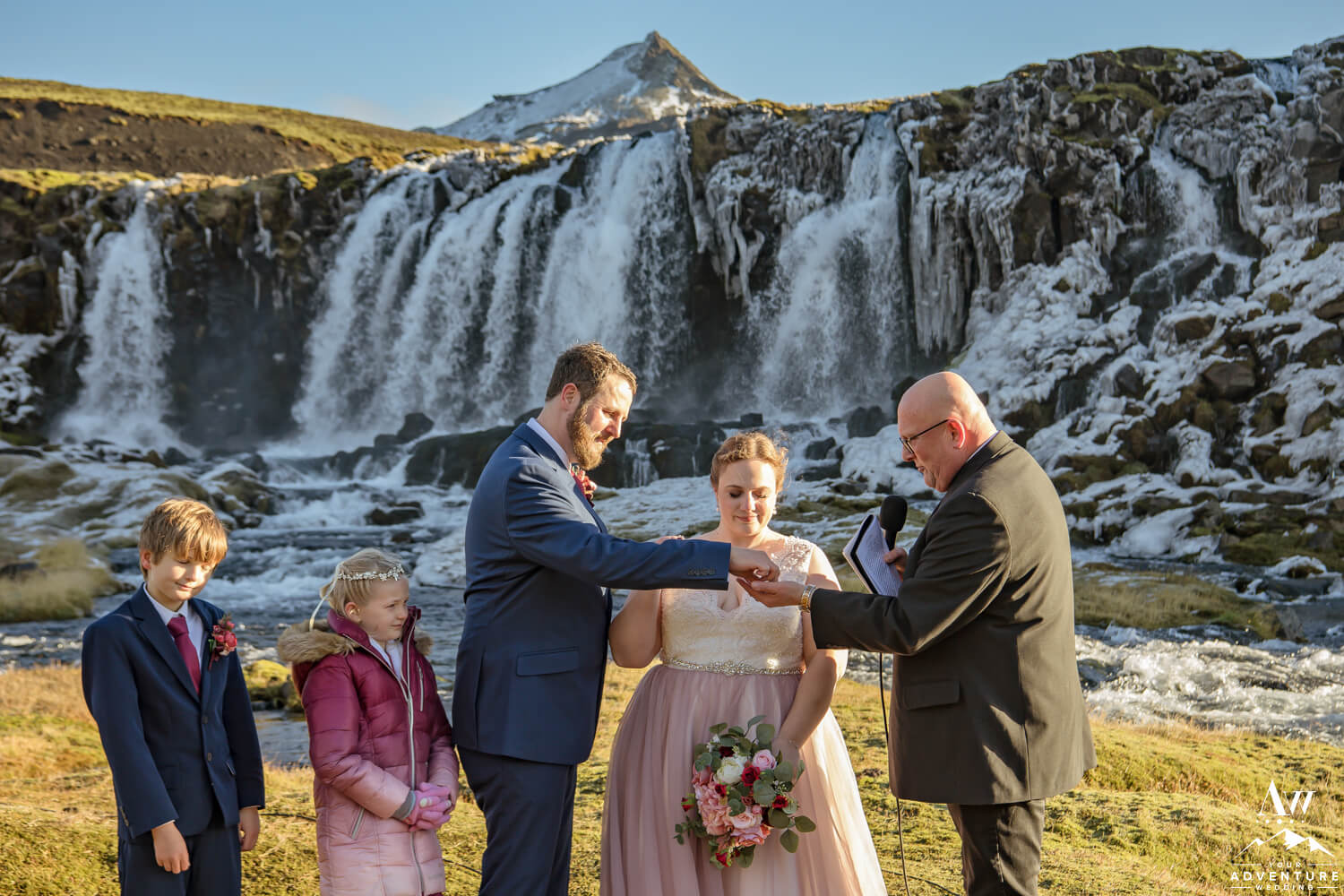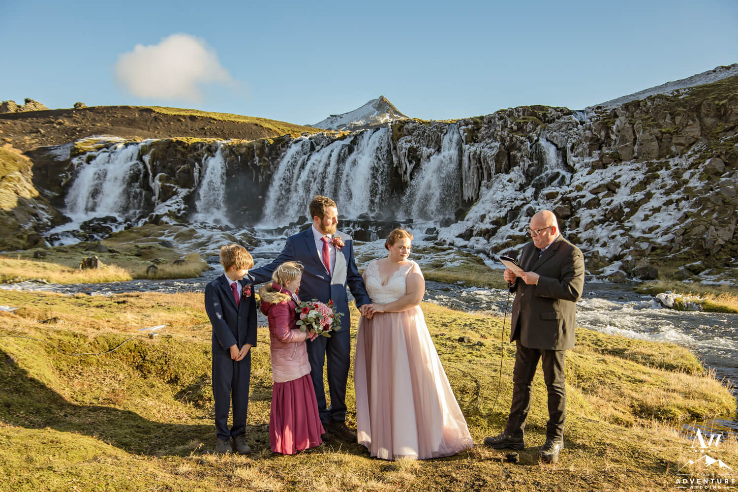 It was important to Christine and Jonathan that they not only gift themselves but also their loved ones of a once in a lifetime experience. That translated, to them choosing one of our favorite highland waterfalls to hold their October adventure wedding ceremony. An exciting drive chockful of river crossings, fall landscapes, and good vibes led them to the magical Iceland wedding location.