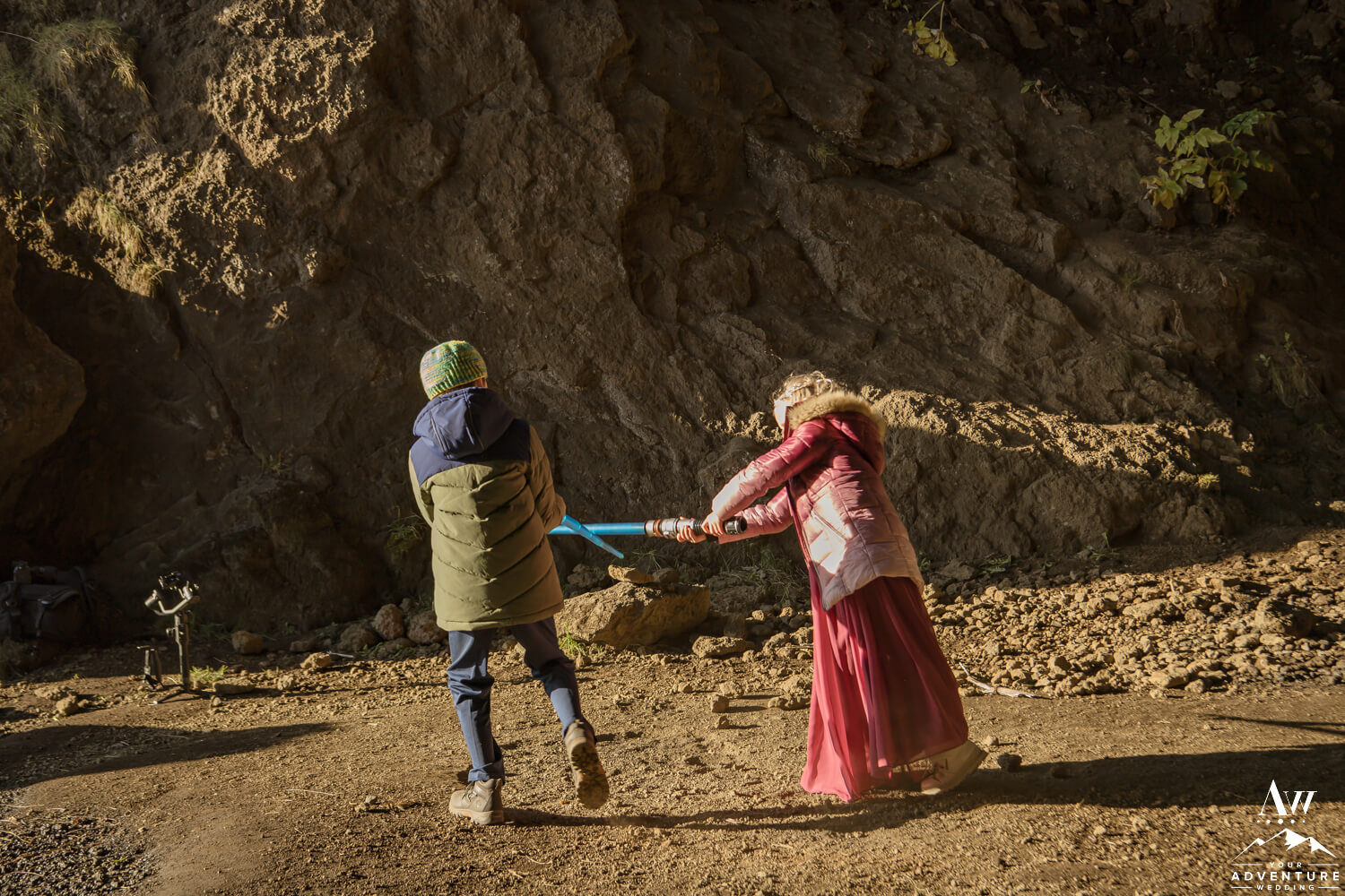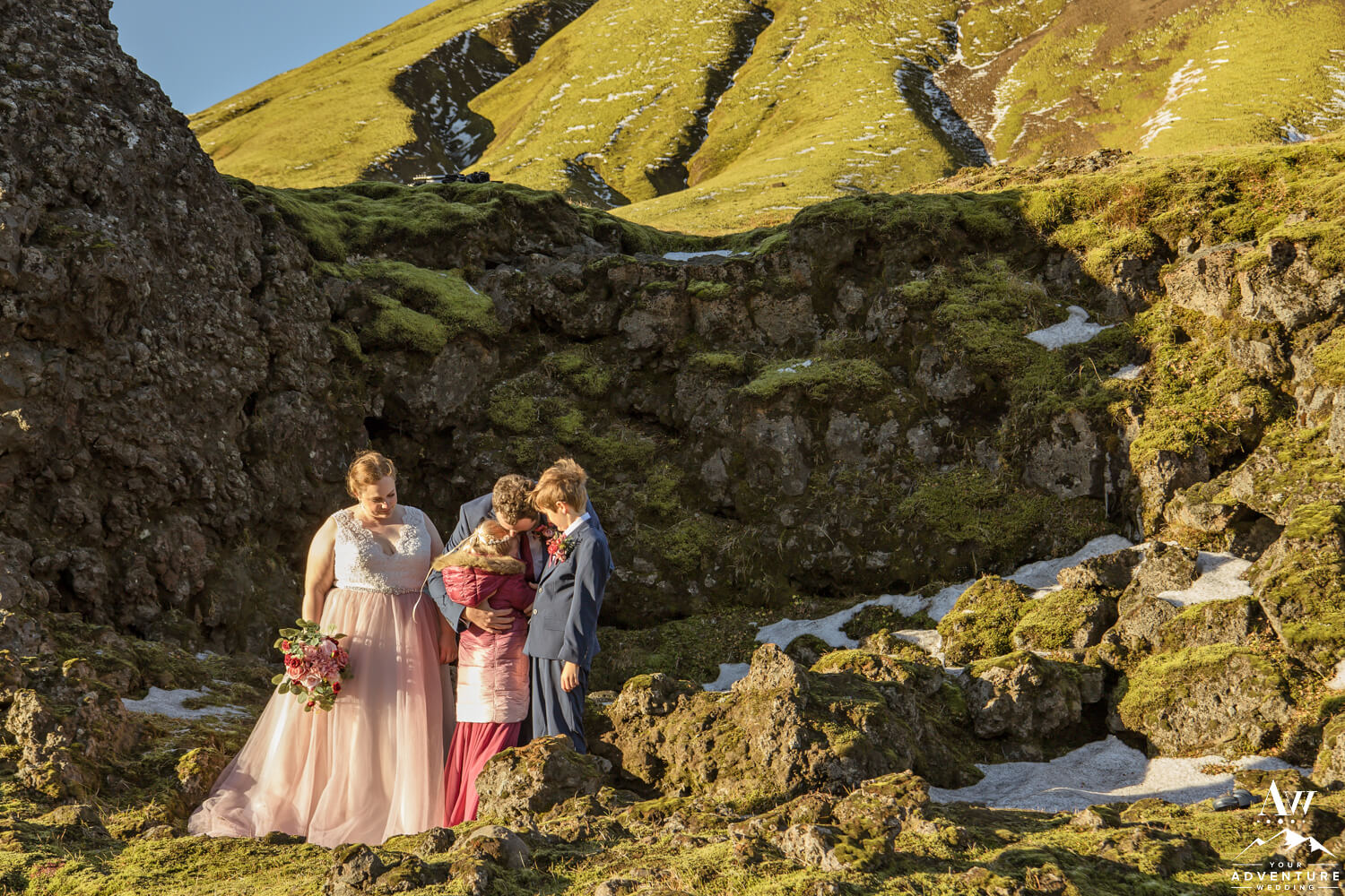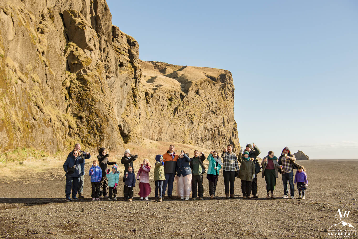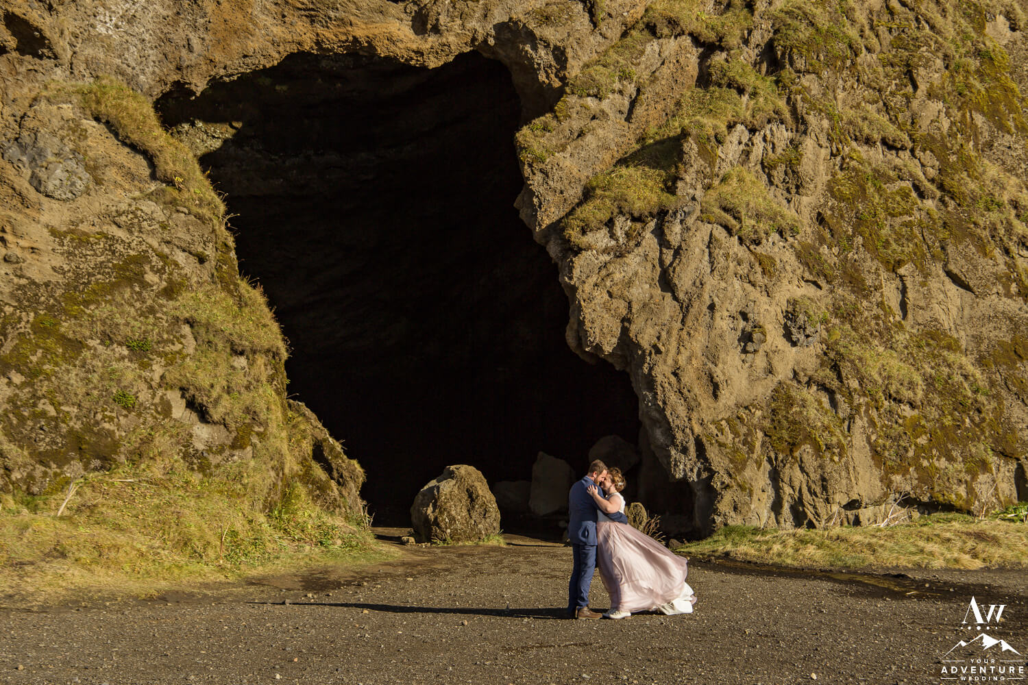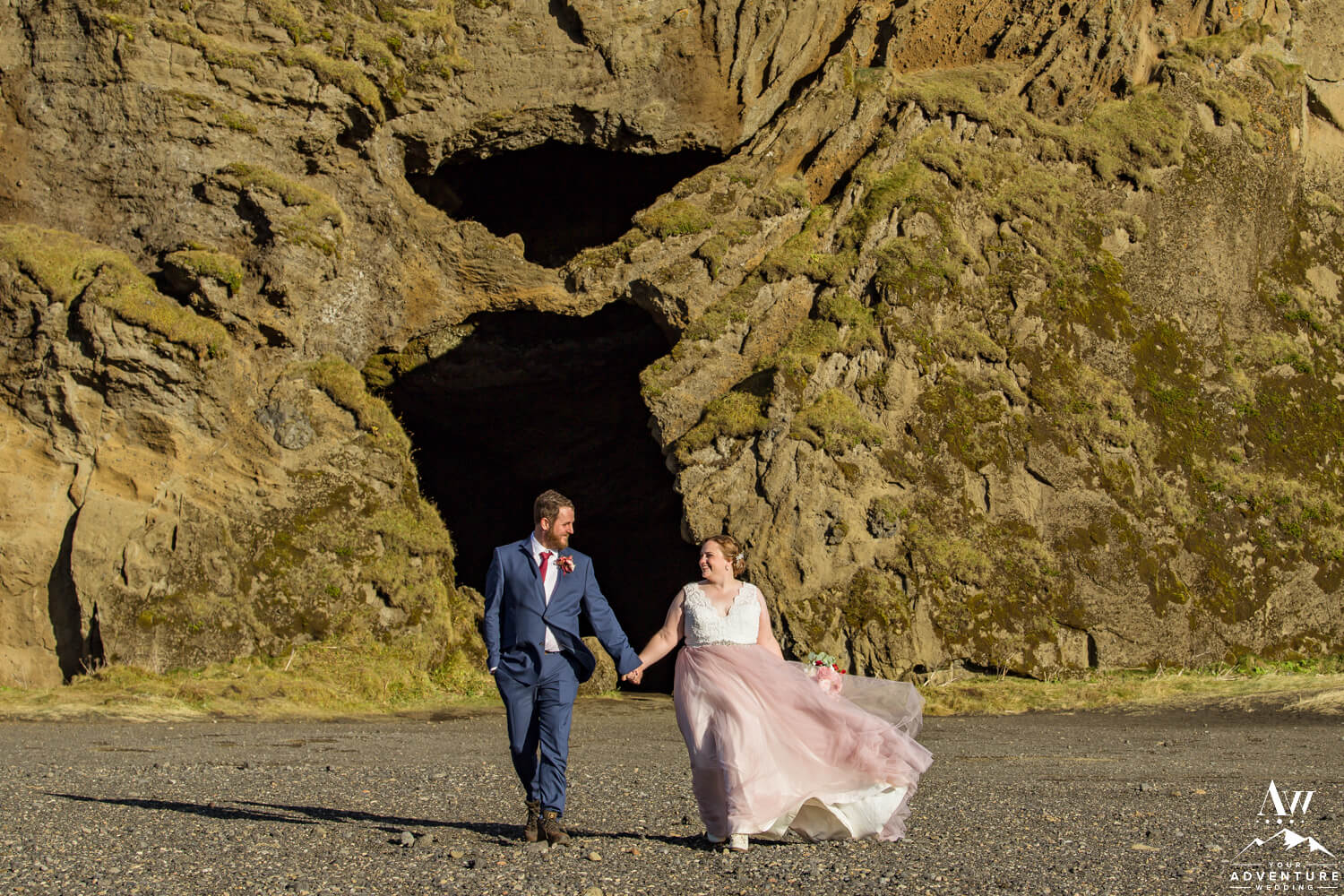Meanwhile the October adventure wedding itinerary brought us next to the famed “Yoda Cave” (aka Gígjagjá or Hjörleifshöfði). Why? Well for a Viking style toast, Icelandic hot dog BBQ, discovery of the cave inside and out! The newlyweds and the kids may or may not have had a light saber fight within! After all we are at times, all kids at heart!
