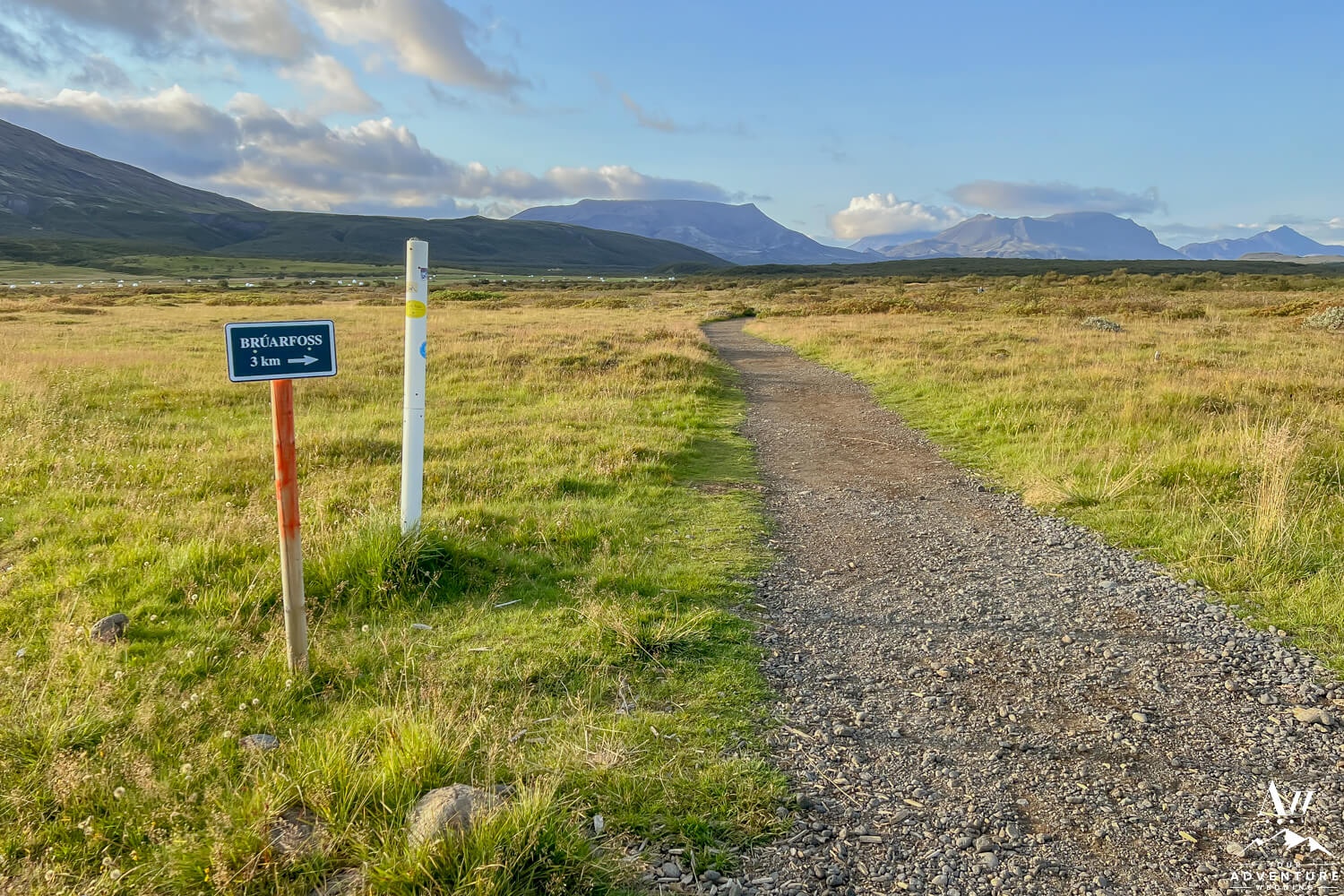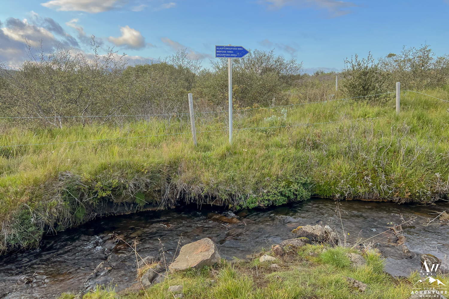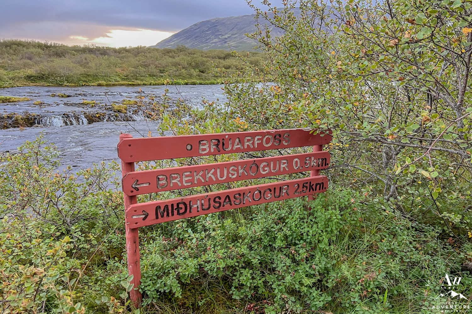 - Several times throughout the trail you’ll find signs directing you back to the Brúarfoss Waterfall path.