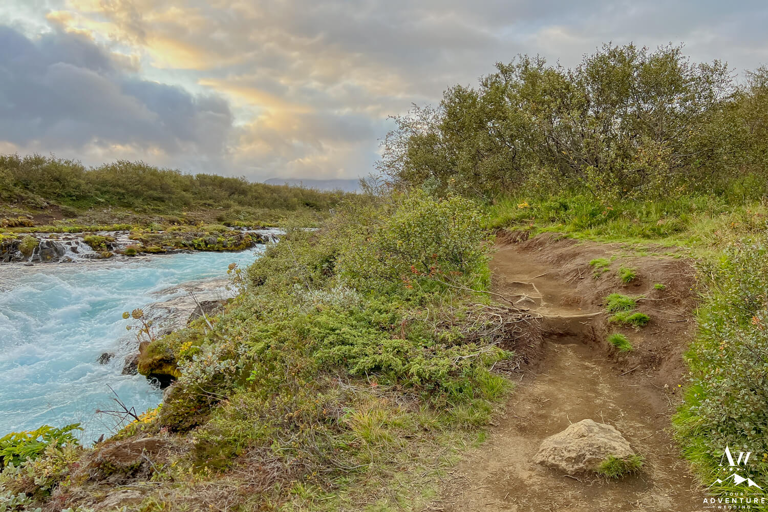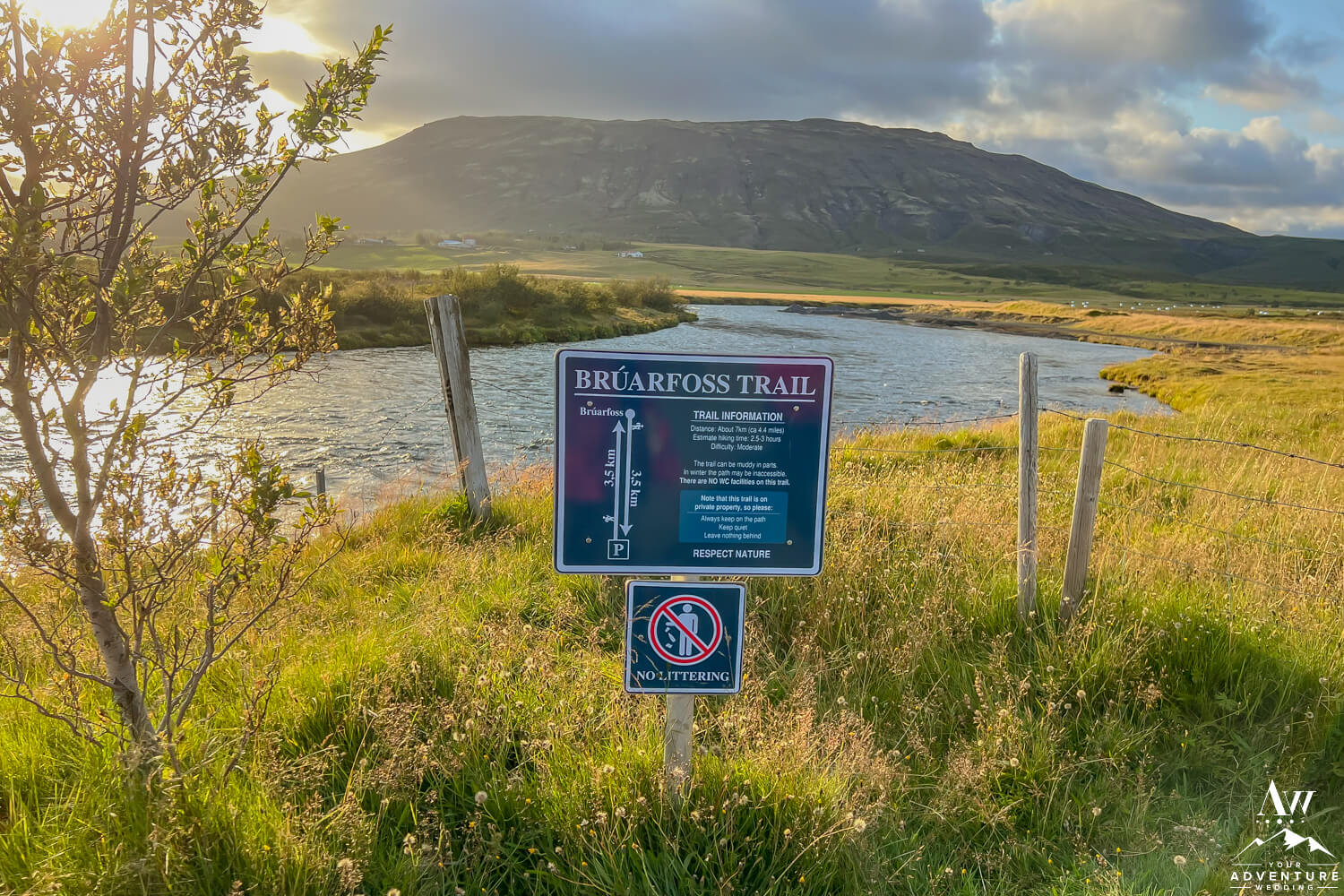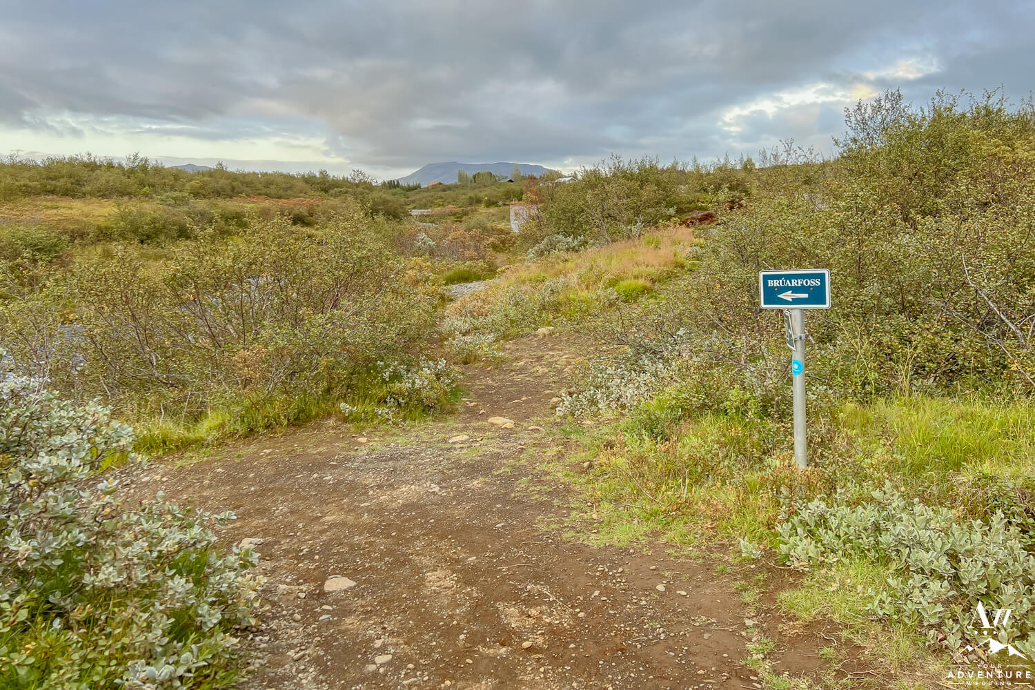 - Several times throughout the trail you’ll find signs directing you back to the Brúarfoss Waterfall path.