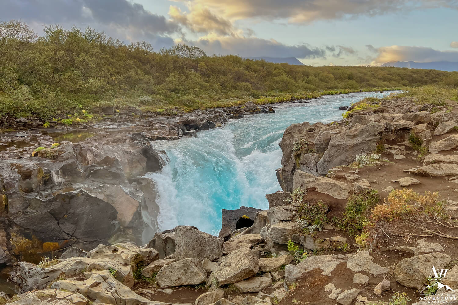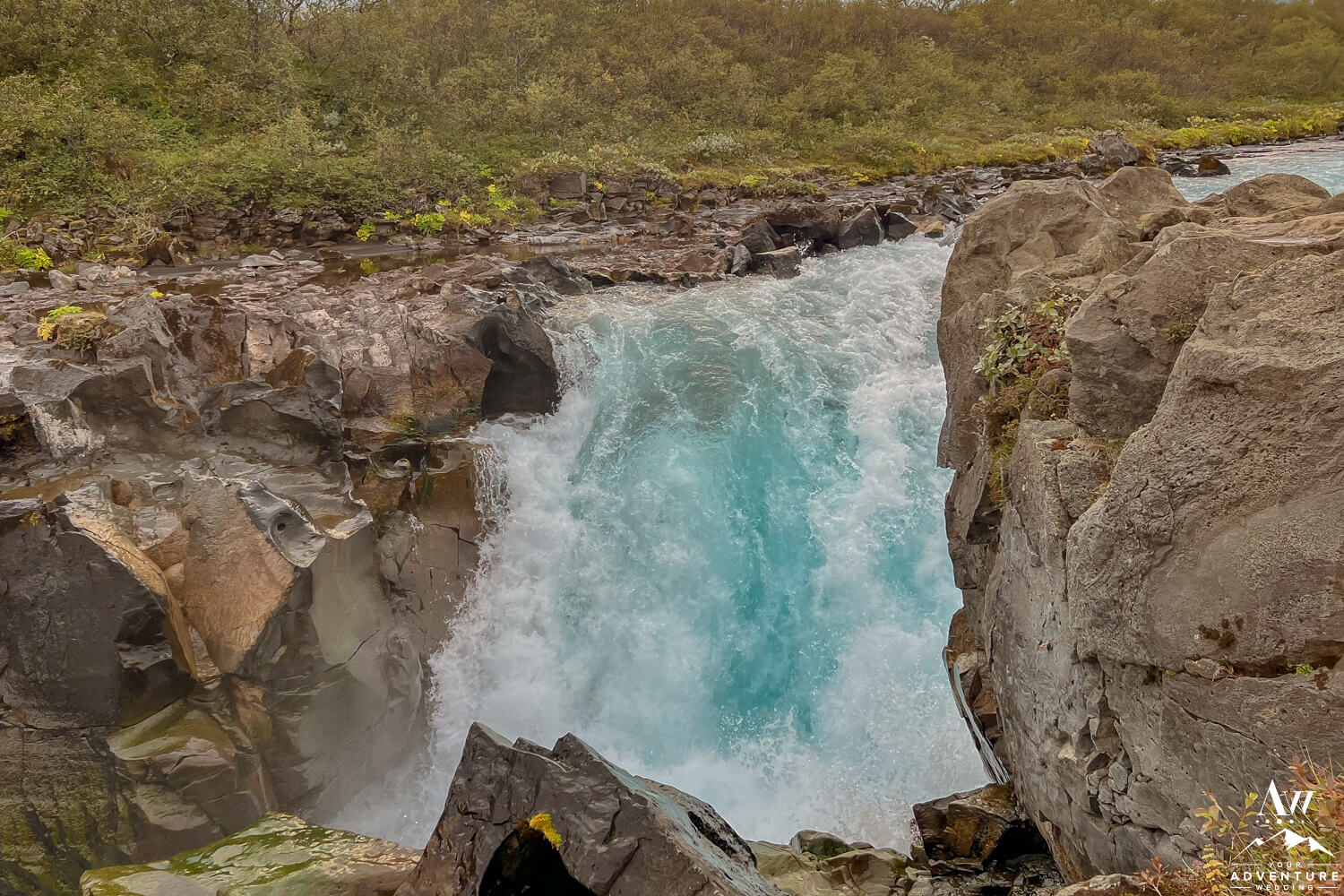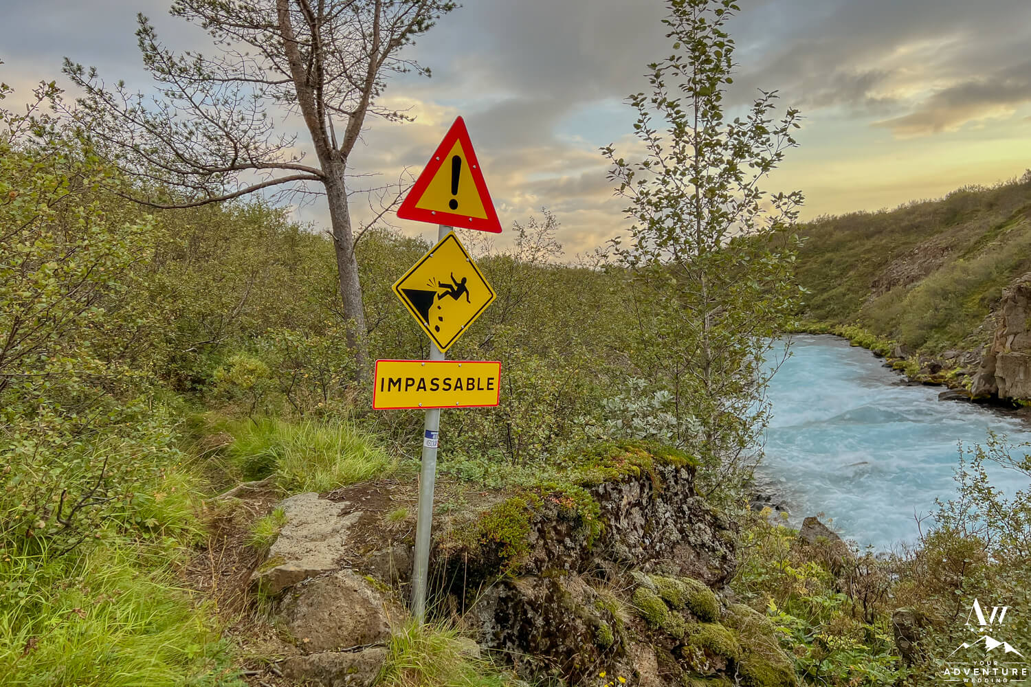 - Please heed the warnings throughout the Brúarfoss Waterfall area.