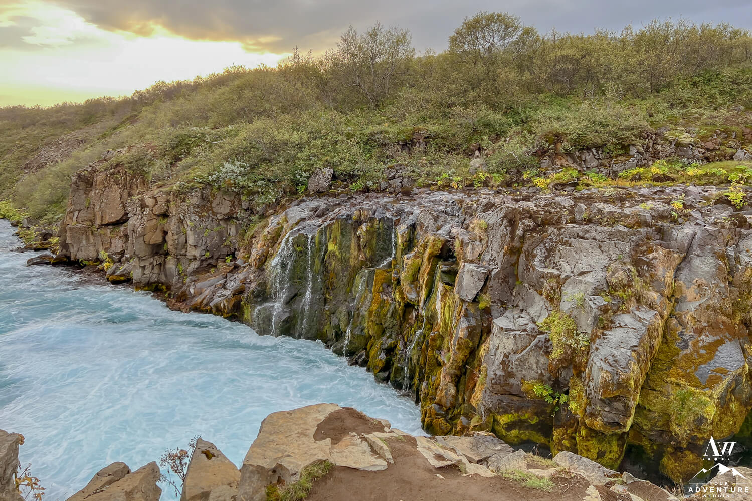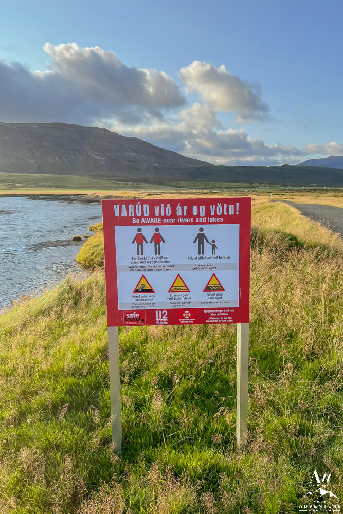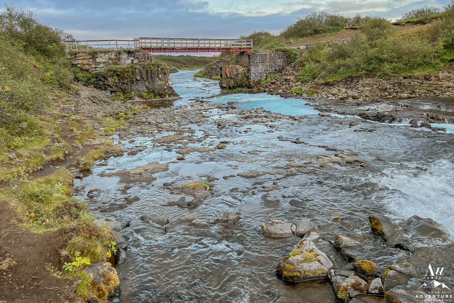 - Please heed the warnings throughout the Brúarfoss Waterfall area.