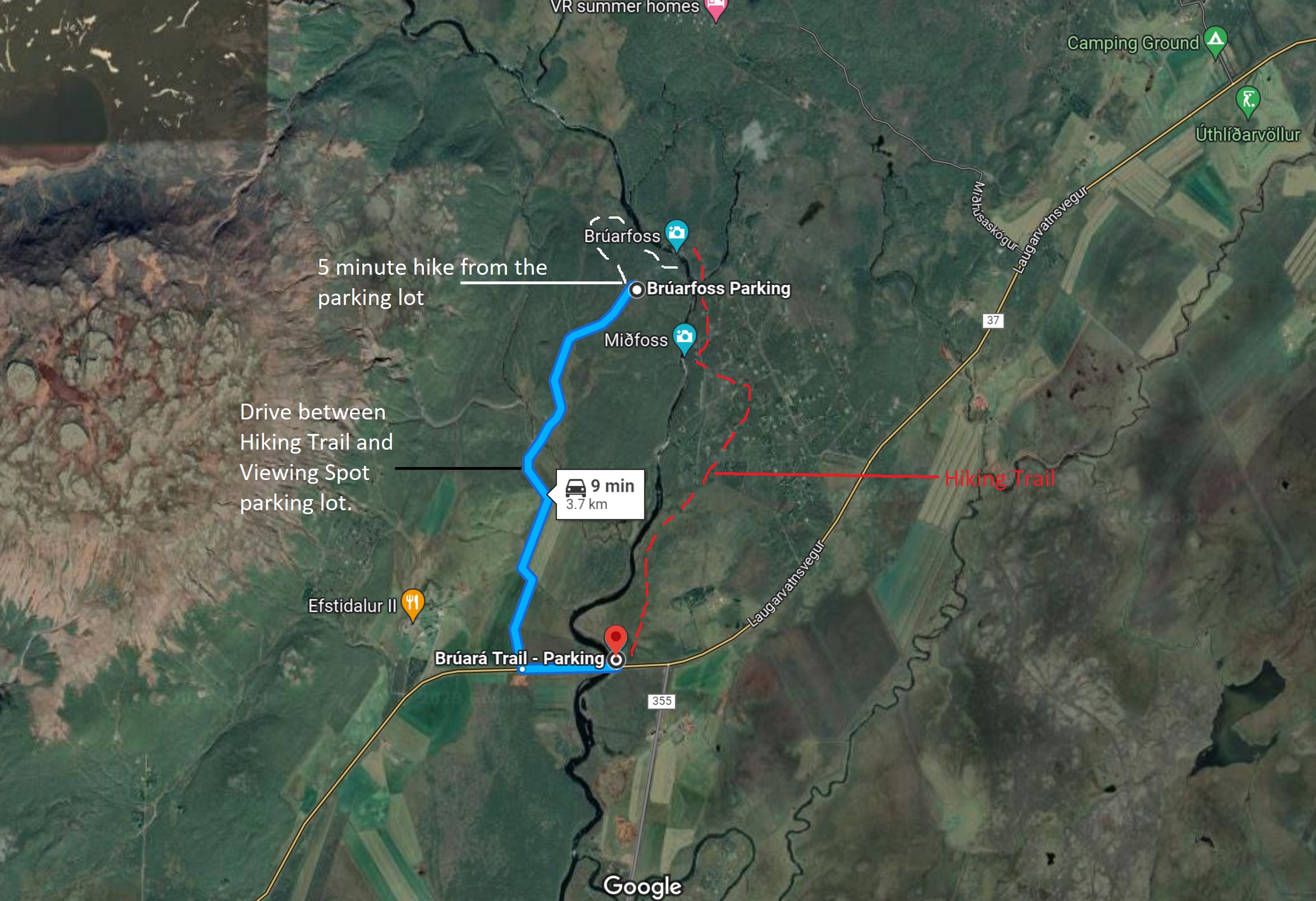- Brúarfoss Hike Parking Lot: Google Map (off of Route #37).