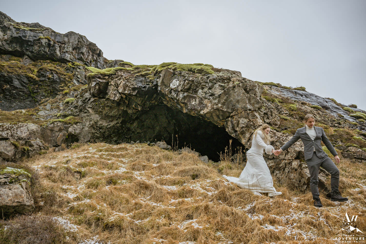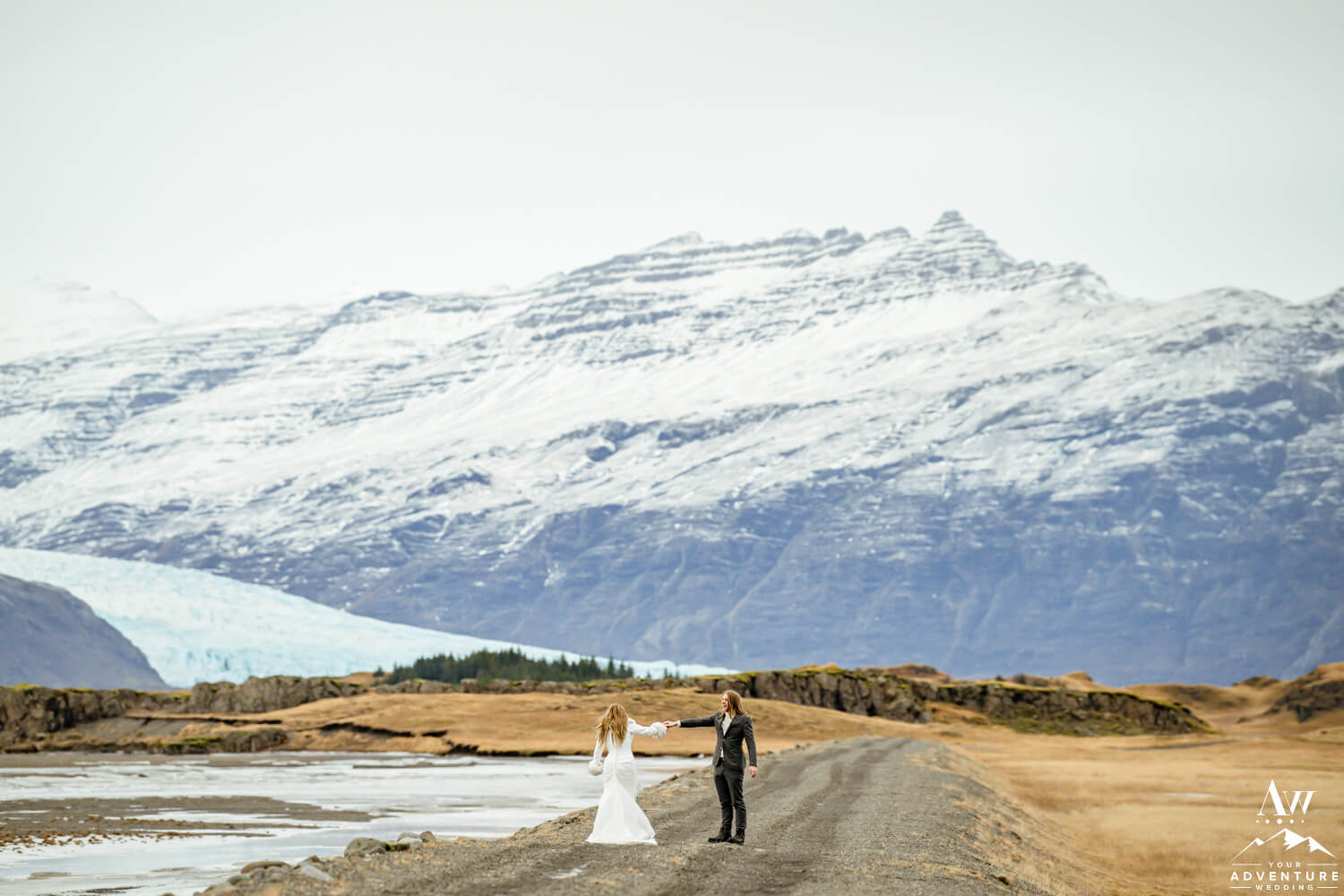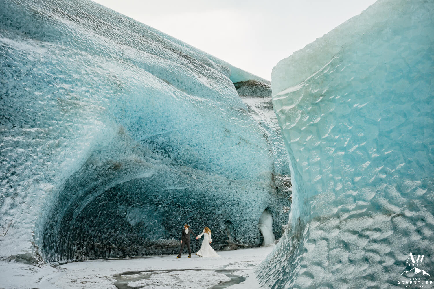 Next, when Peter and Eva set out to wedding plan, they knew eloping would be the best fit for them.  Then they both enjoy landscapes that are described as the “ends of the earth.”  Furthermore, in hiring our Iceland Wedding Planner team, they were seeking a private adventure elopement.  Which involved a day of exploring glaciers, caves, and monochromatic scenery.