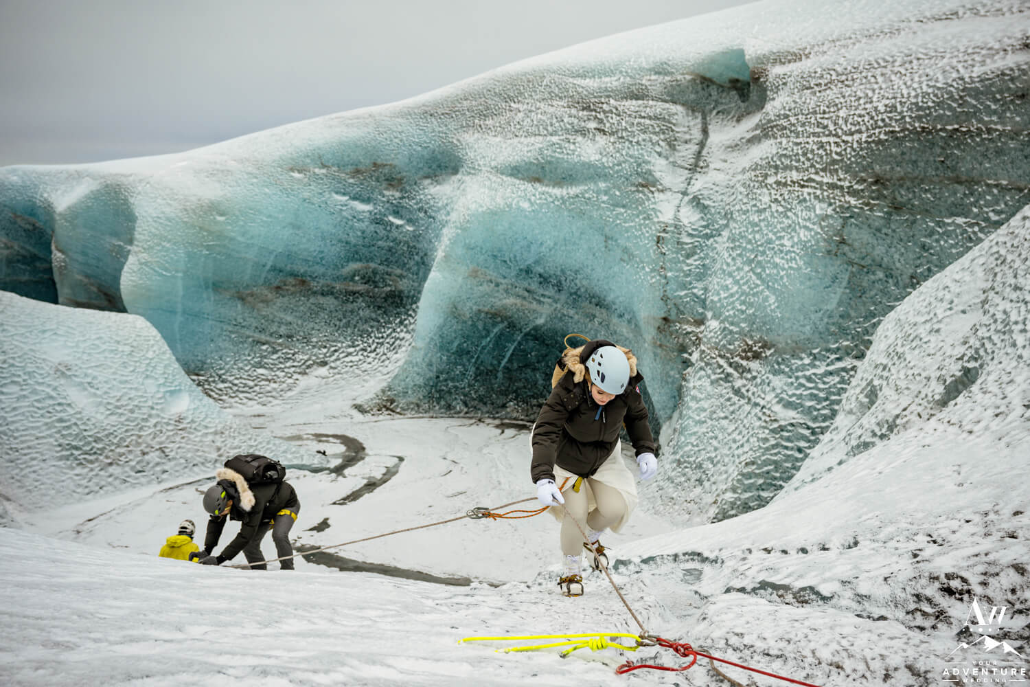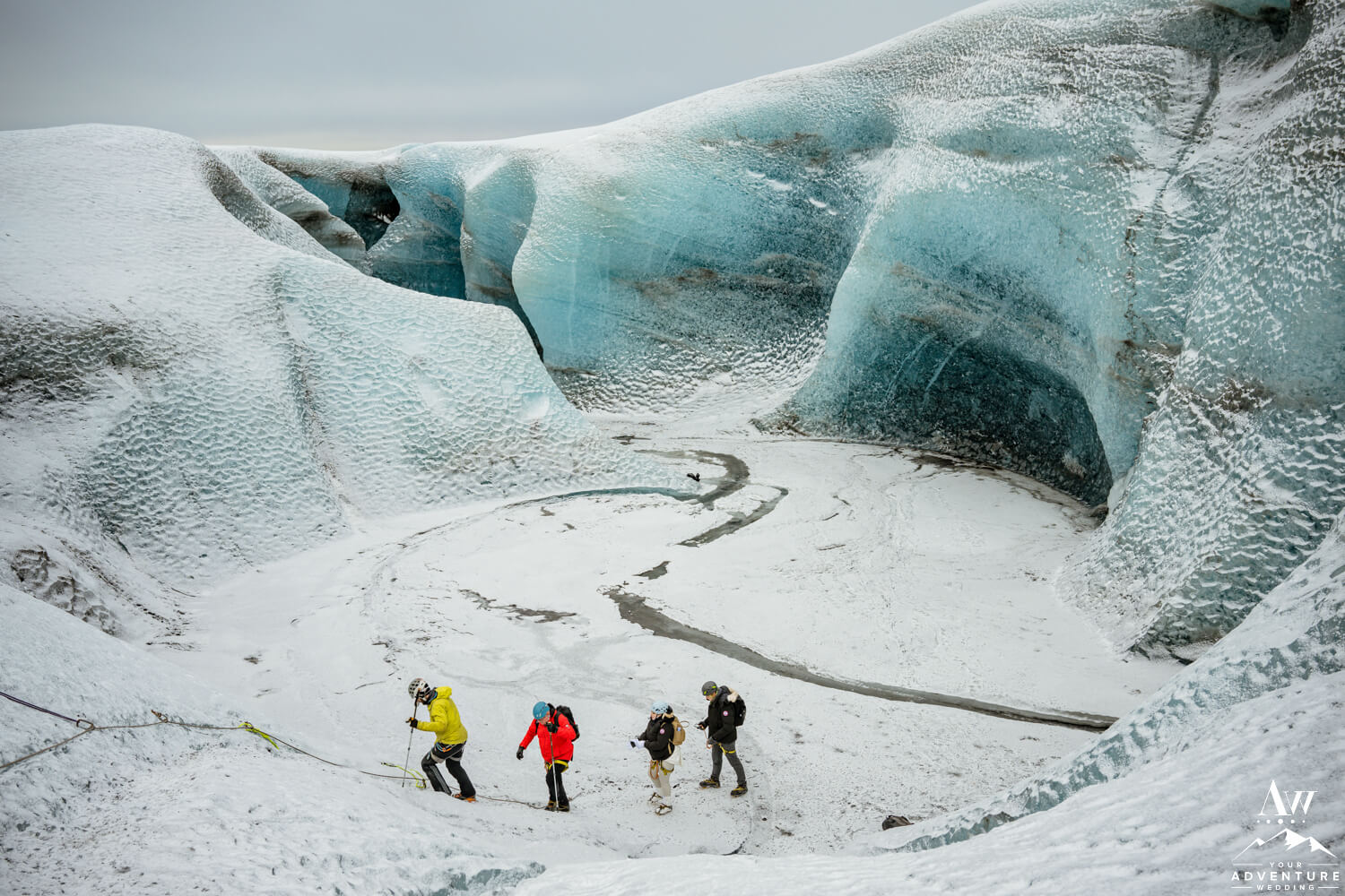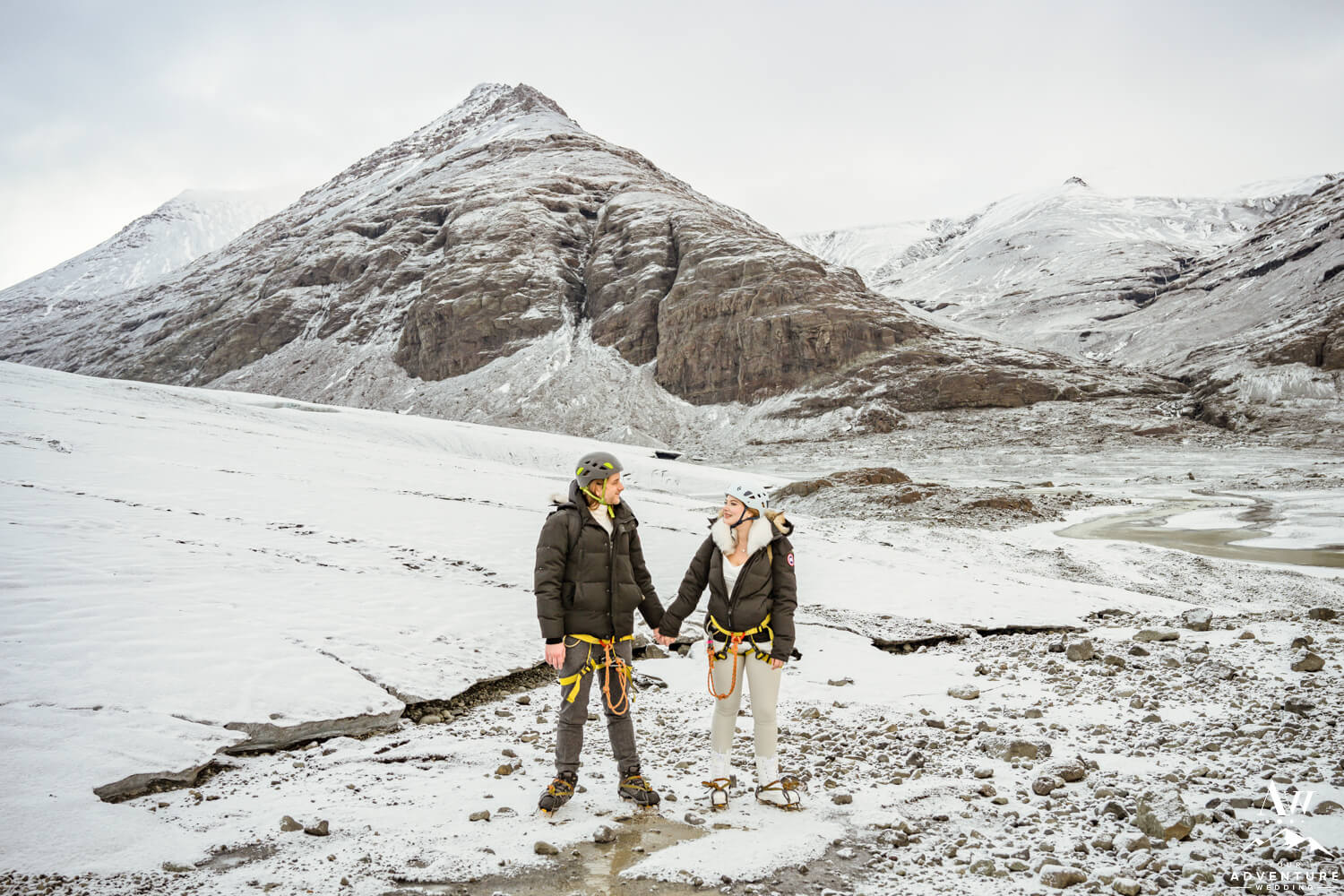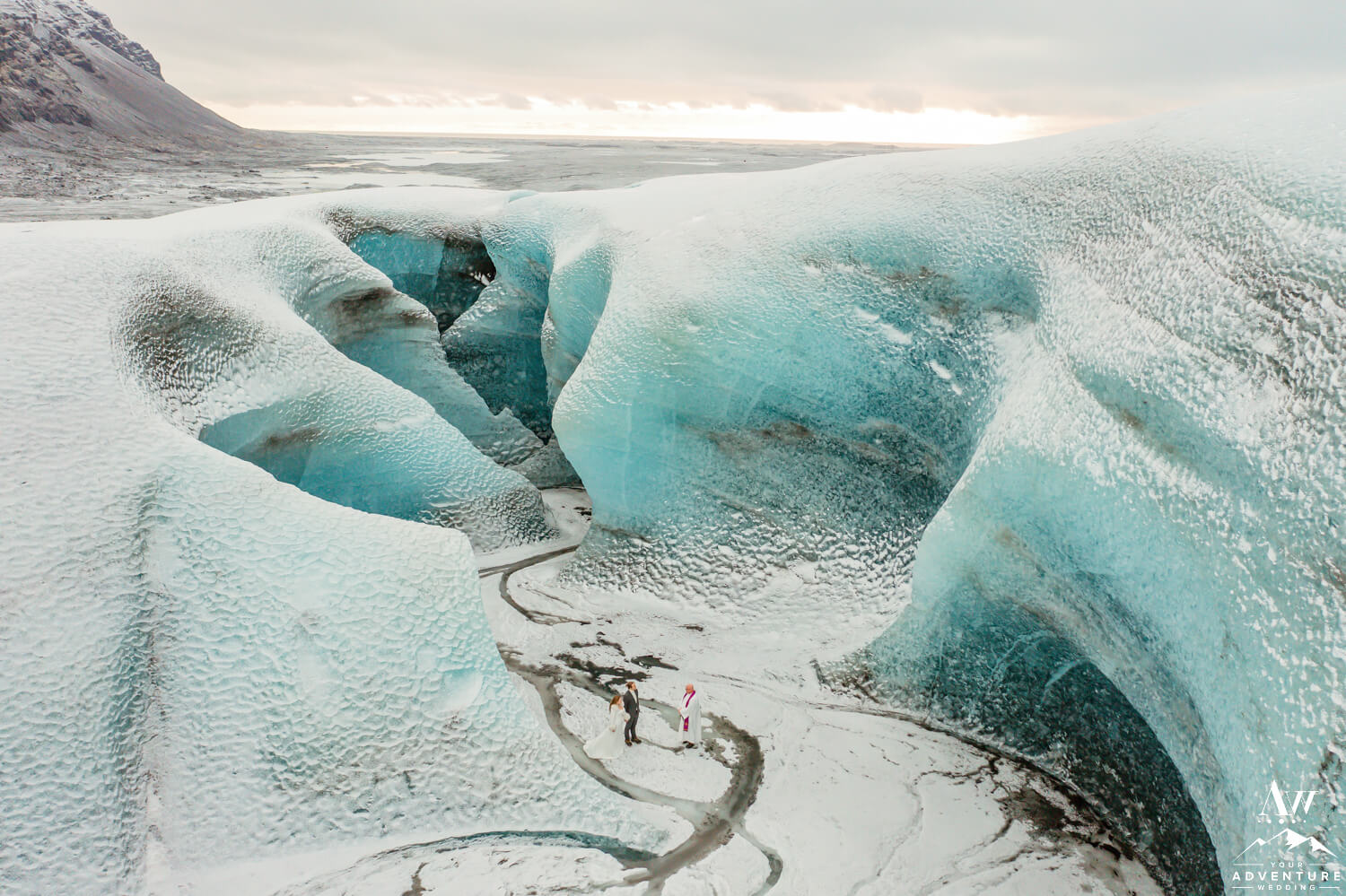 Many hours east of the city limits of Reykjavik you’ll encounter Iceland’s largest glacier named, Vatnajökull.  To put it in perspective for you, it spans over 3,000 square miles.  In fact, it has outlet points throughout South, East, and North Iceland.  Furthermore, this glacier is known in Iceland as housing the bluest ice in crevasses, moulins, ice caves, and tunnels.  So when a couple is seeking this look it’s natural they embark on planning a thrilling Vatnajökull elopement!  What could that look like you might wonder?  Well, allow our adventurous couple, Eva and Peter show you…