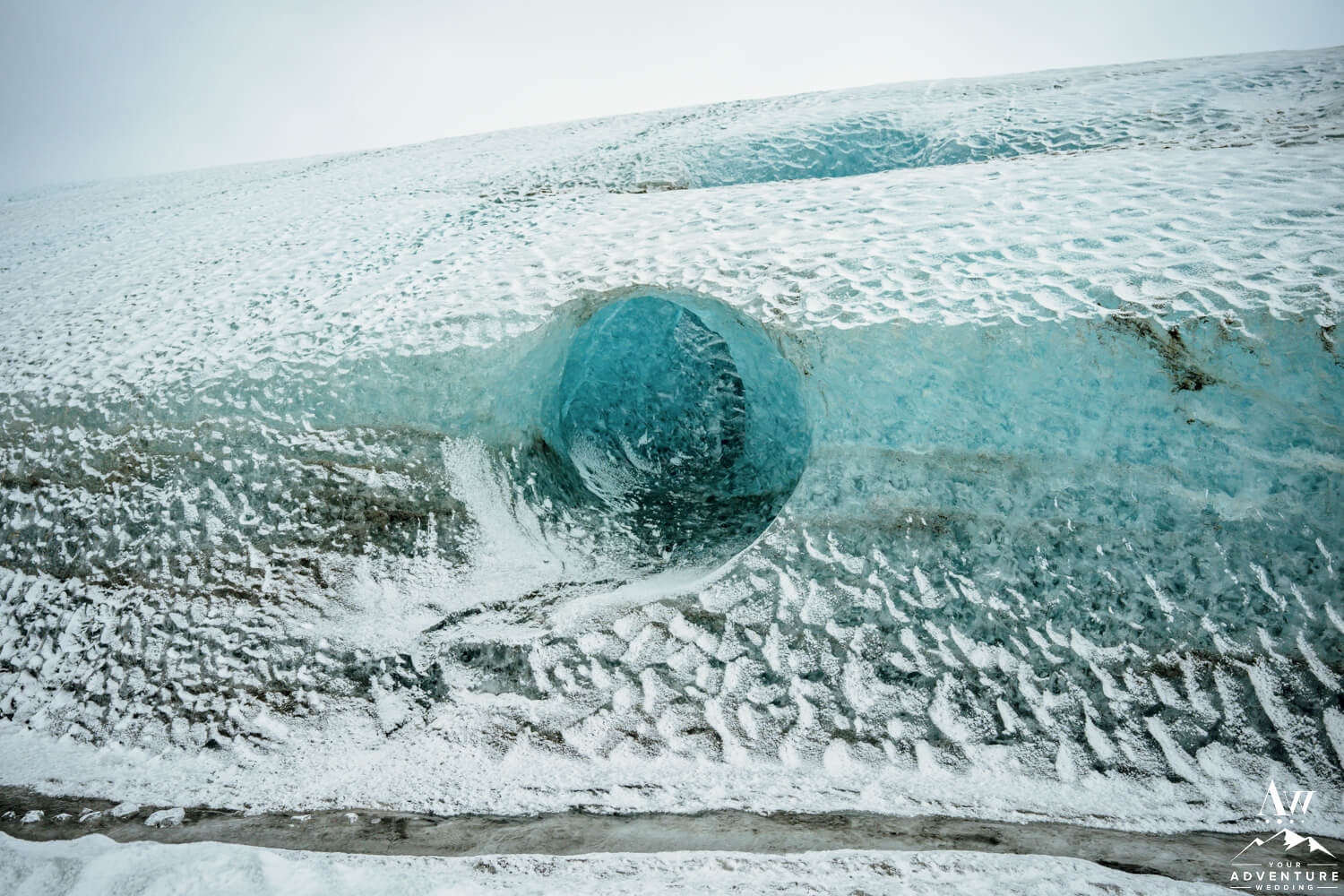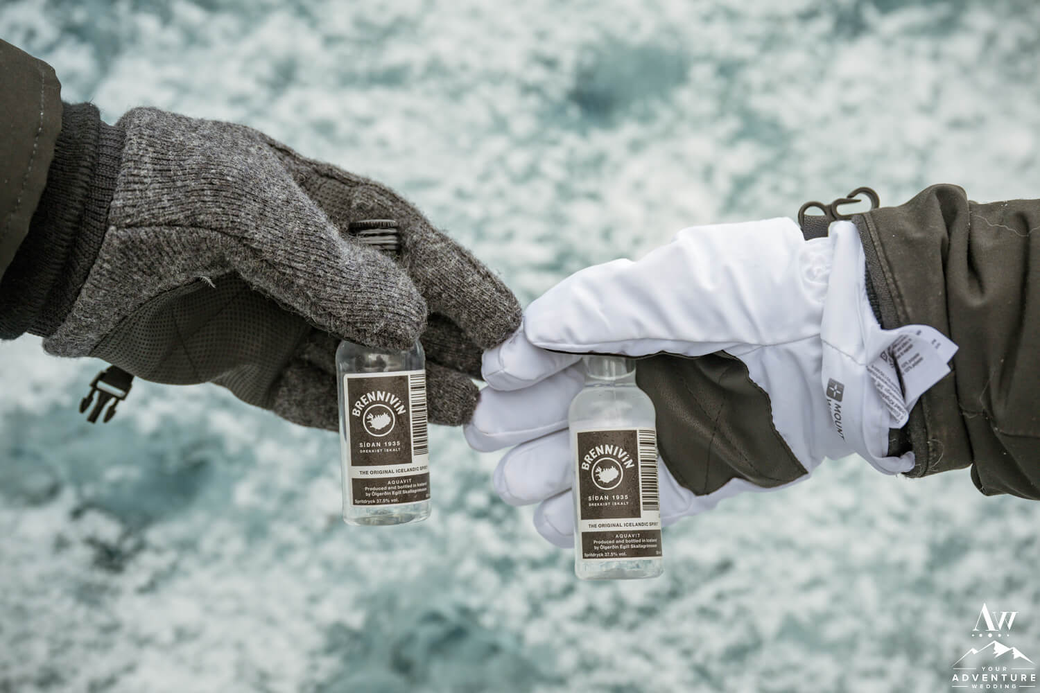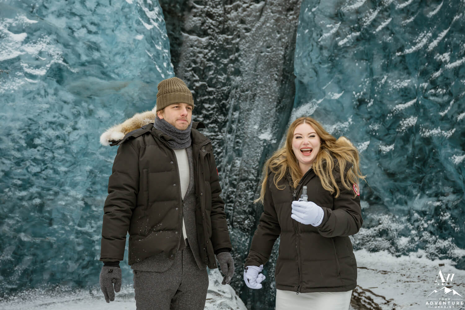 Following their Vatnajökull elopement ceremony, the couple explored every inch of the moulin with our Iceland elopement photographer!  Wouldn’t you love to have adventure elopement photos like these to keep forever too?!  #yesplease!  …they may or may not have toasted with Black Death (aka Brennivín) too!