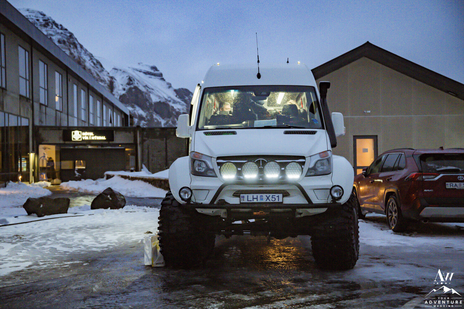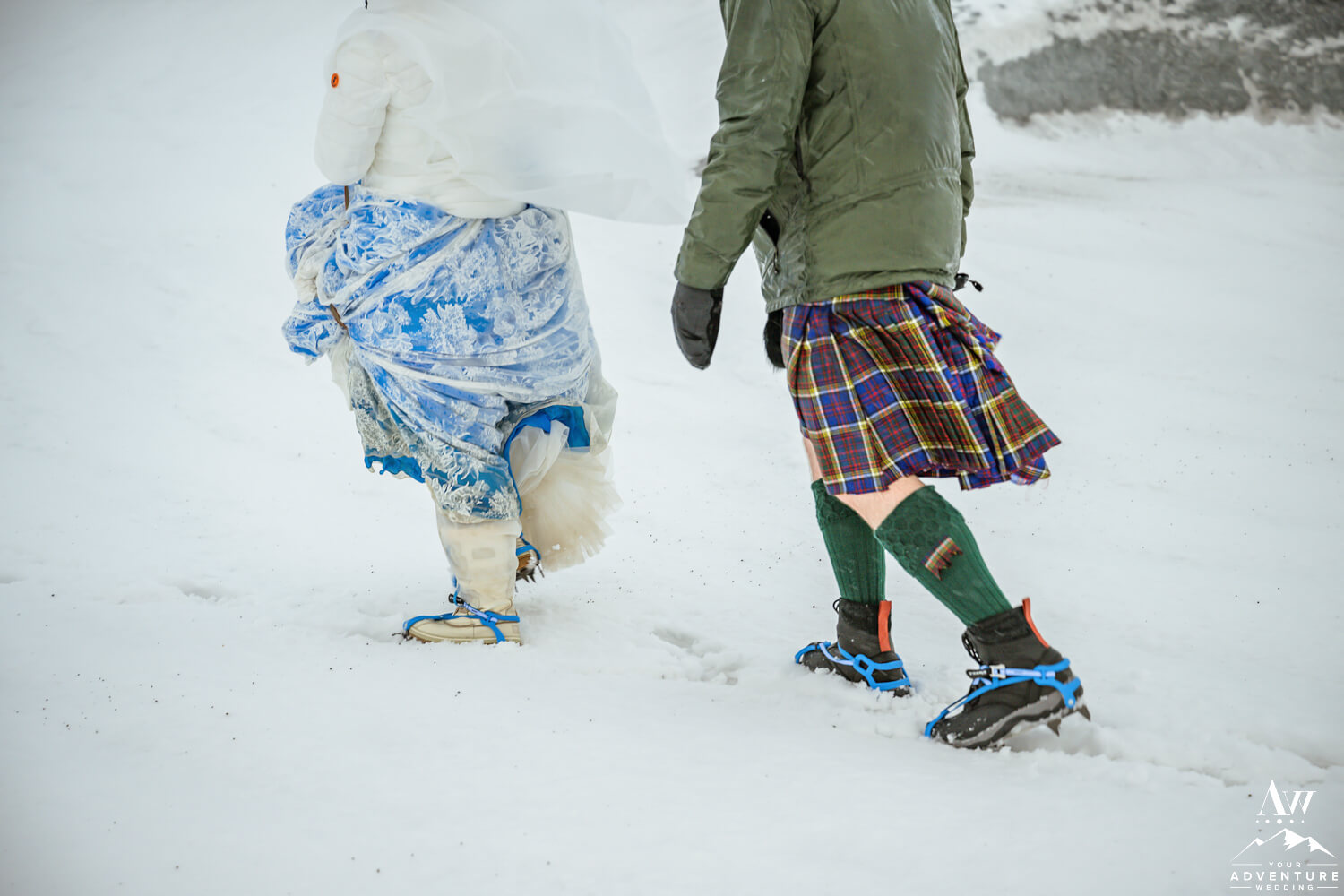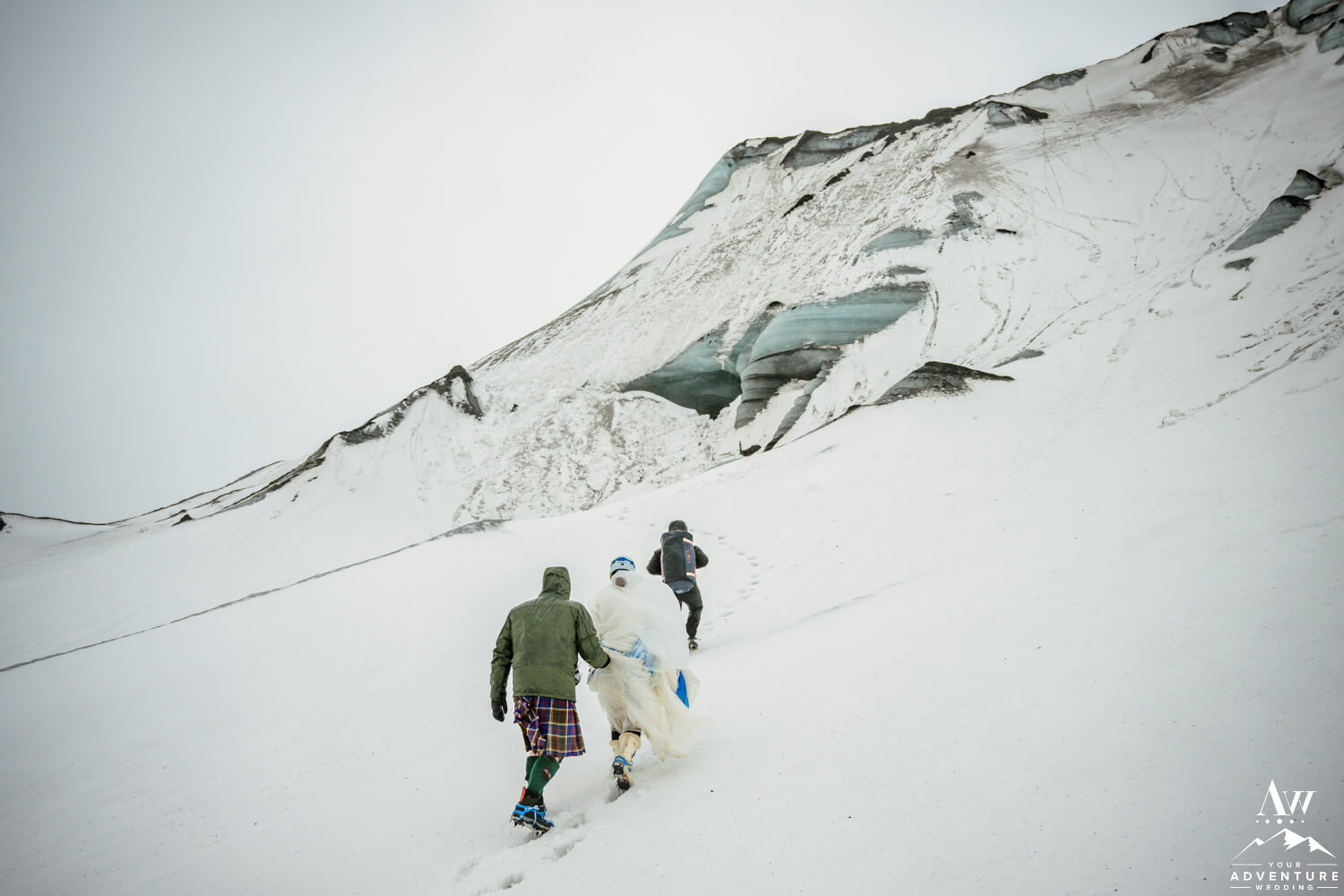 Earlier we alluded to how the weather can be pretty extreme in February in Iceland. That evening, they were calling for the weather to change and become pretty windy and gnarly. Since the prospect for Northern Lights were null, Alfred and Elizabeth were on board to move up their nighttime immersive wedding experience to be at dusk. Therefore, the hike continues over to the touristy Katla Ice Cave…