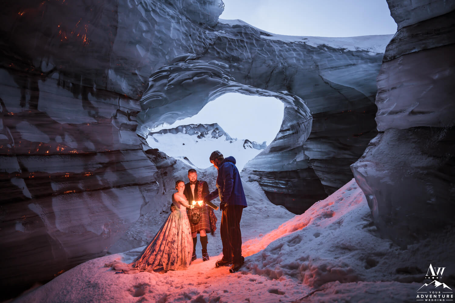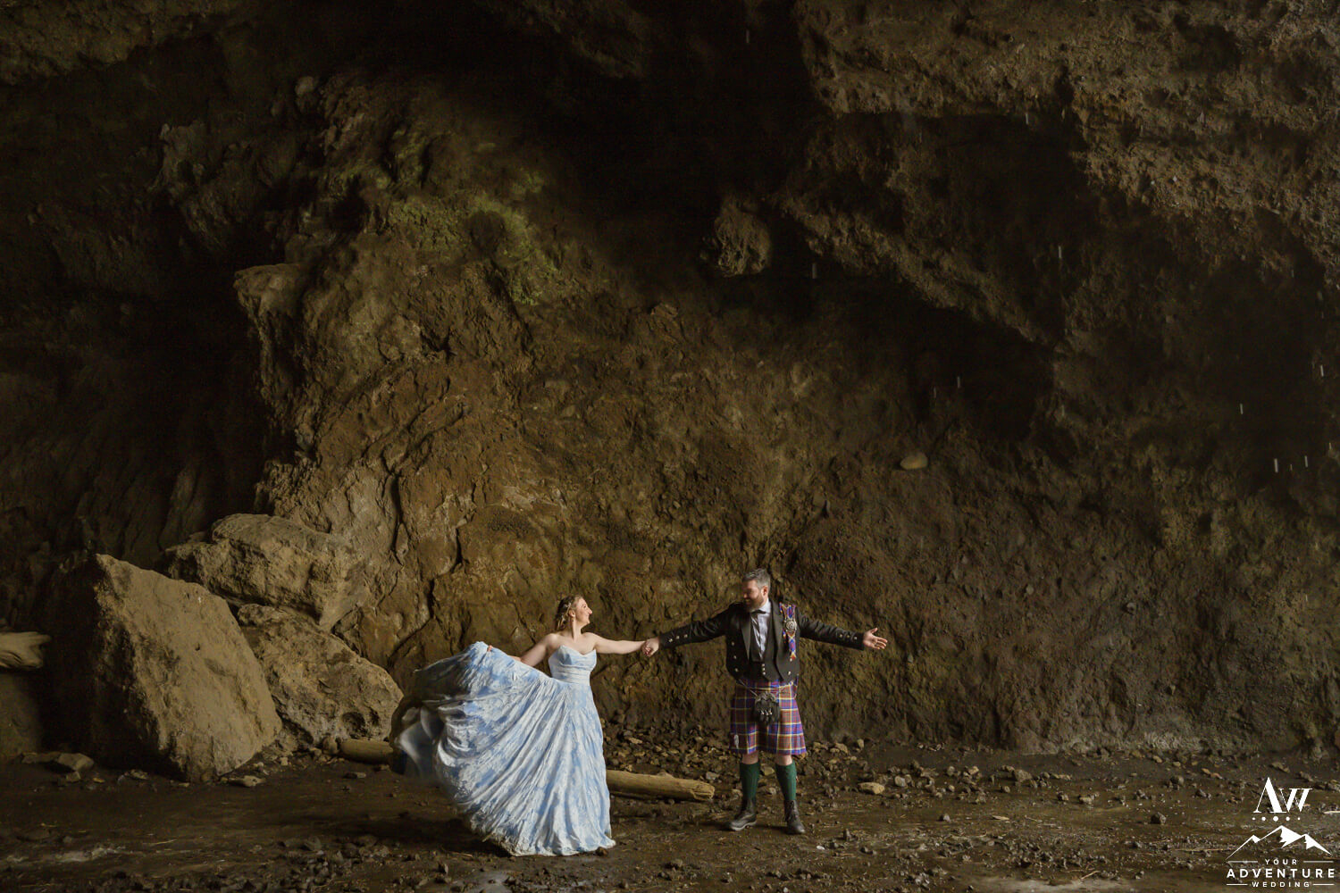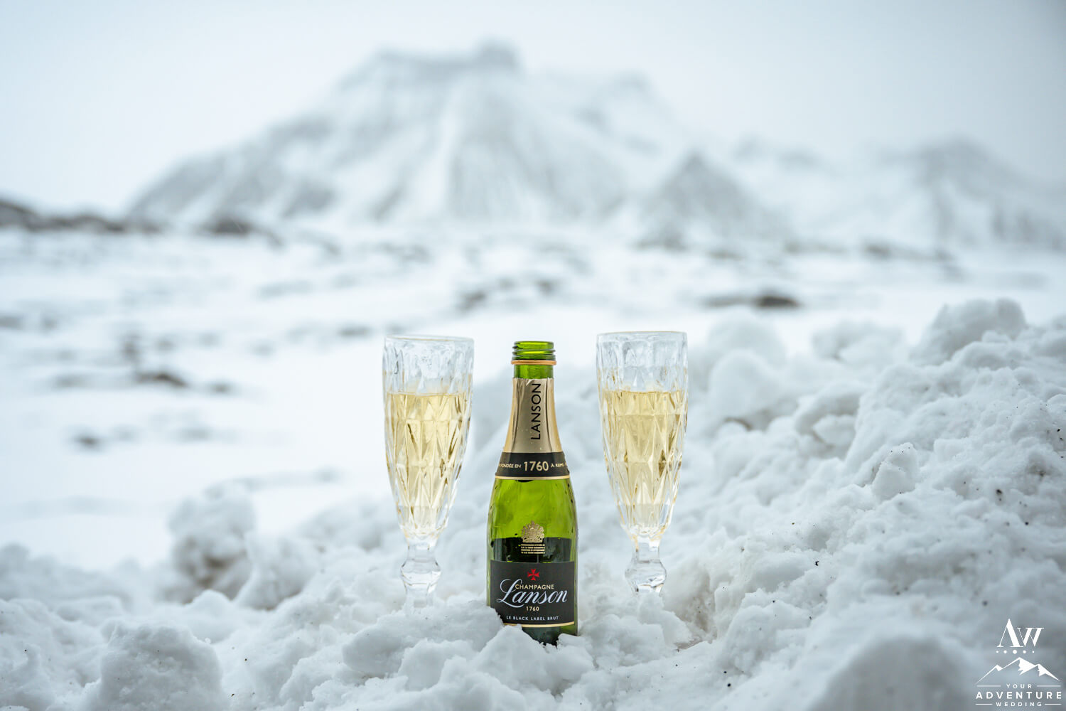 Okay, so if you know our Iceland Wedding Planner team, you know we crave a good challenge and love pushing the limits on what hasn’t been done before. Especially in ice caves! For instance, you might remember the floral swing we put up in an ice cave? Therefore, when Elizabeth and Alfred told us they were “up for anything” we obliged and put up a hammock inside an ice cave! To somehow make it even better, we surprised them with a glass of champagne. Because the heck not?! After all, a milestone like this should be freaking celebrated!