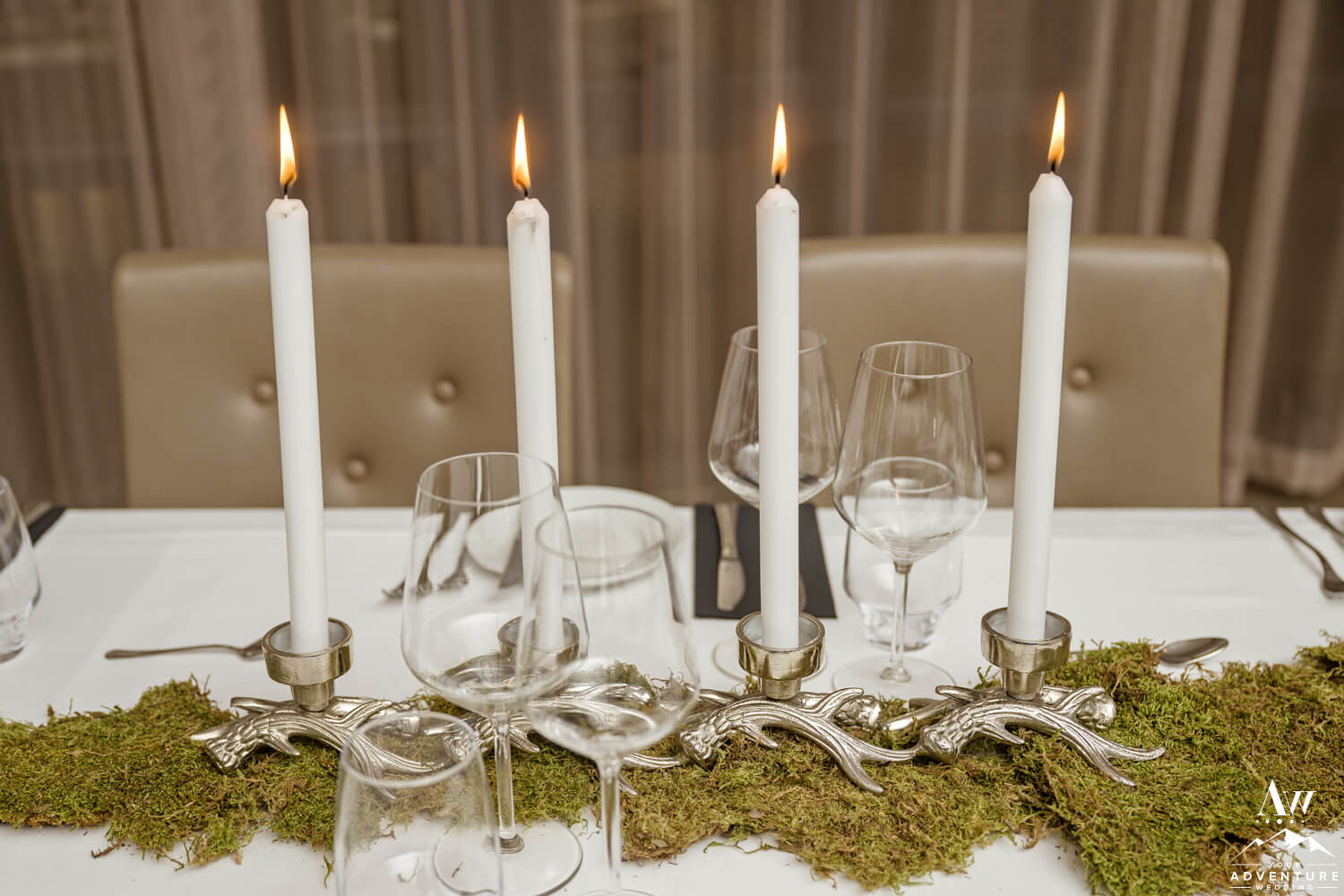 Lastly, the couple meet again with their guests for dinner. In fact, the table was decorated with moss, silver reindeer candle holders with white candlesticks. Fair to say everyone thoroughly enjoyed their warm and delicious dinners! Curious to know about what Alfred and Elizabeth thought about their immersive wedding experience with our Iceland Wedding Planner team? Read their Google Review!