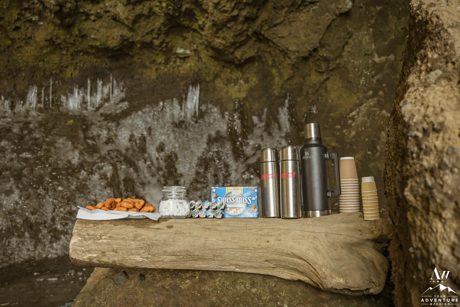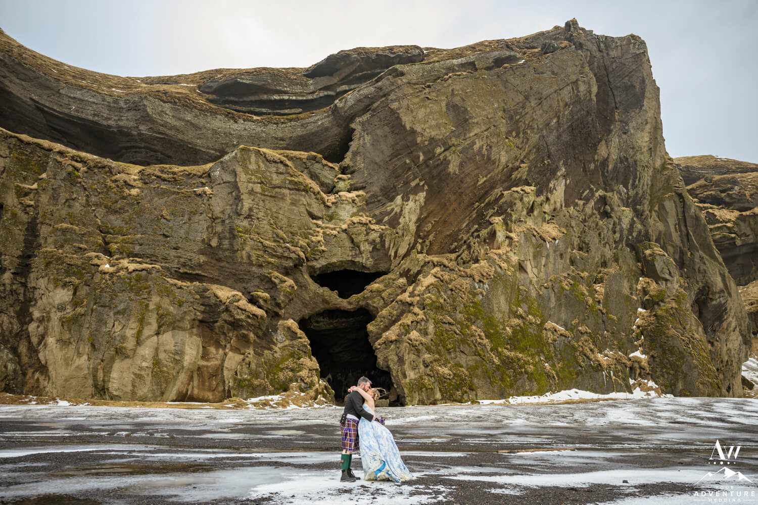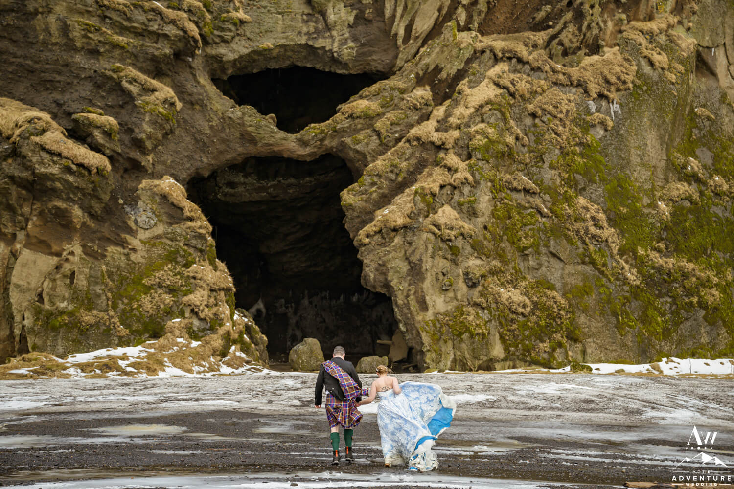 Next, as part of the immersive wedding experience, the newlyweds and their guests warmed up with a coffee, hot chocolate, Icelandic donuts and a first dance! How fun right?! Also they learned about the history of the cave and saw why many refer to the cave inside of the mountain, Hjörleifshöfði as the token “Yoda” cave.