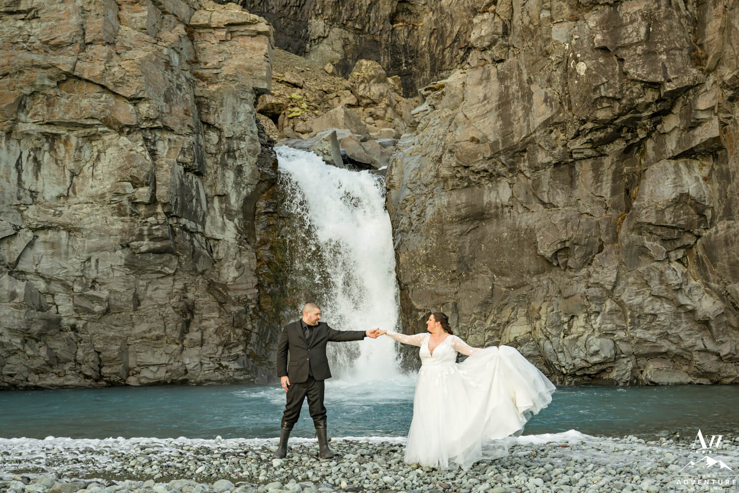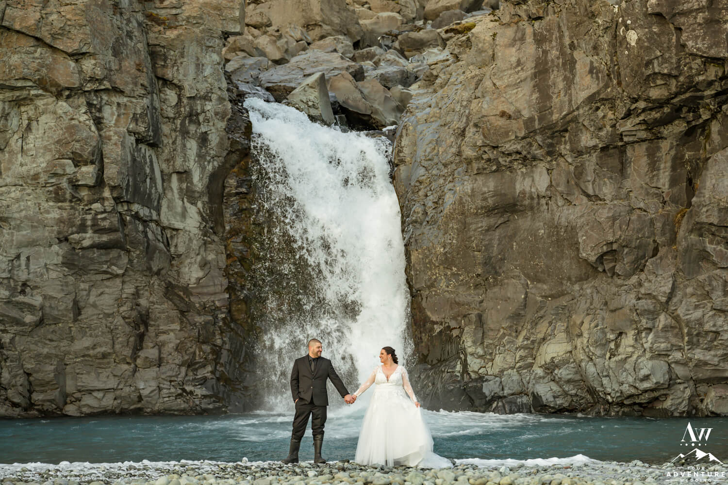 But there can be a mix of water types or a filtration of water as it comes from the glacier and through the mountains. Which brings us to share with you the last adventure elopement location Matt and Brandi explored together! What angle do you like the waterfall more, from the ground or from the drone?
