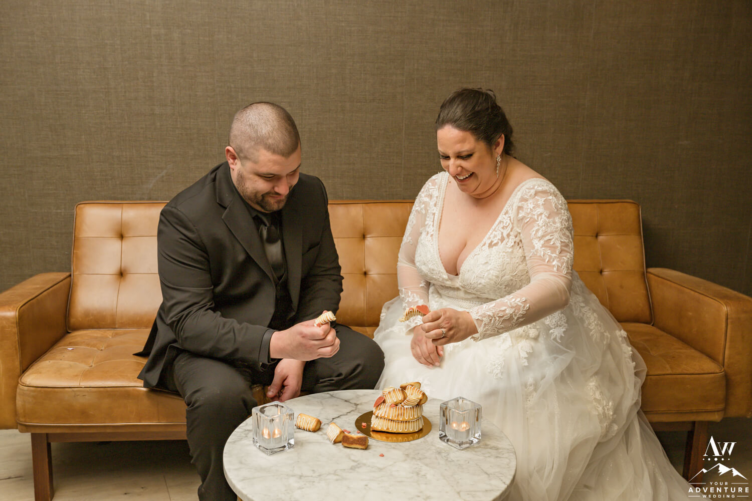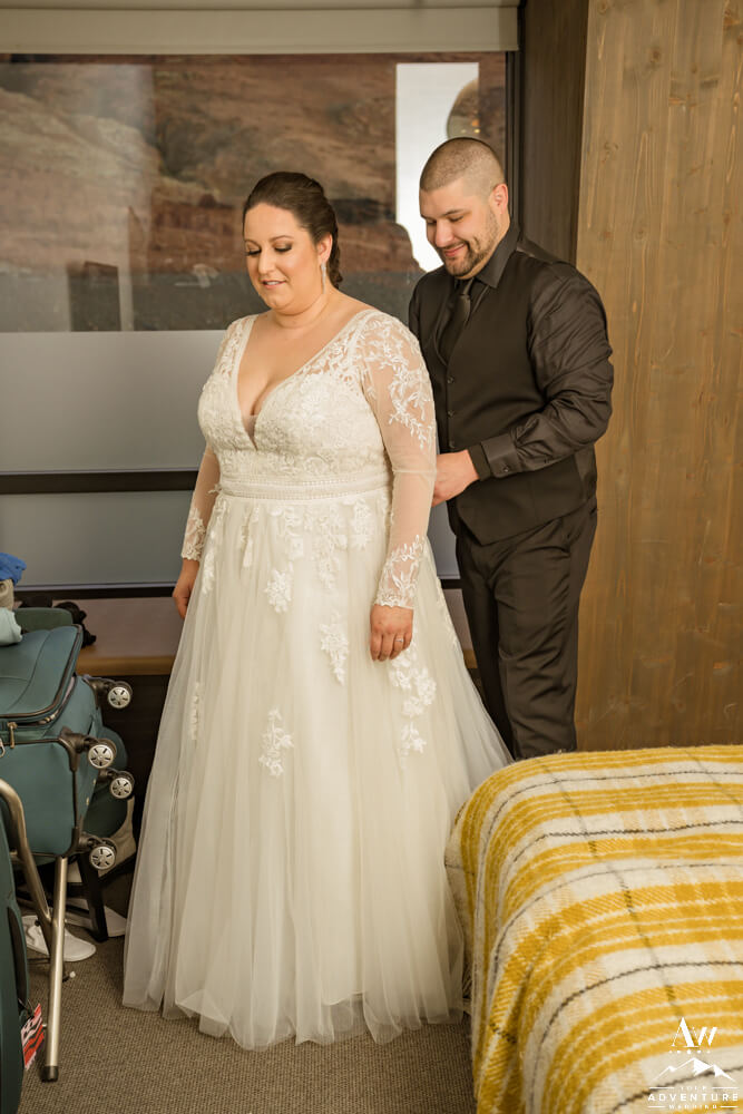 Next, Brandi and Matt sat down to dinner in their fabulous wedding attire as it is their intention to go back out in hopes of chasing Northern Lights. After all, who doesn’t want Northern Lights wedding photos?! Keep scrolling if you want to see how these two end their February elopement…