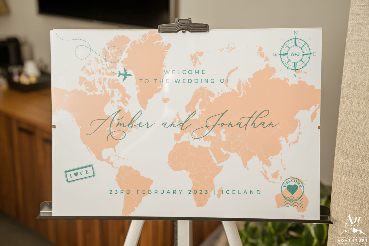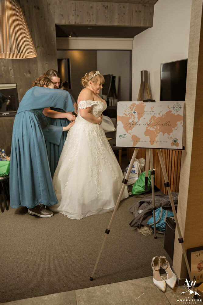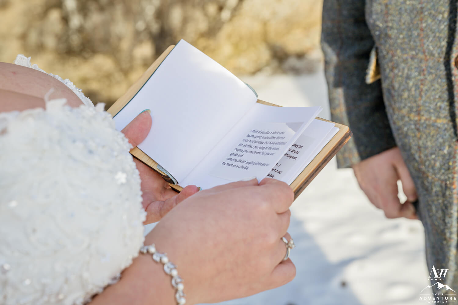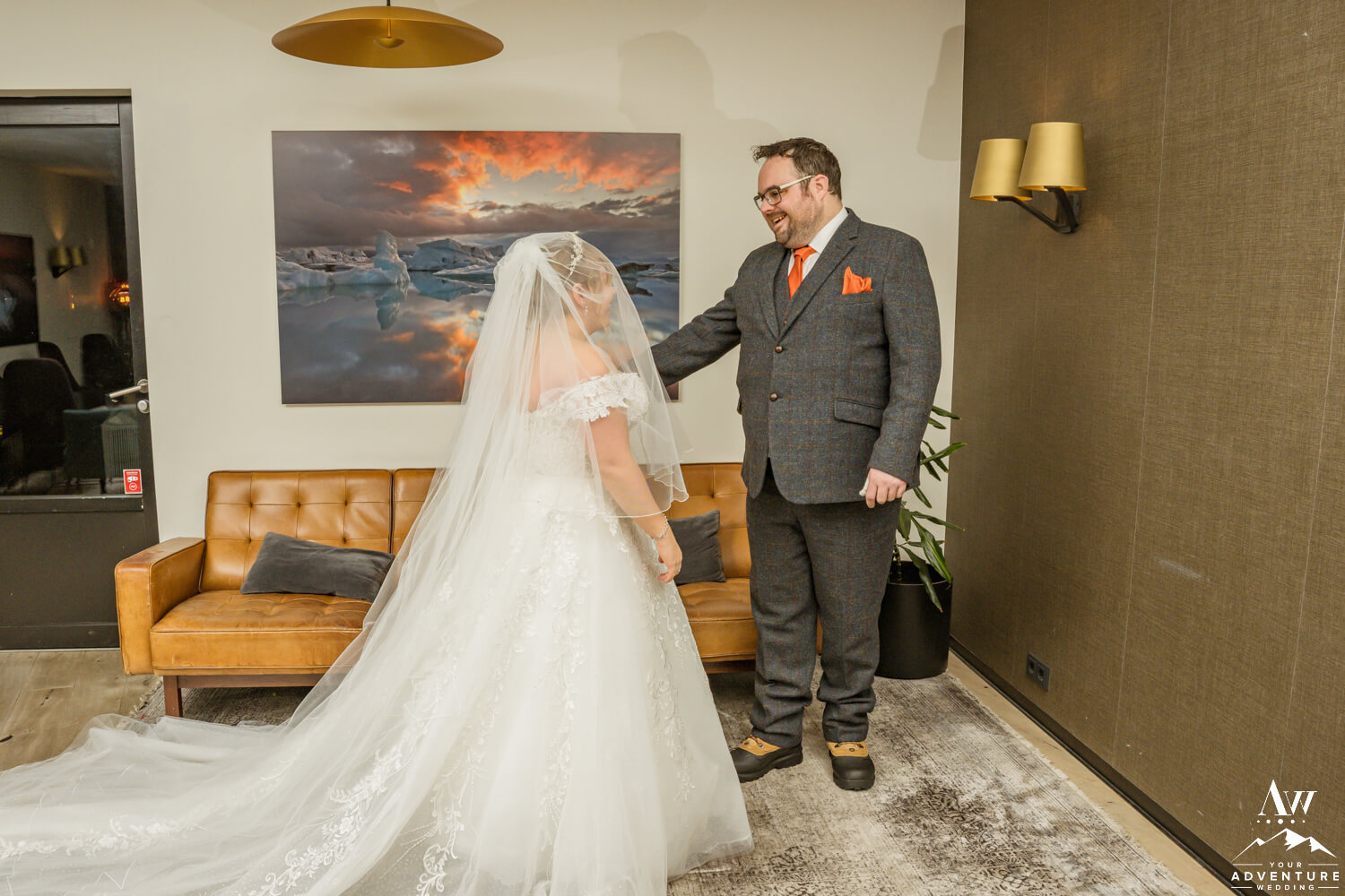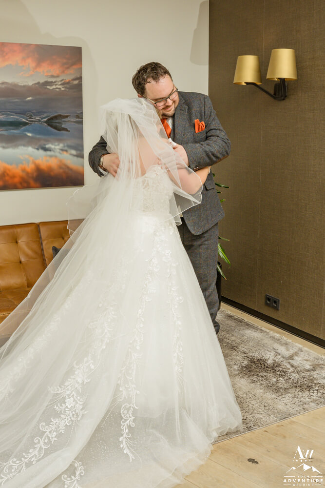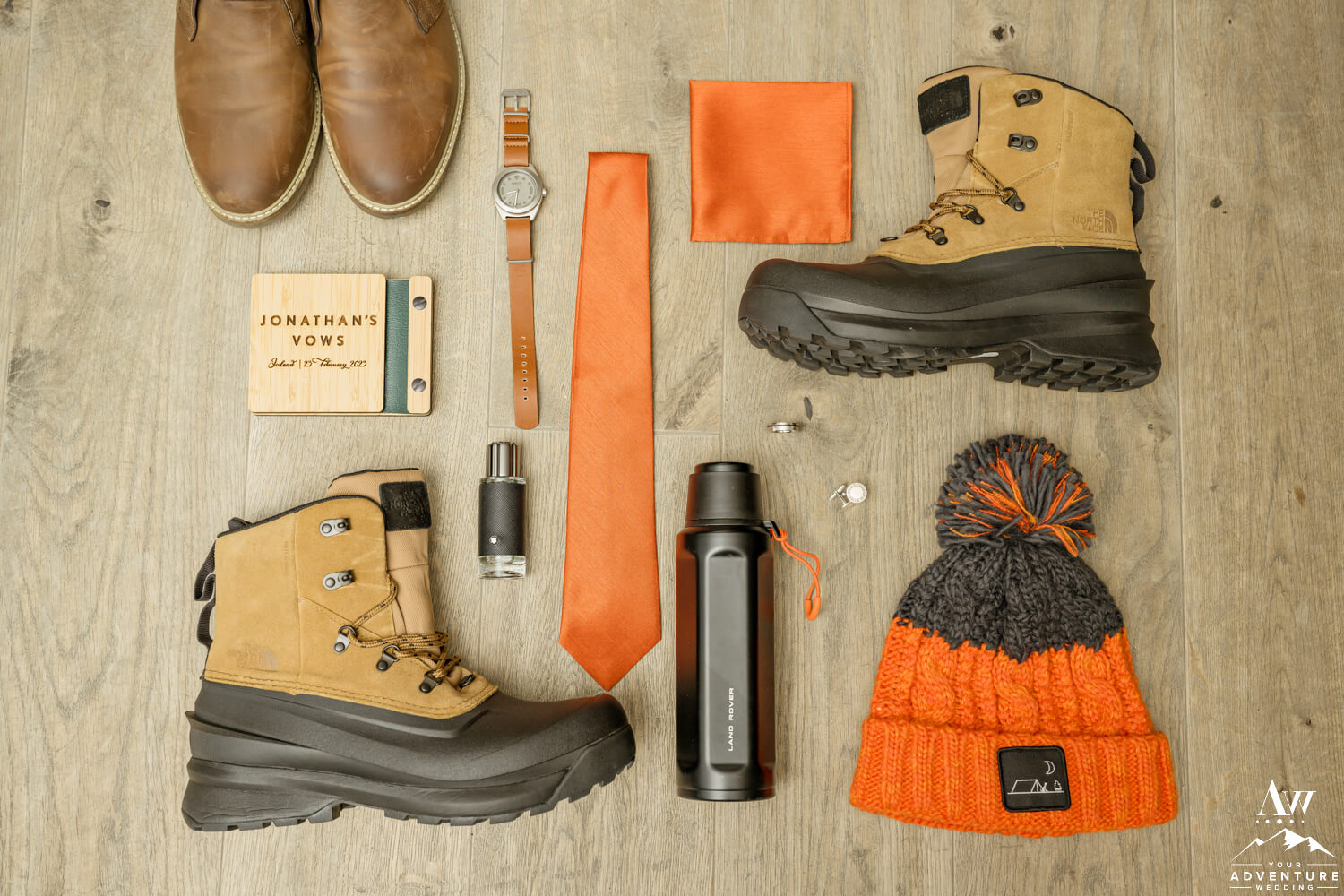 Our Iceland wedding hairstylist and photographer went to work capturing the abundant details. To illustrate, items like a fabulous wedding dress, groom details, vow books, etc! Also the pair surprised their guests with a welcome bag and timeline card, how fun right?!