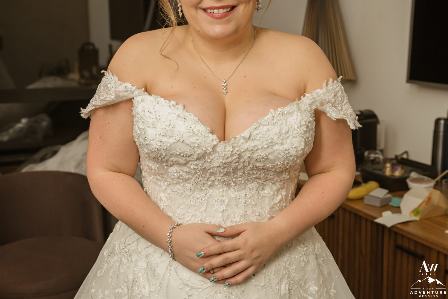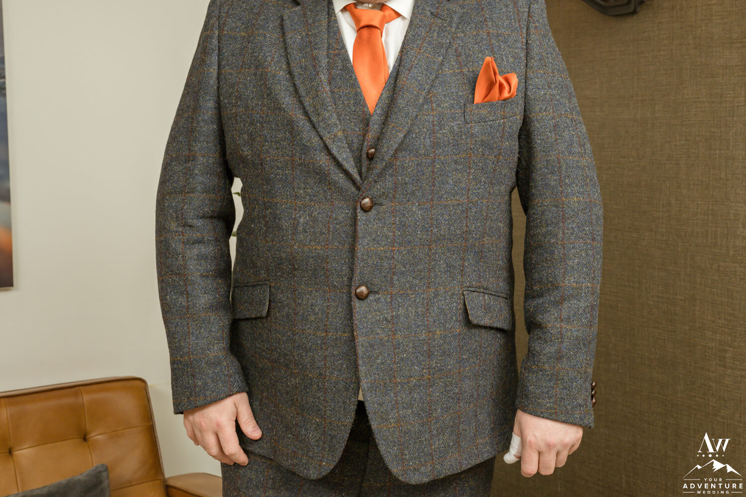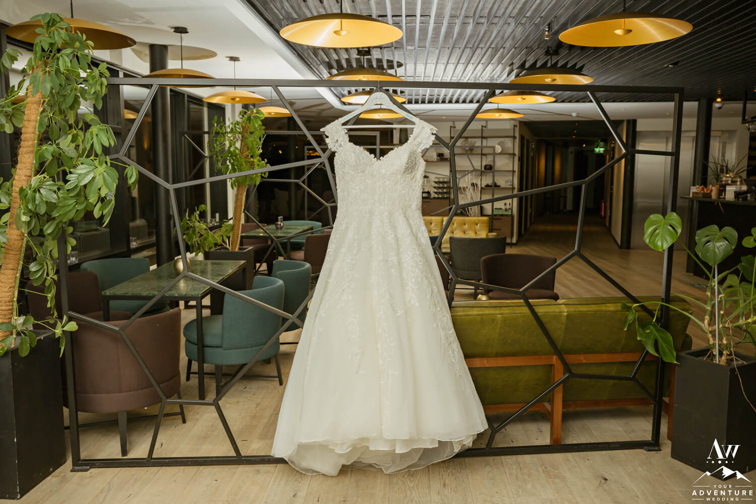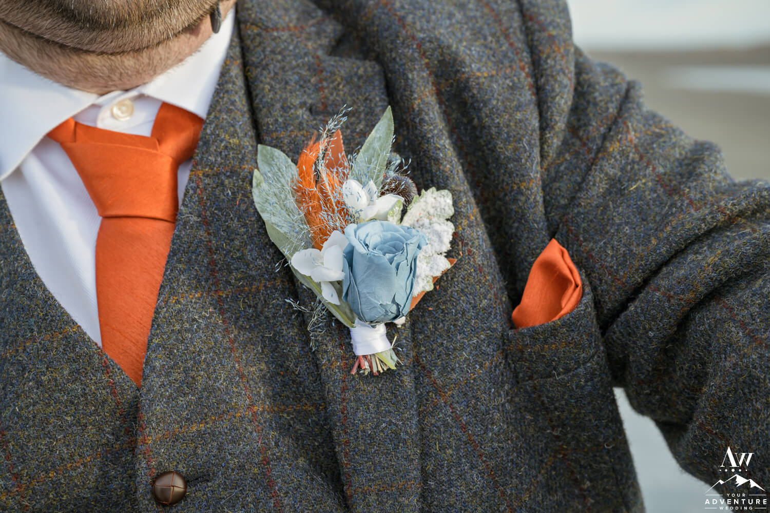 Our Iceland wedding hairstylist and photographer went to work capturing the abundant details. To illustrate, items like a fabulous wedding dress, groom details, vow books, etc! Also the pair surprised their guests with a welcome bag and timeline card, how fun right?!