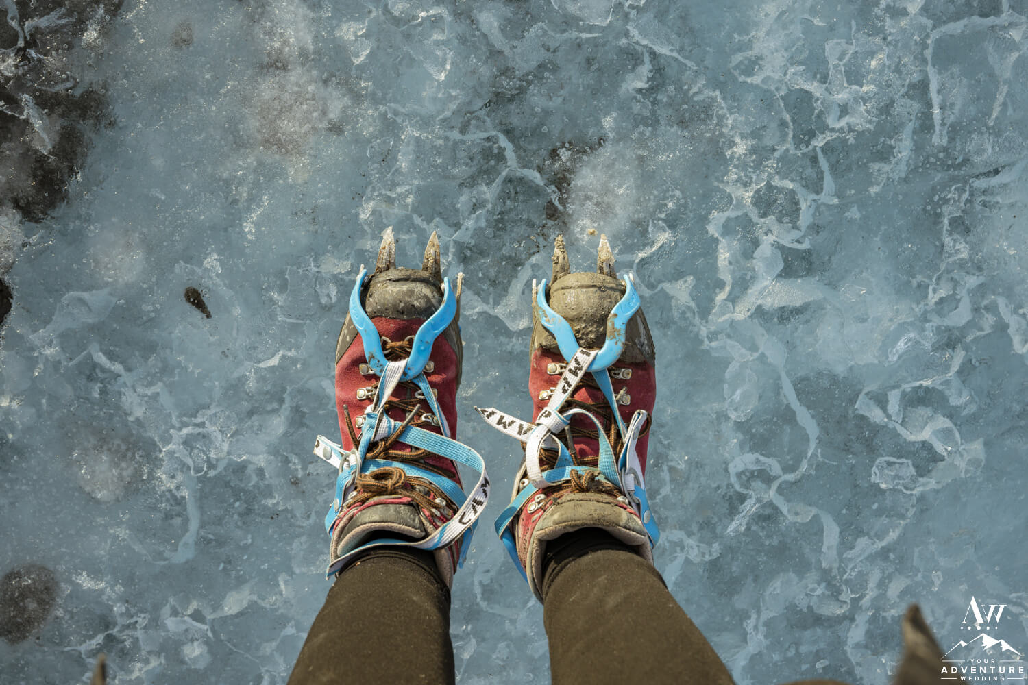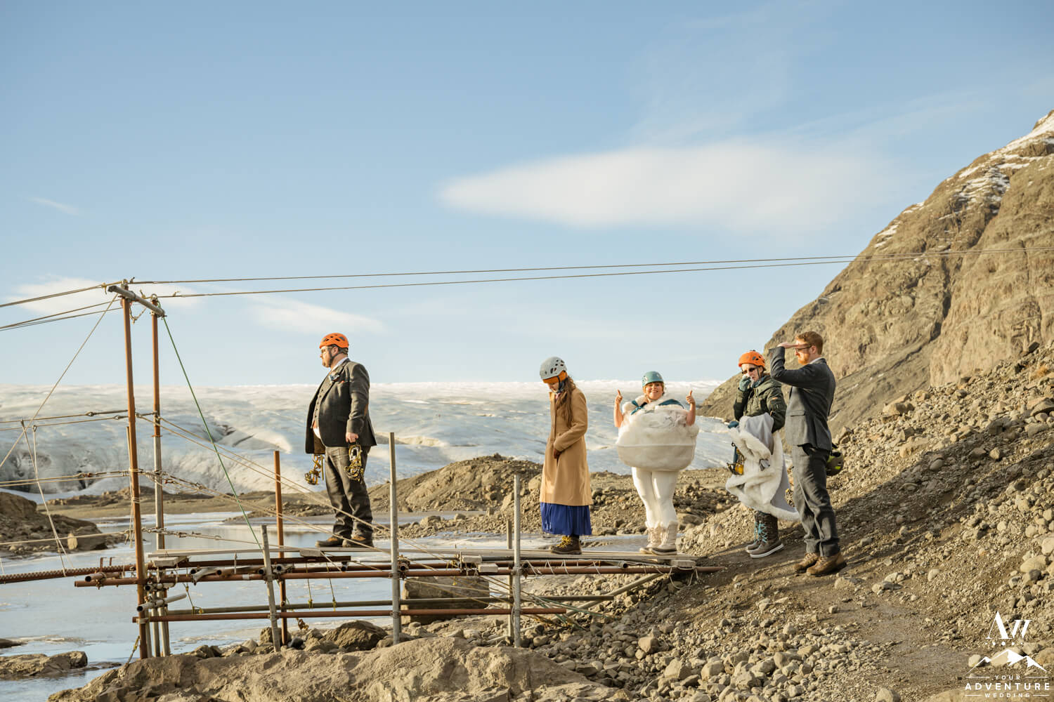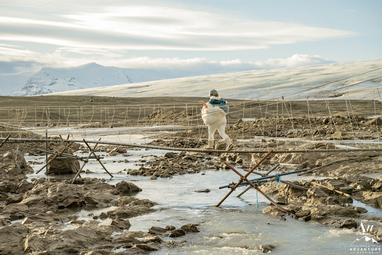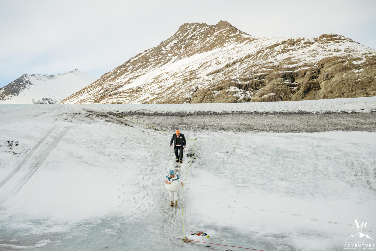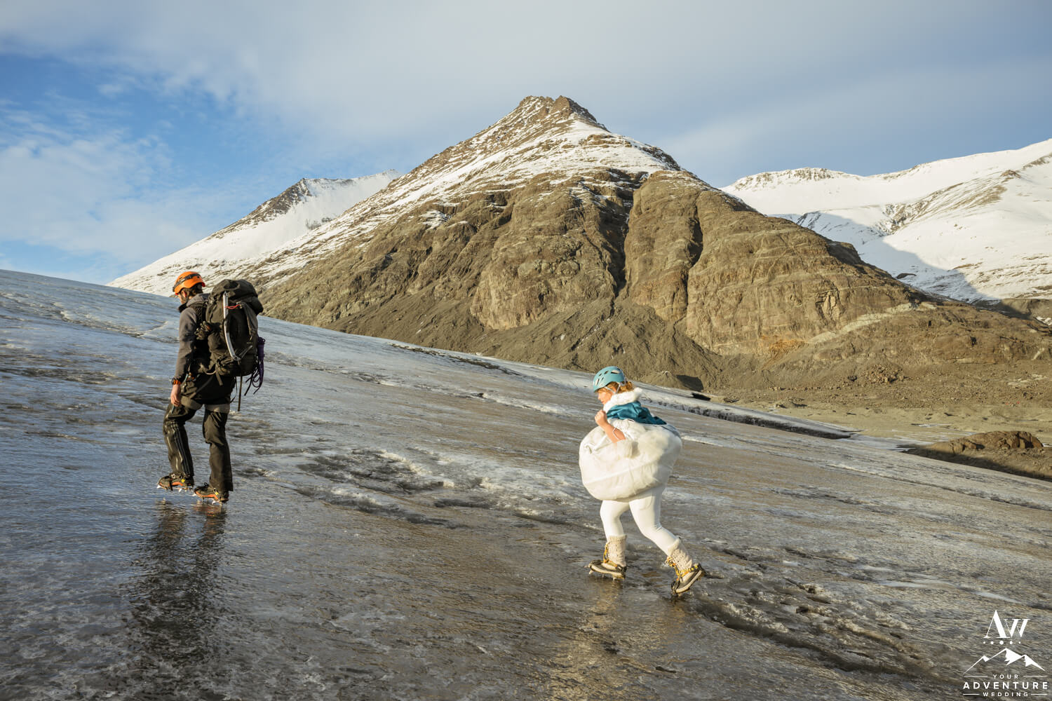Is it possible that a glacier sinkhole (or moulin) can be more exciting than an ice cave? But know a sinkhole is a type of ice cave we have in Iceland. Allow our adventurous frozen waterfall wedding newlyweds and local Iceland wedding photographer to show you the unforgettable beauty…