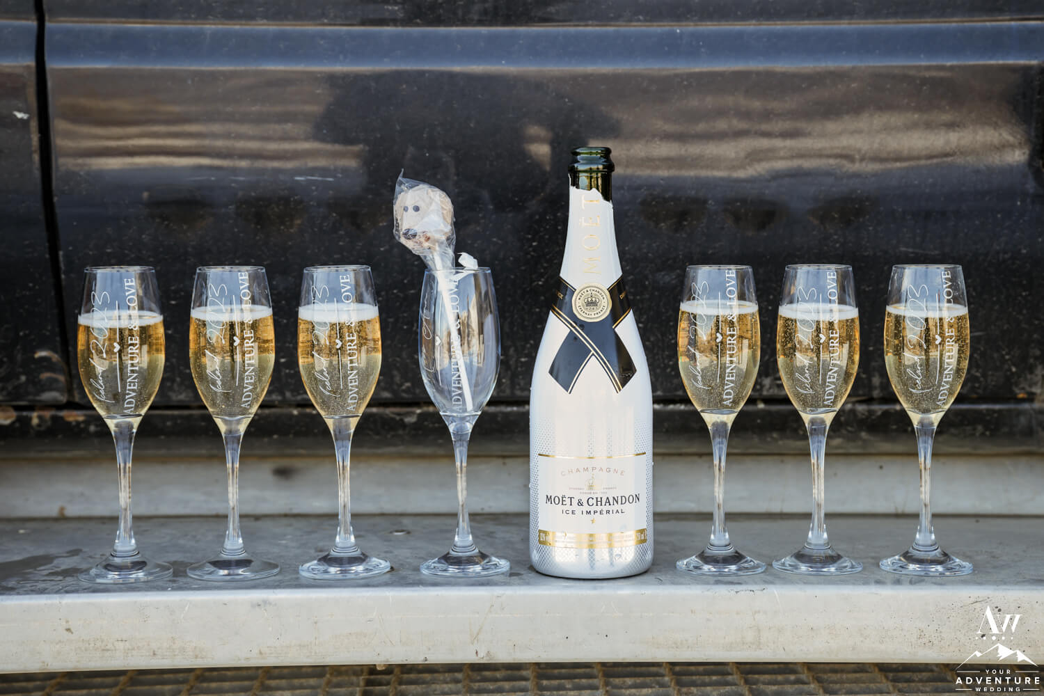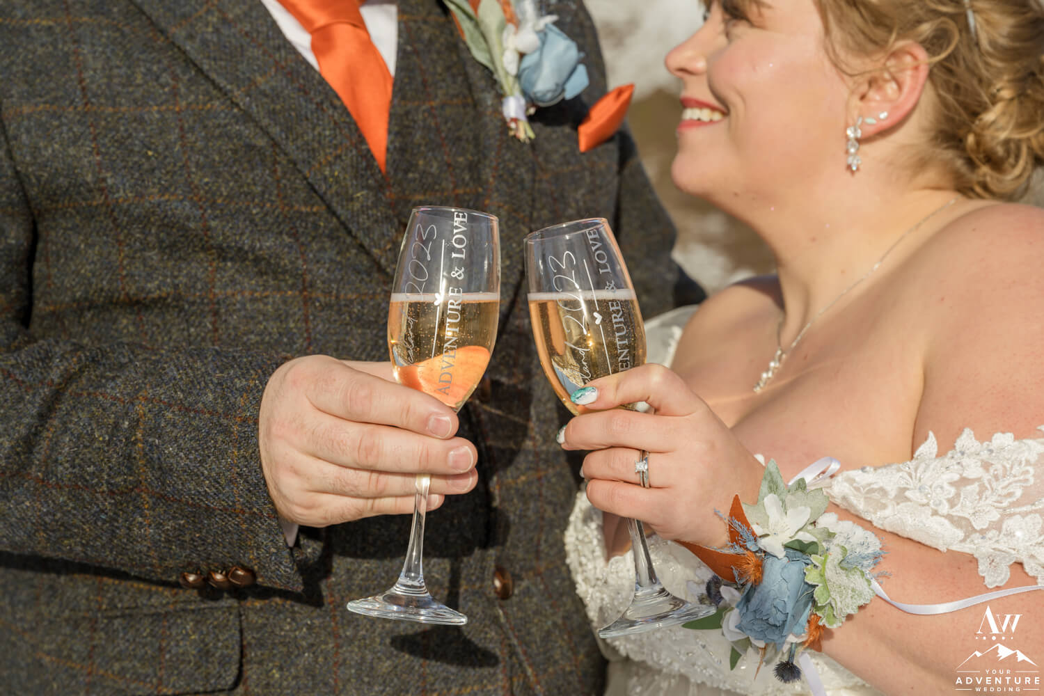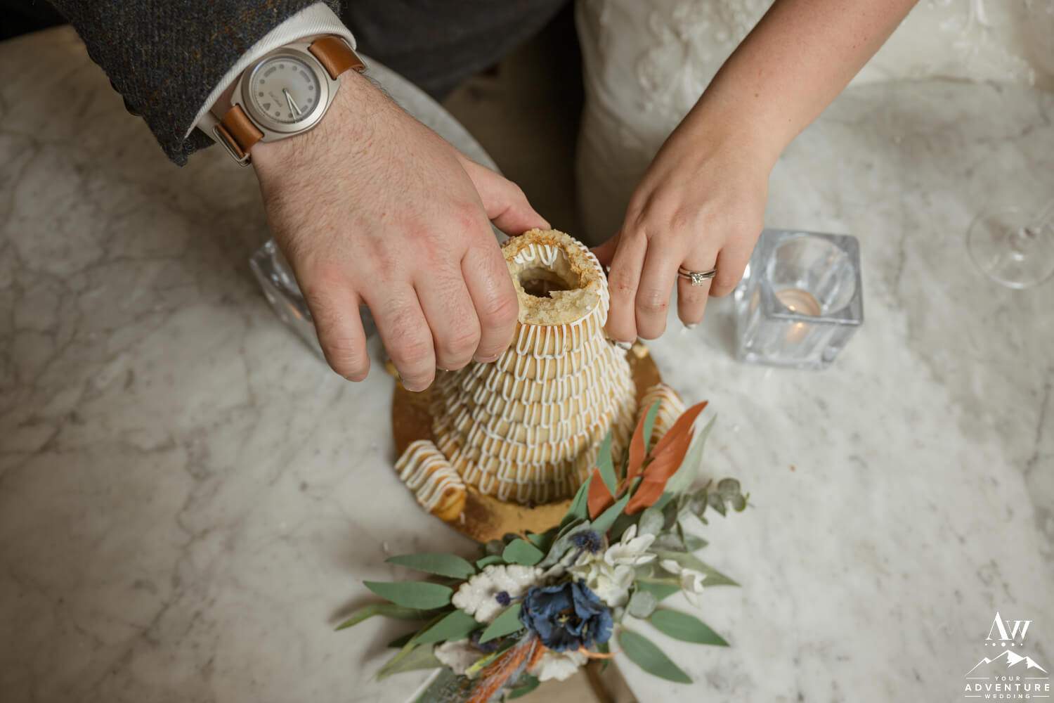 Following their frozen waterfall ceremony, the newlyweds took time to explore and top and bottom of the frozen waterfall. And it’s fair to say it did not disappoint! Also as the sun shined brighter, higher and stronger the waterfall unthawed more! Meanwhile, hiking back to the truck the group delighted in a champagne toast and Rufus inspired cake pops! What a fab way to continue the celebration!!