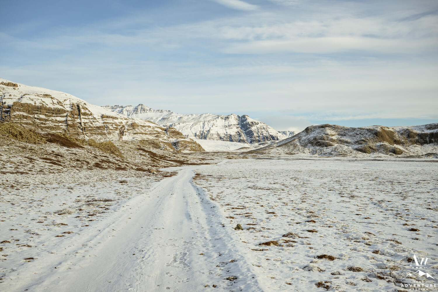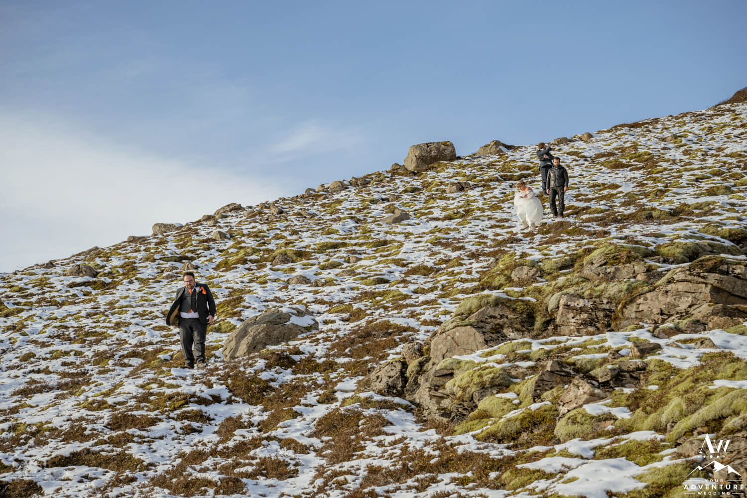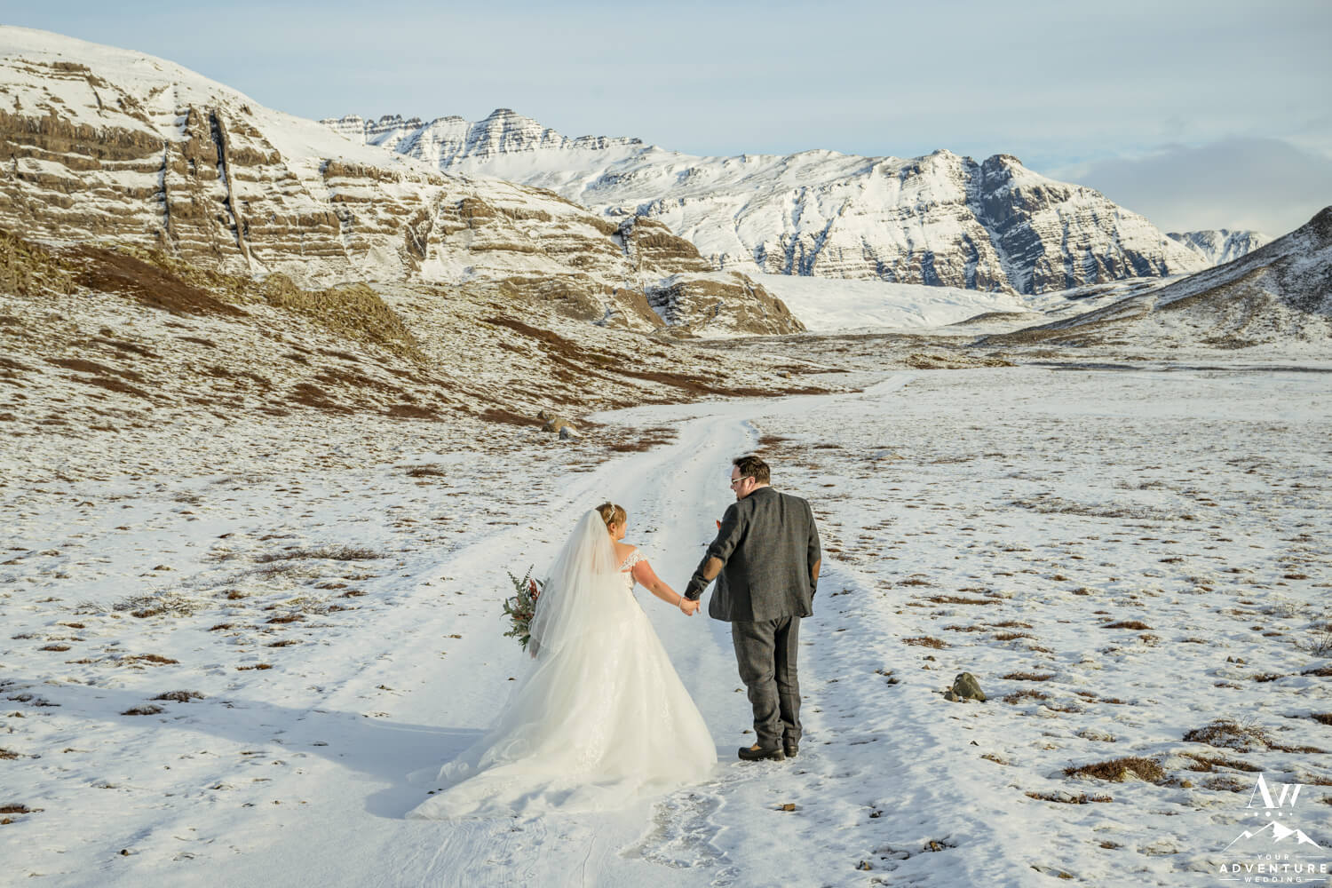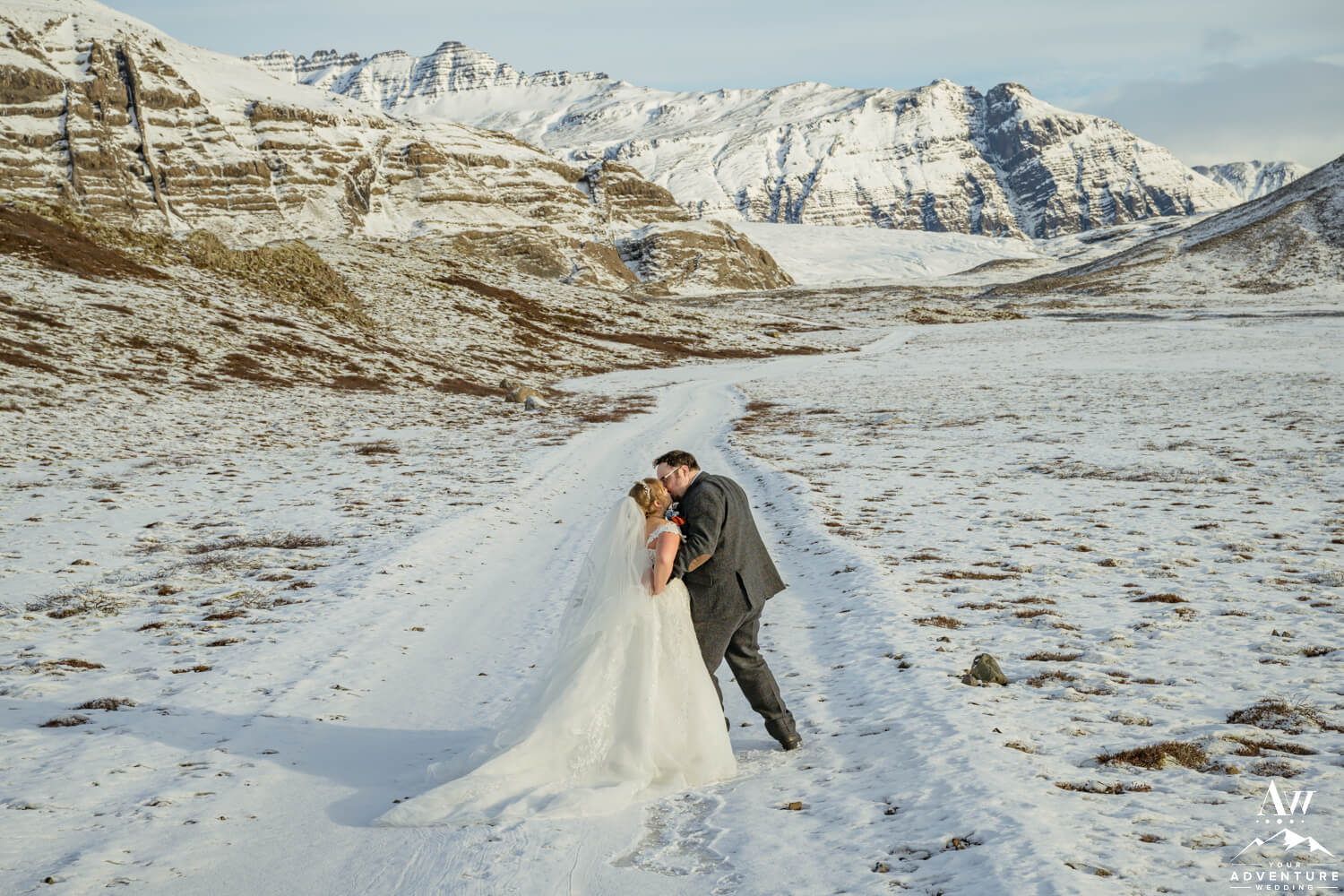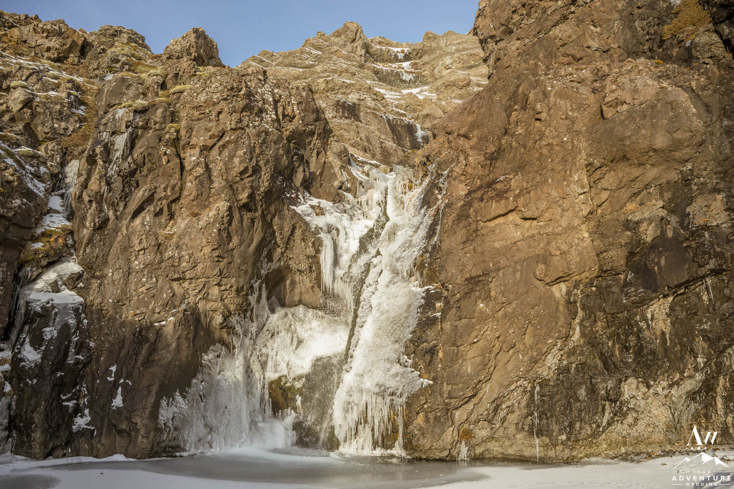 As the first frost covers the rugged landscapes of East Iceland, a magical transformation begins. The land of fire and ice becomes a realm of breathtaking beauty, where the baron wilderness meets the ethereal allure of winter. The chill in the air is no deterrent though! Rather, it’s an invitation to explore a world untouched because of a fresh snow fall! Truly a place where adventure and serenity come together, seamlessly. In this remote corner of the island, the winter season offers once in a lifetime experiences that are as diverse as they are awe-inspiring! Therefore, we are pleased for you to take a journey with us to experience this East Iceland frozen waterfall wedding adventure!!