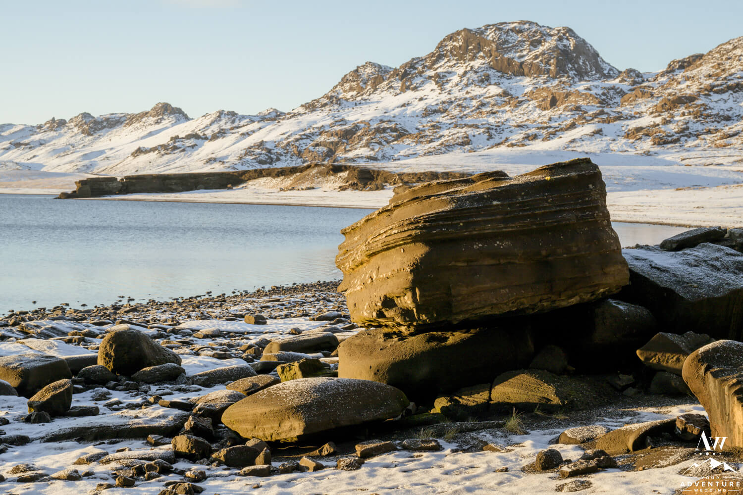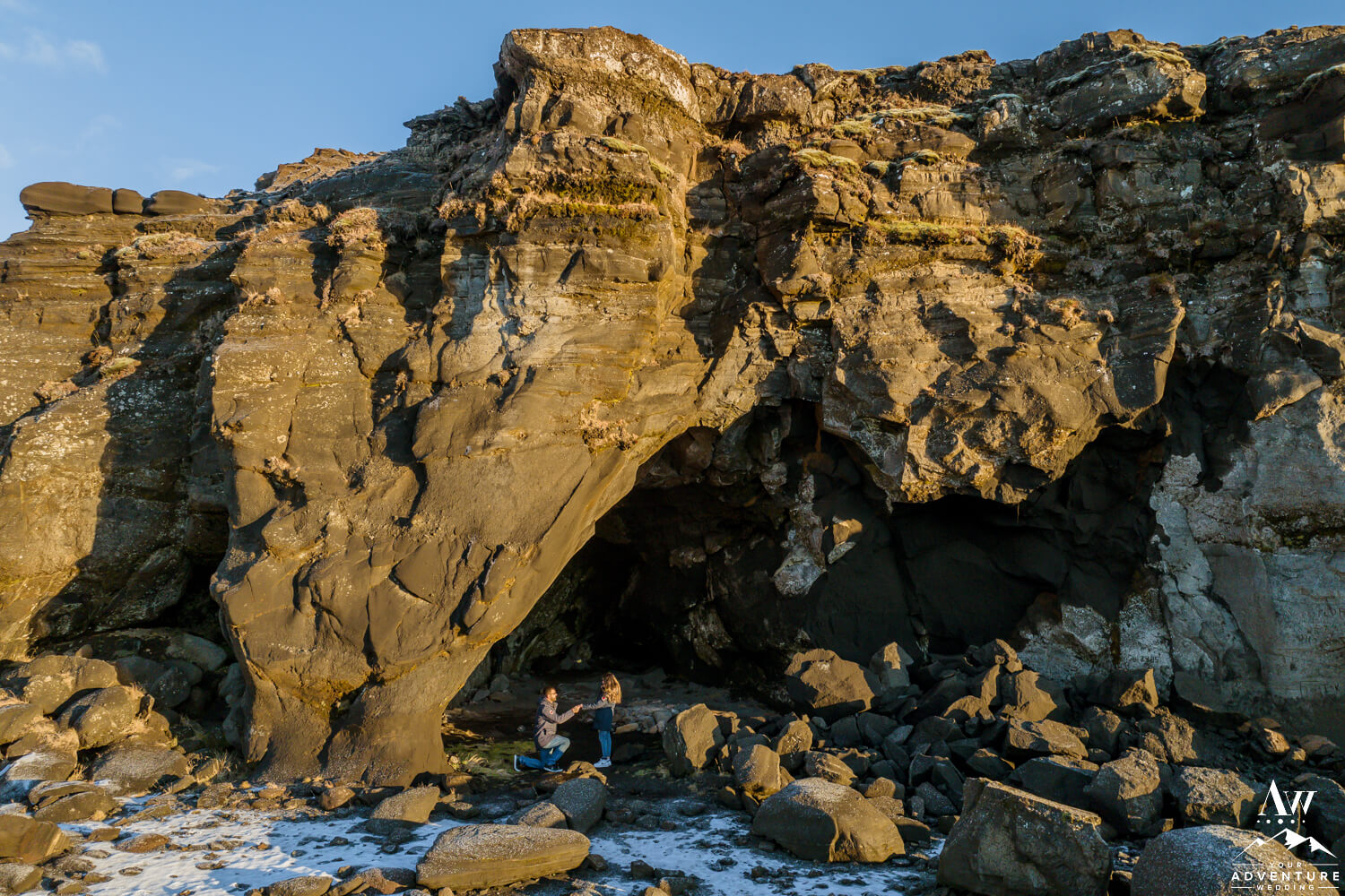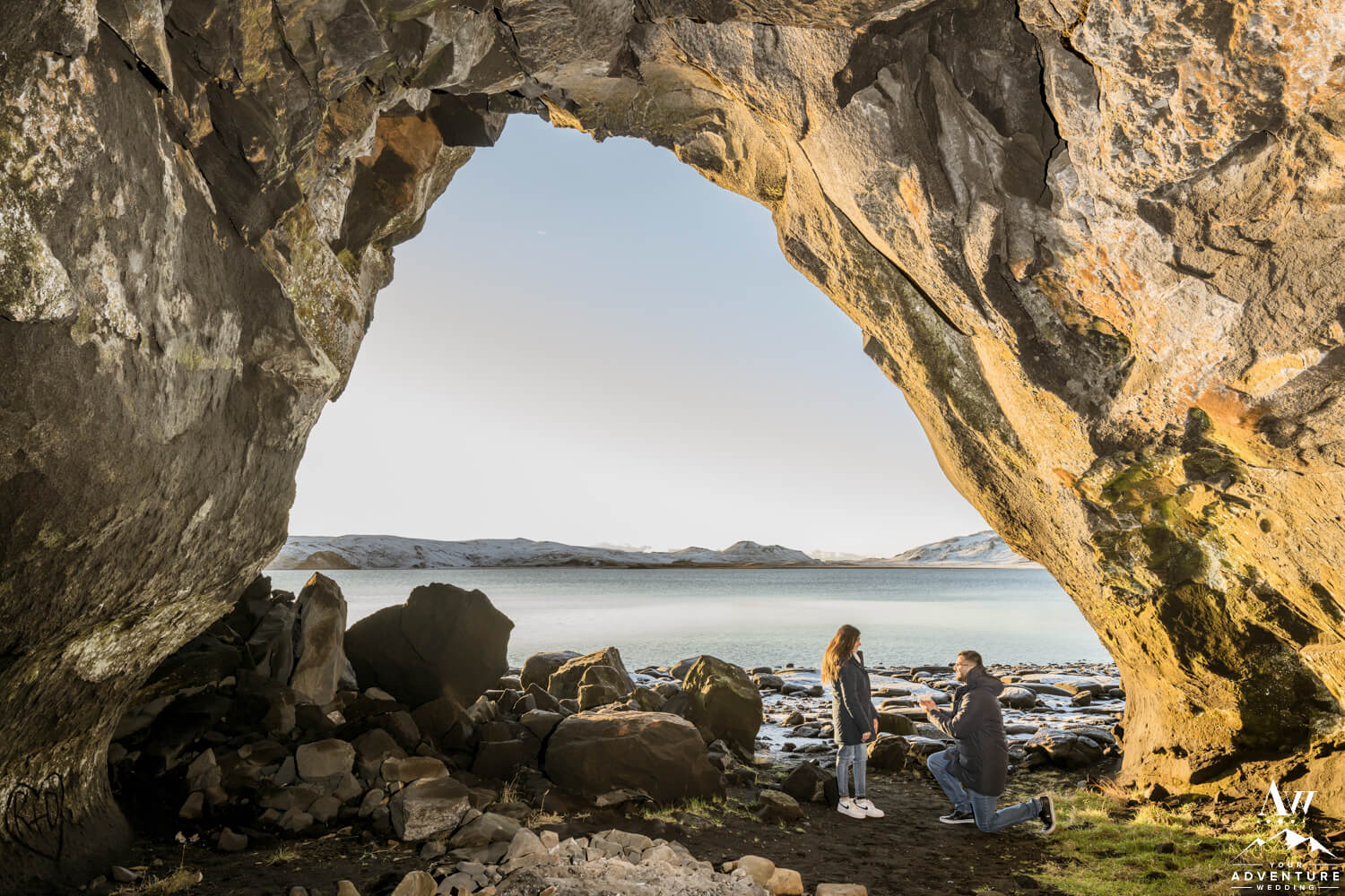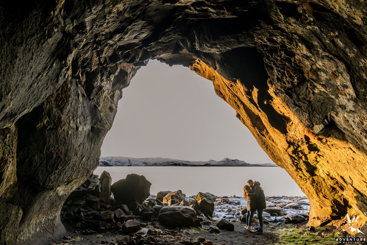 This lakeside cave is made from palagonite tuff which is actually very soft rock. But it looks so amazing in when snow surrounds it as Mukund and Jinkal discover! Basking in the sun and the excitement from their cave proposal you could feel the positivity bursting from them! So incredible to witness!!