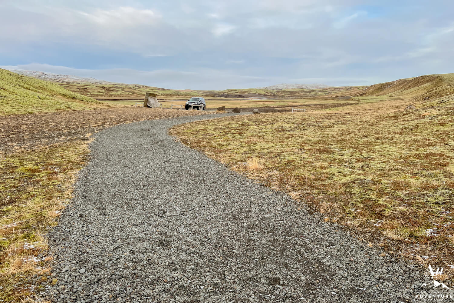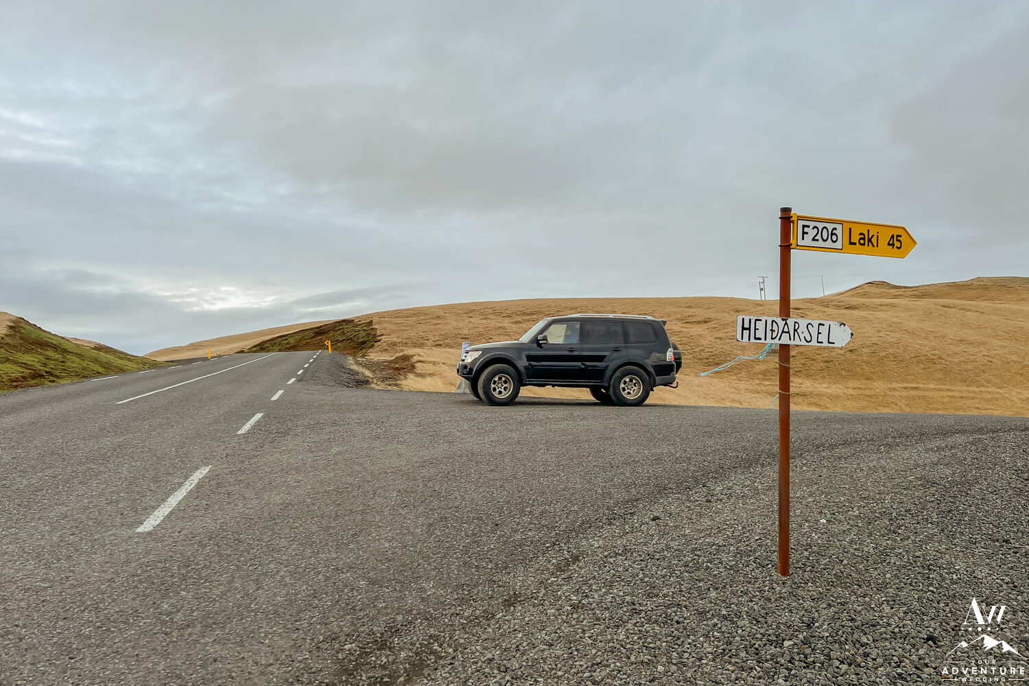 - Next, you’ll come across another split. Straight and back will take you to Fagrifoss and the LEFT turn will take you towards Laki Crater.
