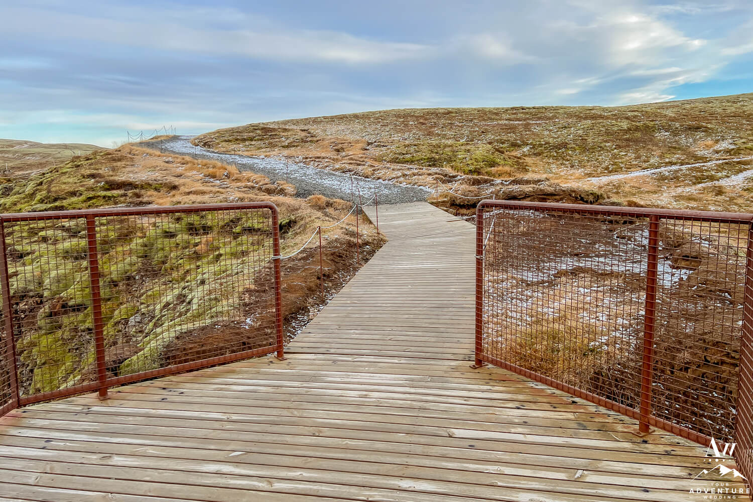 - On the Fagrifoss viewing platform looking back towards the trail.