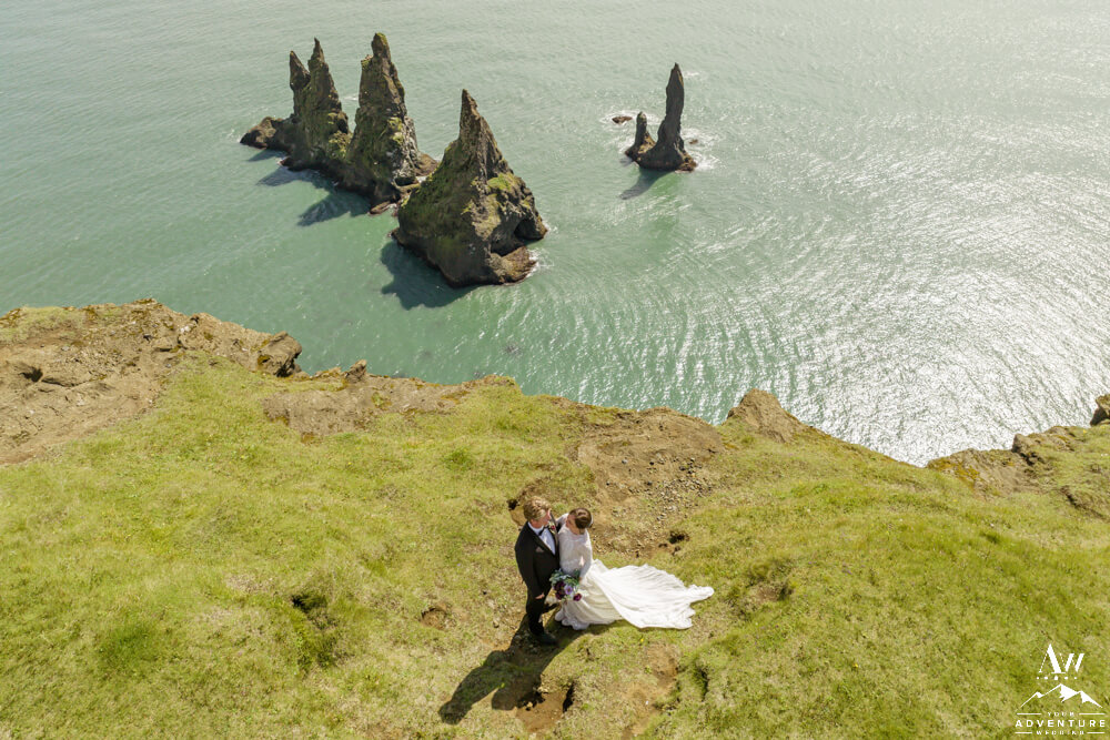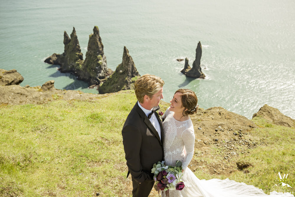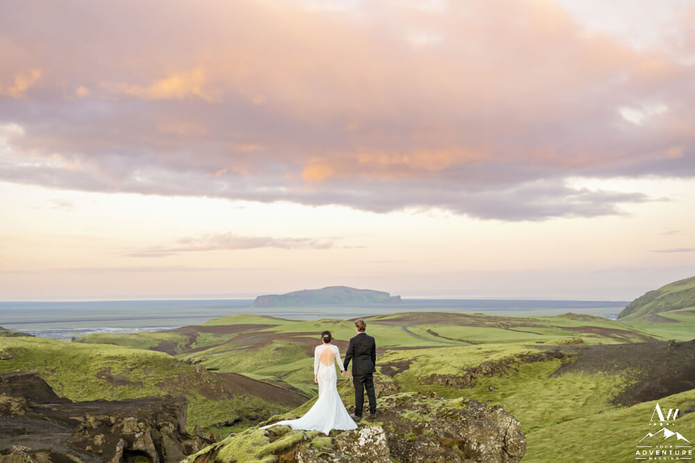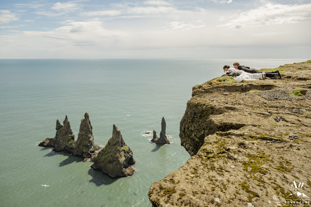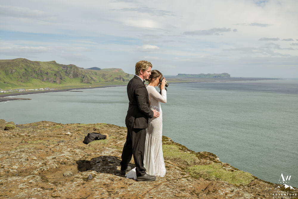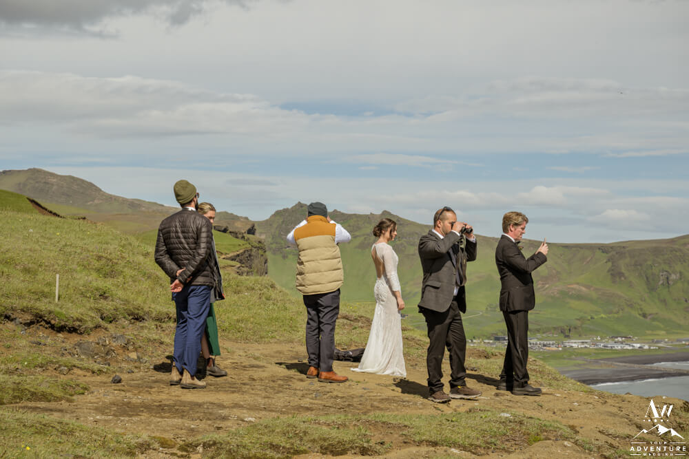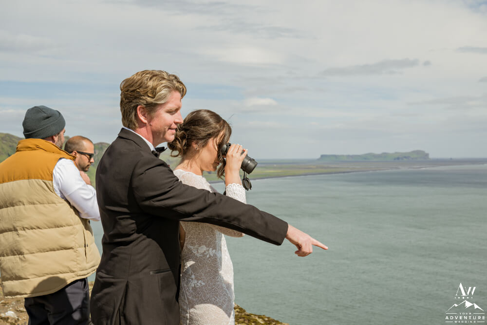 After the Summer waterfall wedding highland journey, it was time to head up to the top of an iconic mountain! There the group searched for puffins and hiked along the cliffs. July is a ideal month to spot puffins along these cliffs. Adding a few fabulous Iceland wedding photos along the way was the cherry on top too!