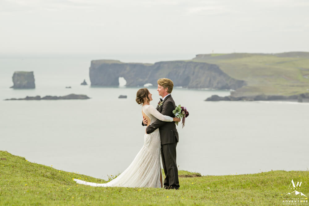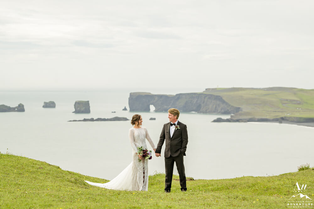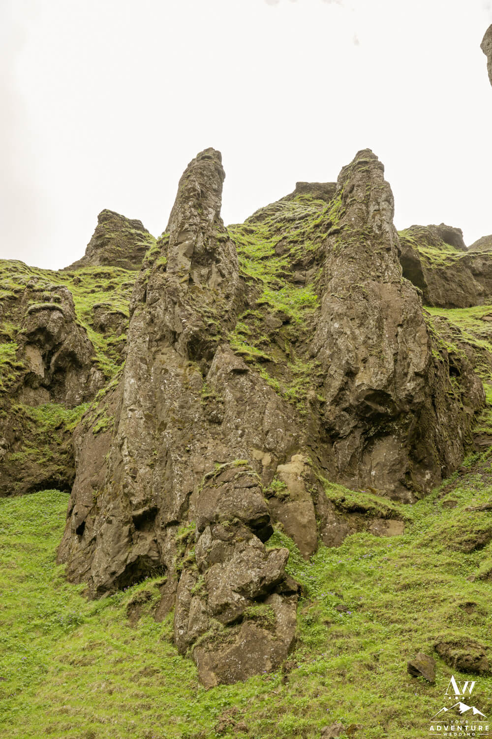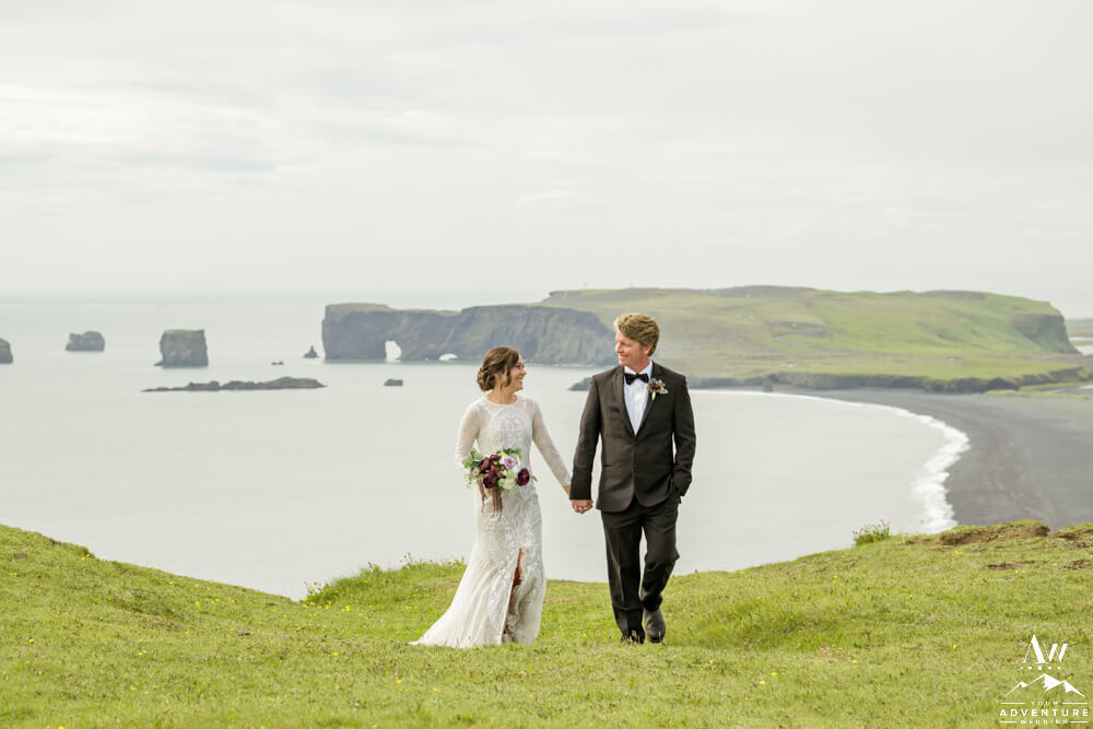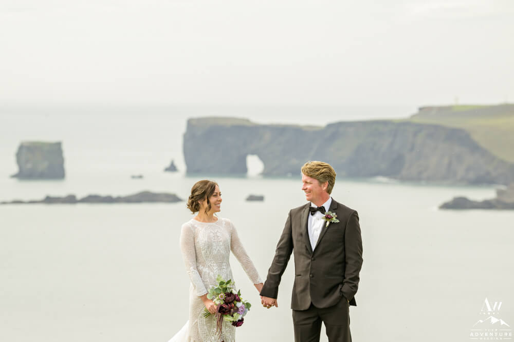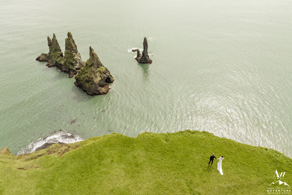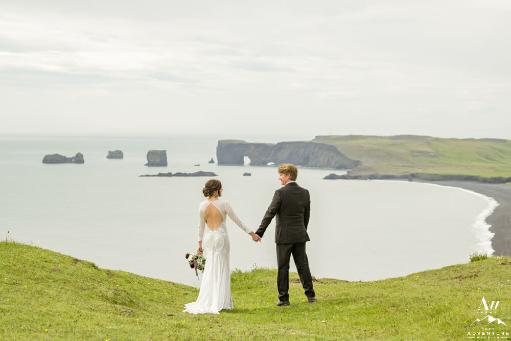 After the Summer waterfall wedding highland journey, it was time to head up to the top of an iconic mountain! There the group searched for puffins and hiked along the cliffs. July is a ideal month to spot puffins along these cliffs. Adding a few fabulous Iceland wedding photos along the way was the cherry on top too!
