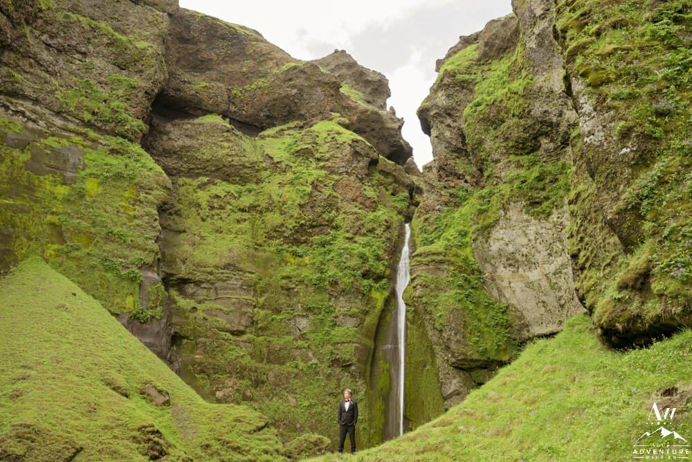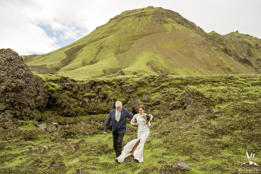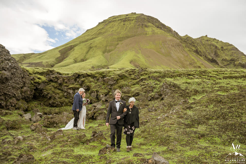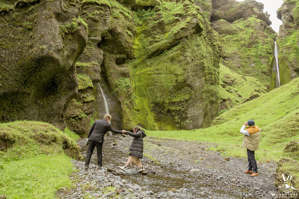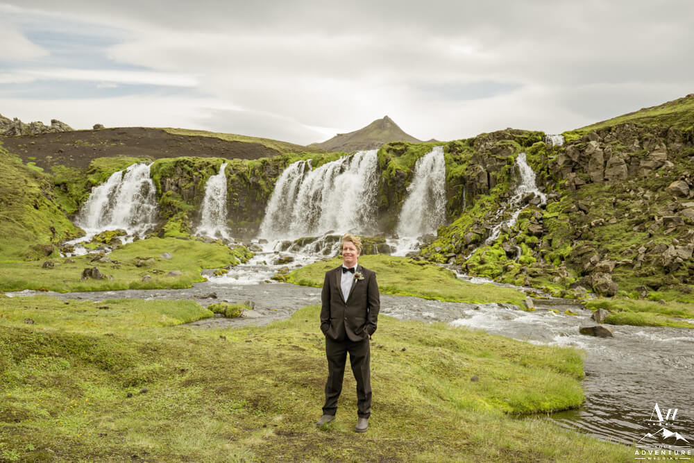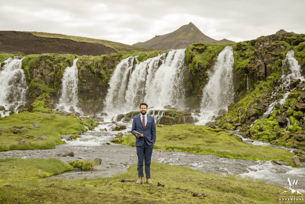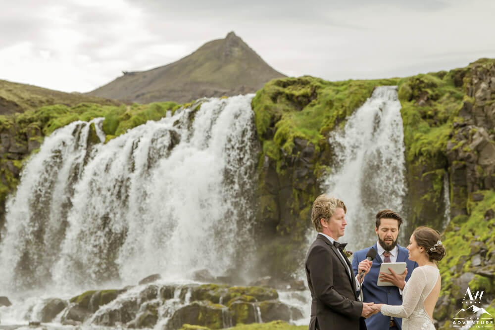 Next, the group ventured into the Iceland highlands for an exciting drive to the Summer waterfall wedding ceremony location! On arrival, the group was in complete awe over the beauty of the waterfall. After our Iceland Wedding Planner team setup the ceremony the guests took their seats.
