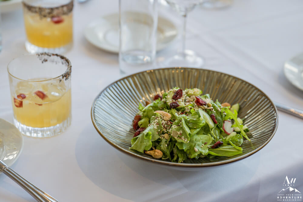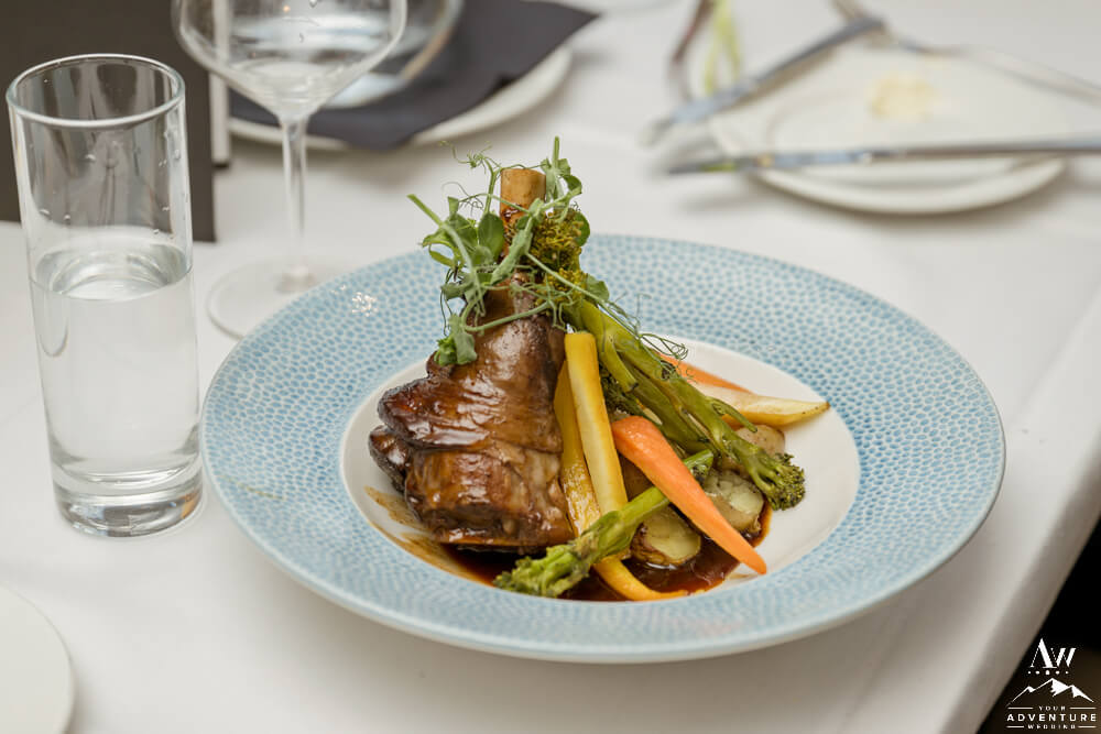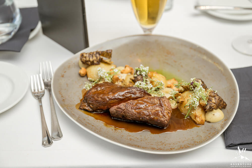 Once the experience portion of the day was complete the Summer waterfall wedding group had a chance to rest and fresh before they gathered for a low key dinner. They were tucked away in a semi-private area of a local restaurant in Vik and delighted in a 3 course meal which included a traditional Iceland wedding cake too! But wait folks that’s not all…