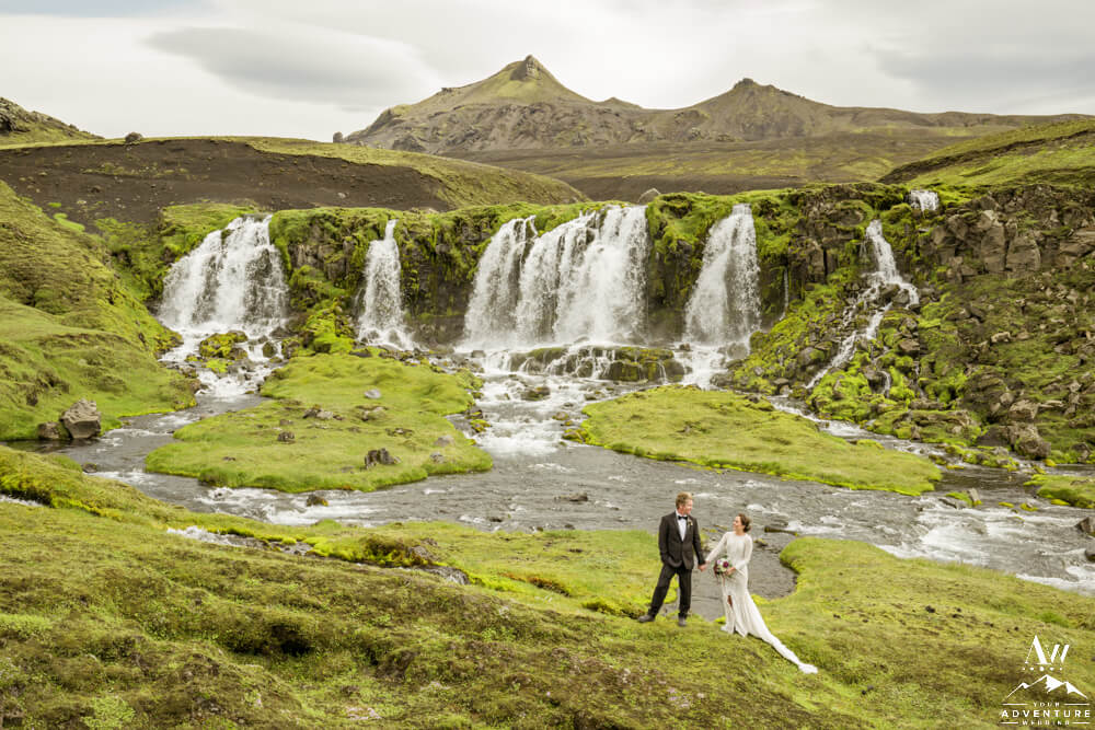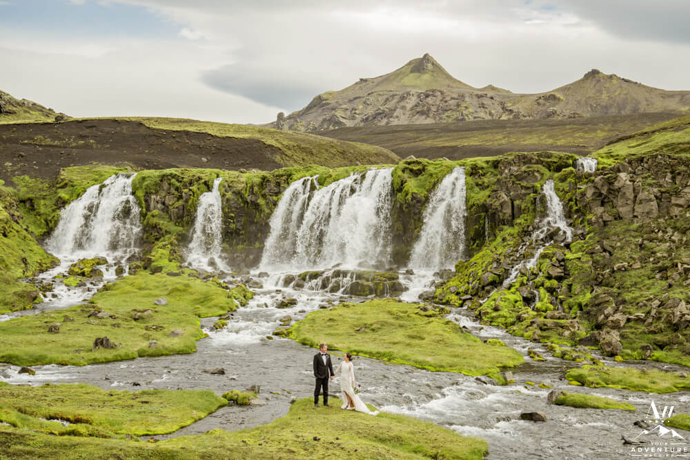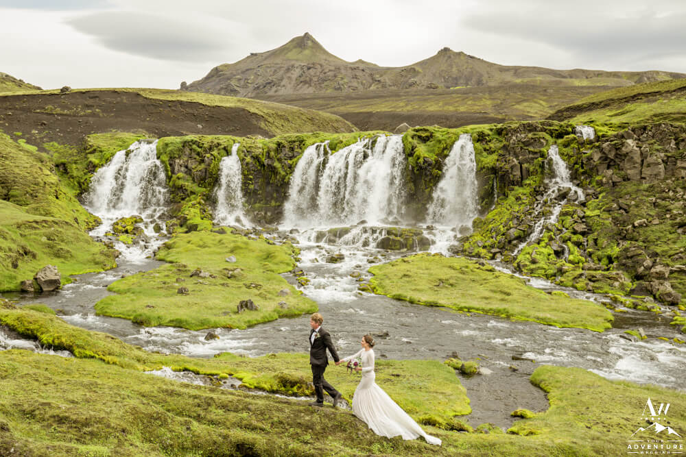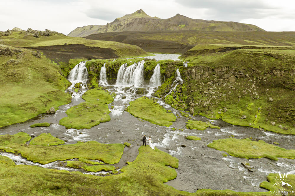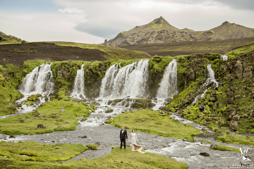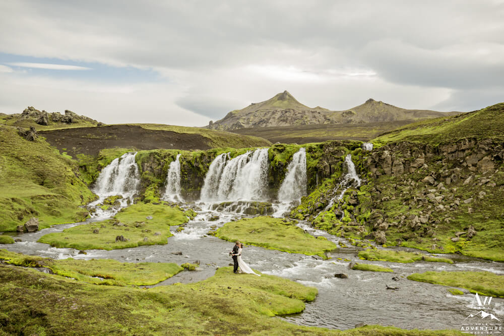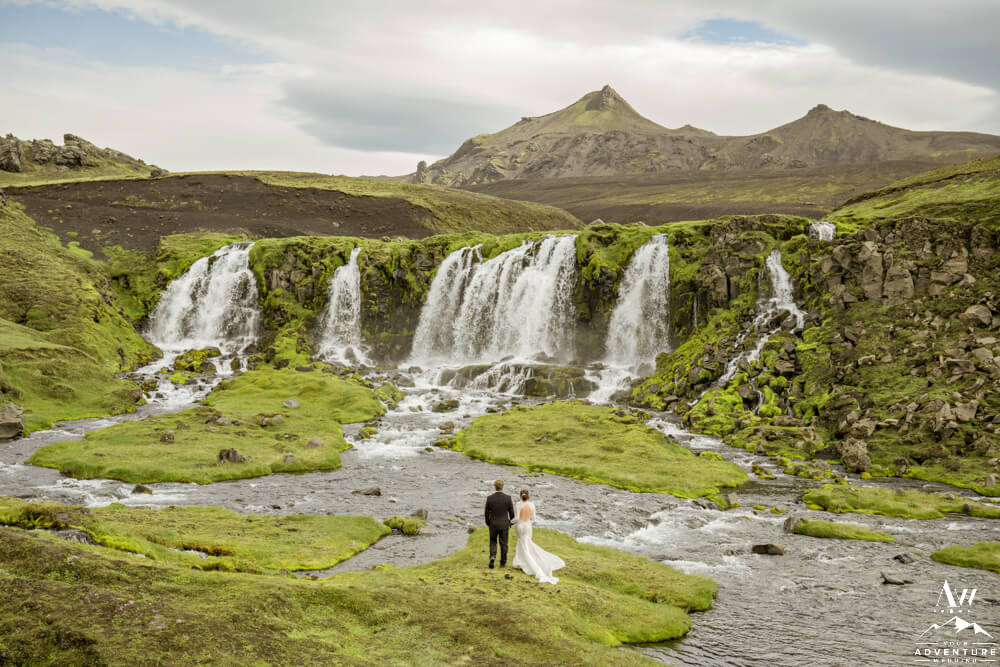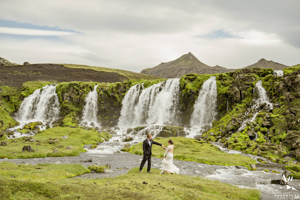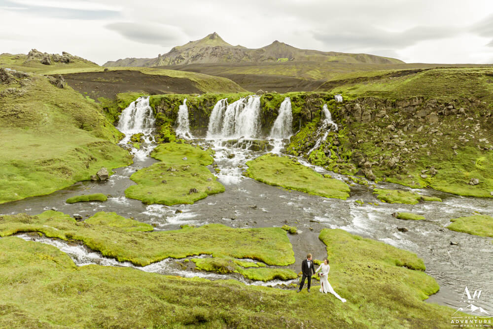 Seeing a variety of iconic landscapes is always high priority for our Iceland Wedding Planner couples. For instance, the vast majority value experiences and having the opportunity to be introduced to landscapes that most locals do not even get the chance to see! So on with the dynamic Summer waterfall wedding schedule… Next, the group went through more highland landscapes to discover more…