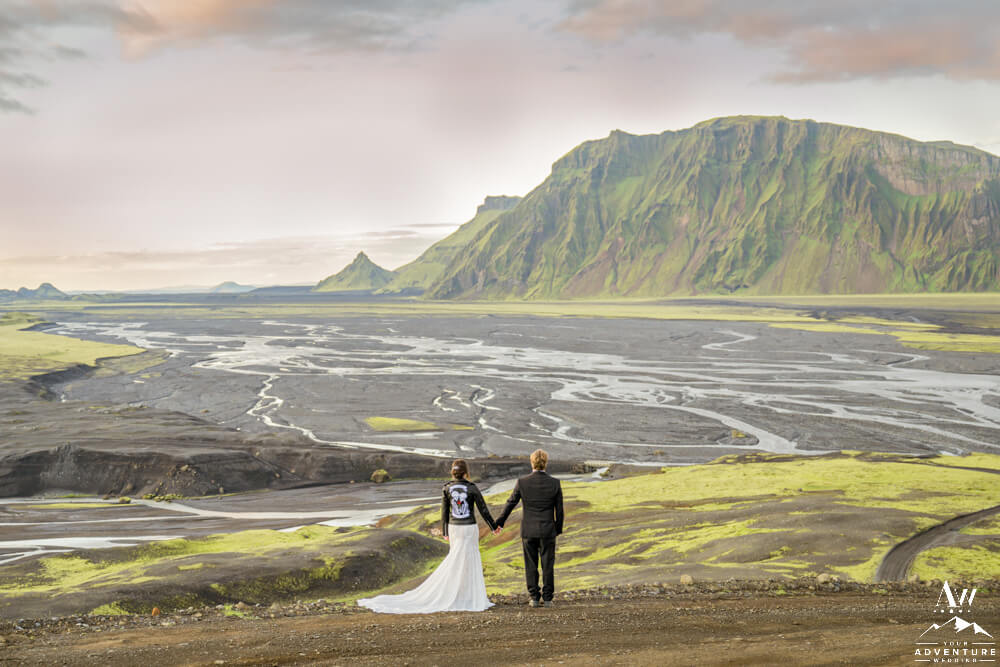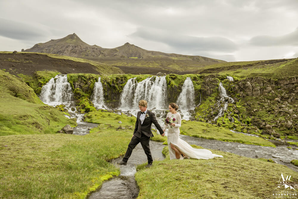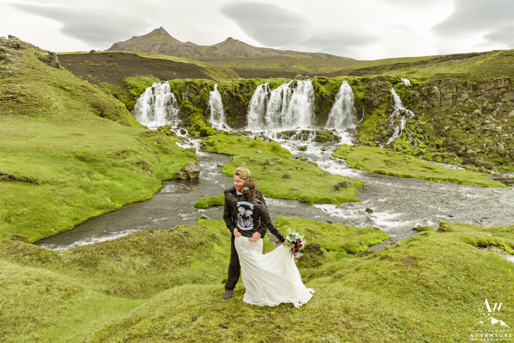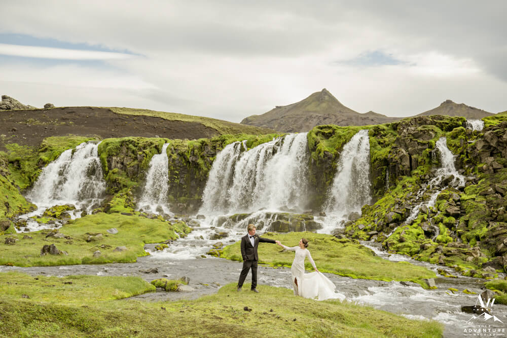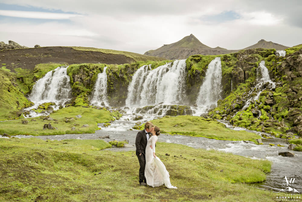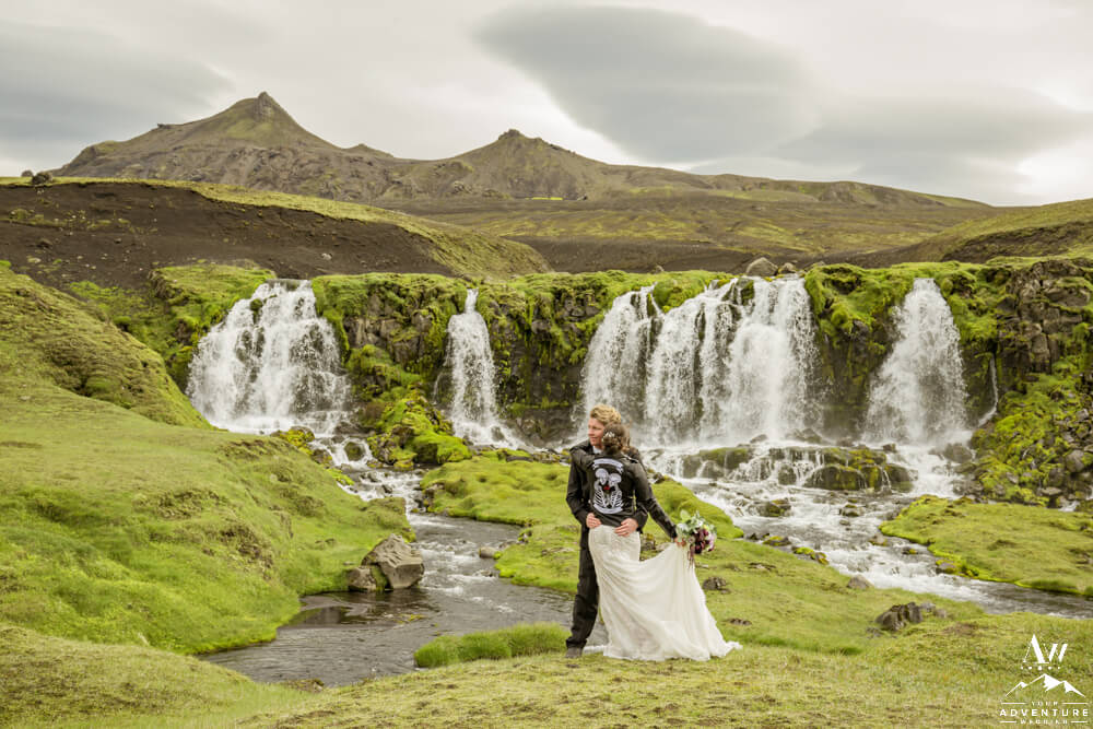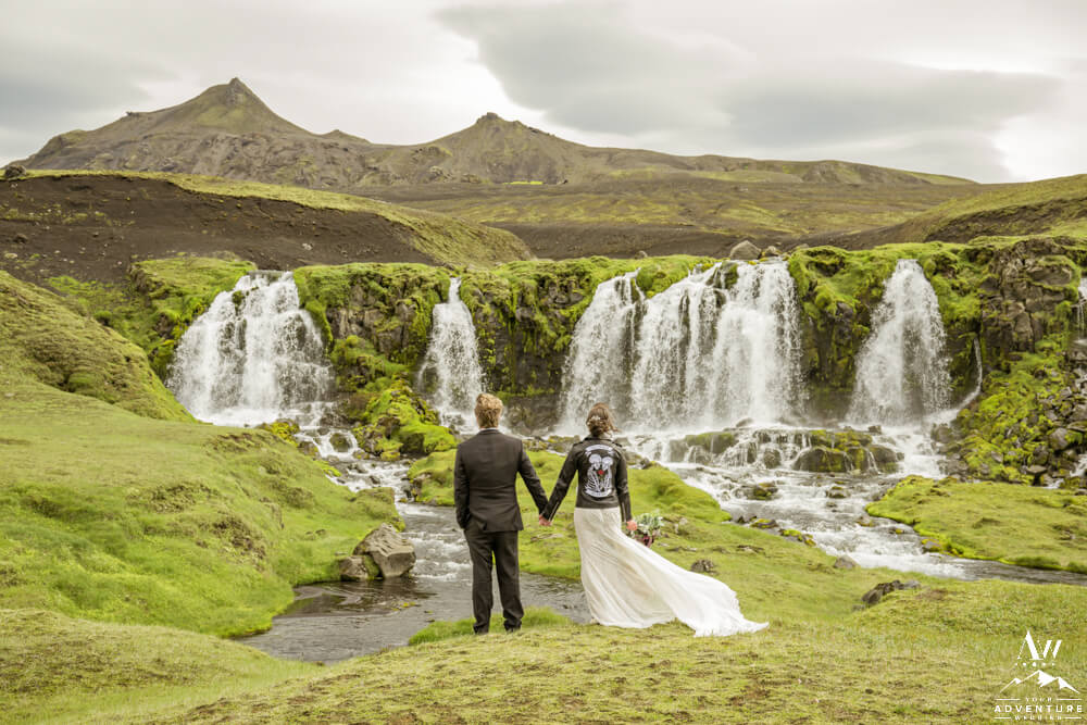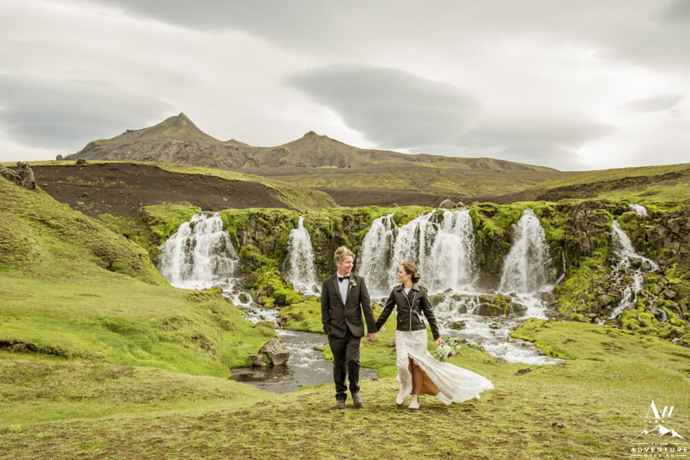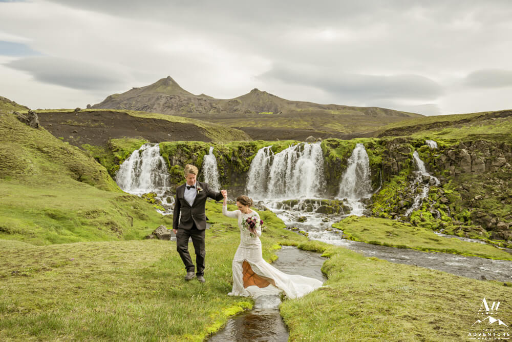 Seeing a variety of iconic landscapes is always high priority for our Iceland Wedding Planner couples. For instance, the vast majority value experiences and having the opportunity to be introduced to landscapes that most locals do not even get the chance to see! So on with the dynamic Summer waterfall wedding schedule… Next, the group went through more highland landscapes to discover more…