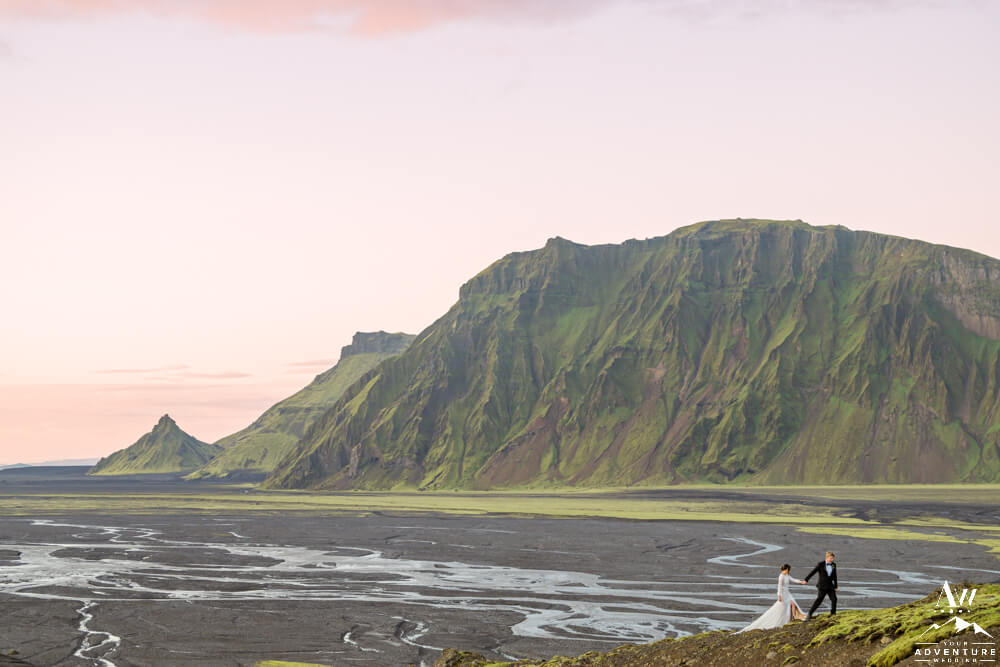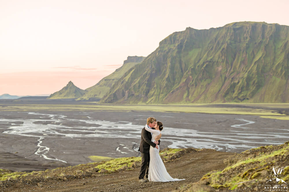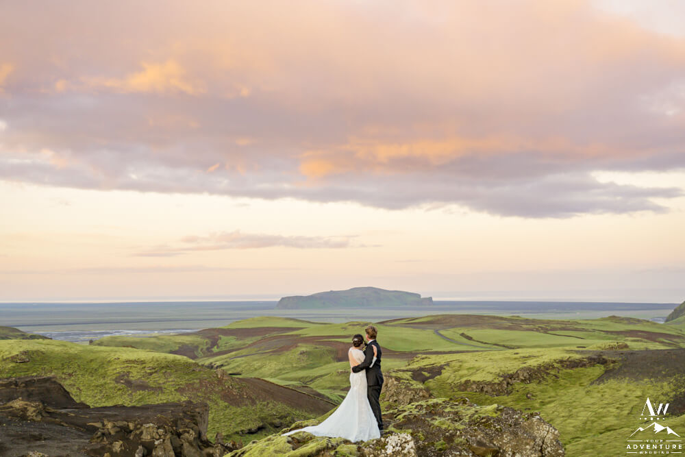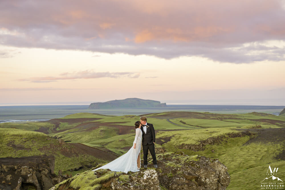 Since planning a Summer waterfall wedding in Iceland means lots of daylight… That means going back out after dinner for sunset wedding photos is 100% a thing! Ben and Erin still had energy left to head back our with our Iceland elopement photographer and the photos are so inspiring!