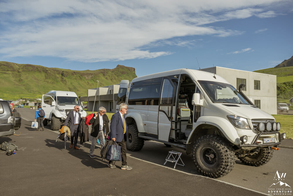 The morning of July 4th 2023 began in the small Southern town or Vik with lots of sunshine and good vibes! Ben and Erin got ready together while our Iceland wedding hair and makeup team got to work! Once the super jeeps pulled up it was time to grab “go bags” and load in to embark on the Summer waterfall wedding adventure!!! Woohoo!!
