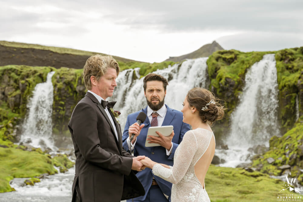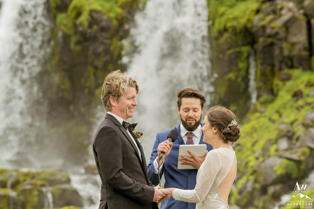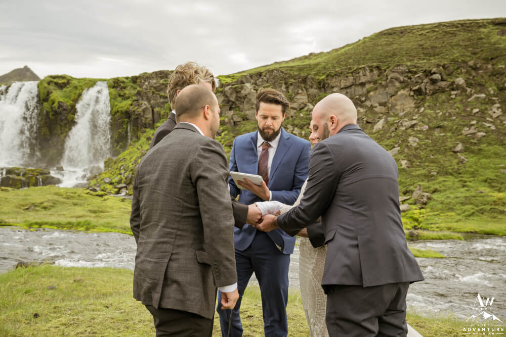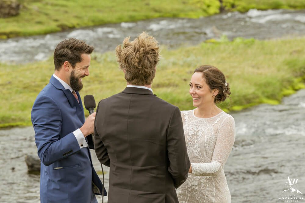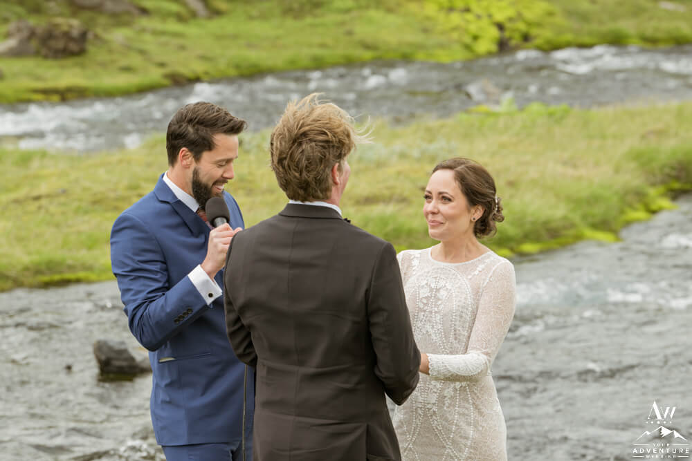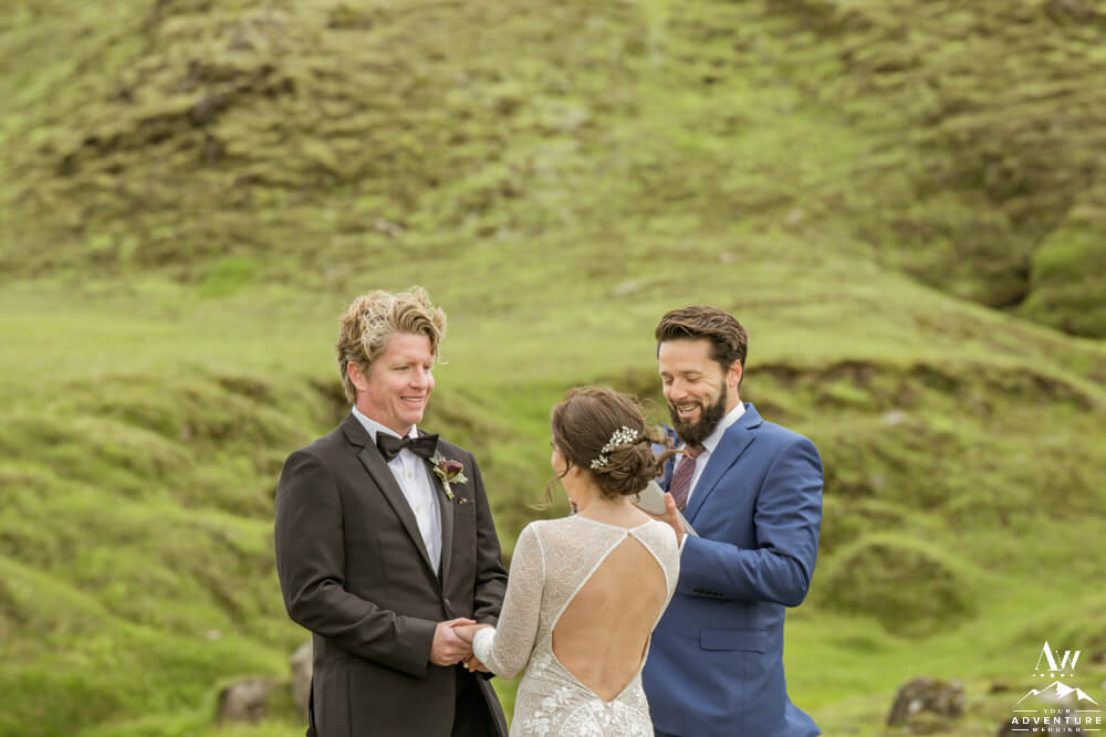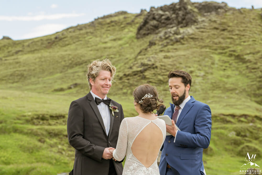 Erin and Ben decided to handle their Iceland Marriage Paperwork in the USA before they came. Therefore, one of their fabulous guests performed their symbolic ceremony. To illustrate, it was a heartfelt ceremony which included vows, a handfasting, exchange of rings, and a kiss to kick off the celebration!