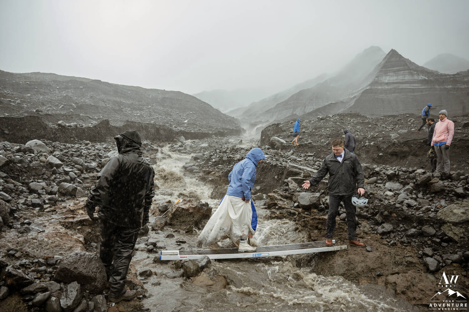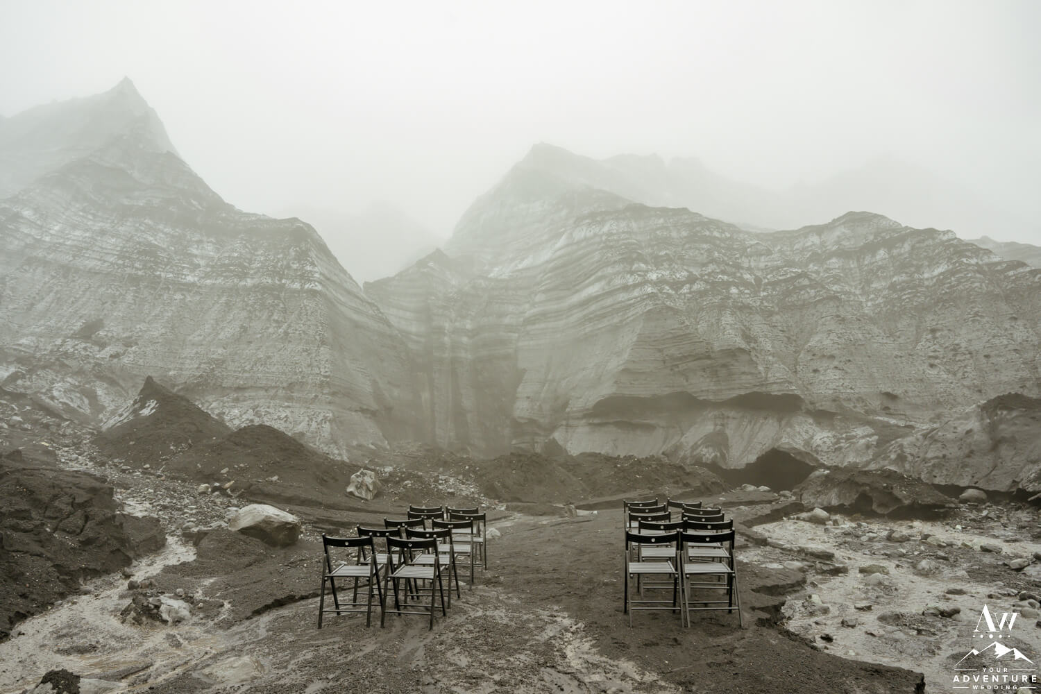 Upon arriving to the glaciers edge, our Iceland Wedding Planner team immediately went to work with ceremony setup. One of the many things to know when planning a glacier wedding is about quick sand and how rivers max overflow in the rain. But the good news is our team is always doubly prepared for anything and everything to ensure all runs smooth.