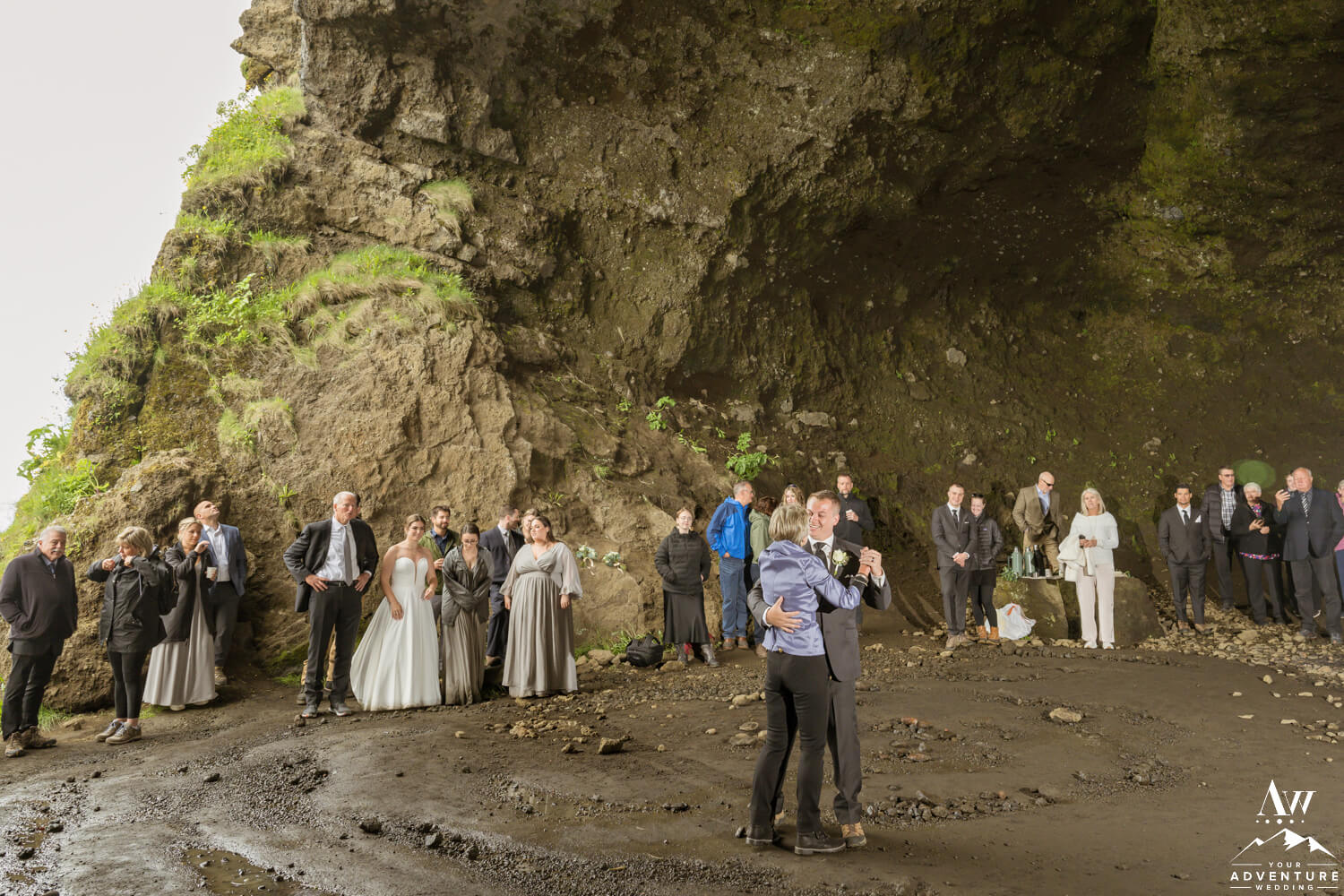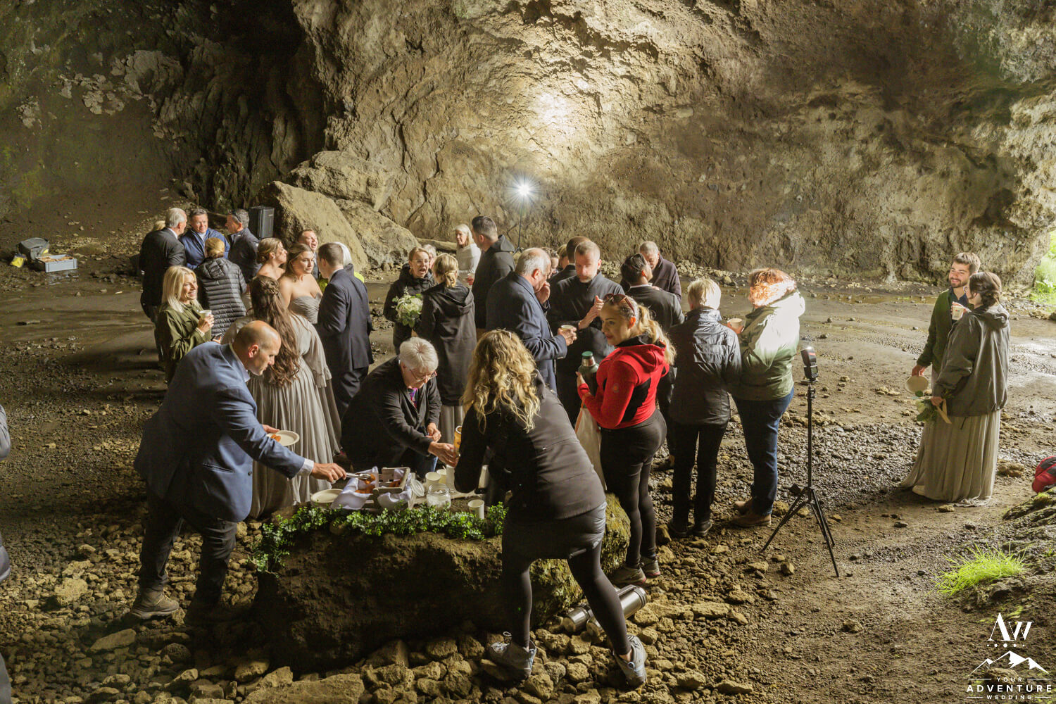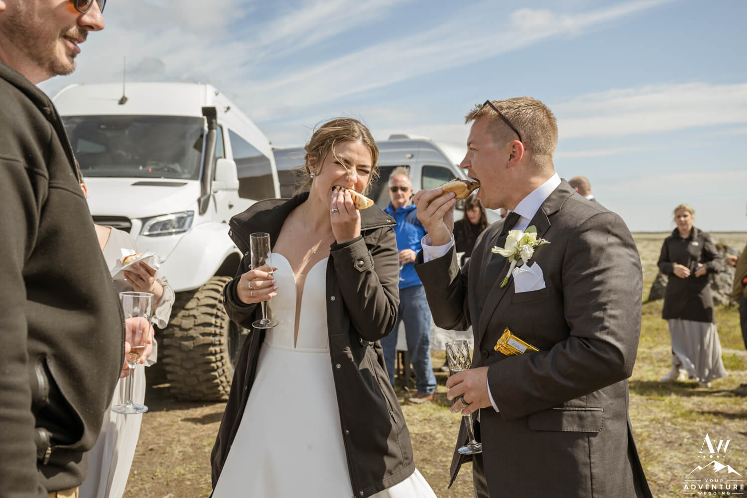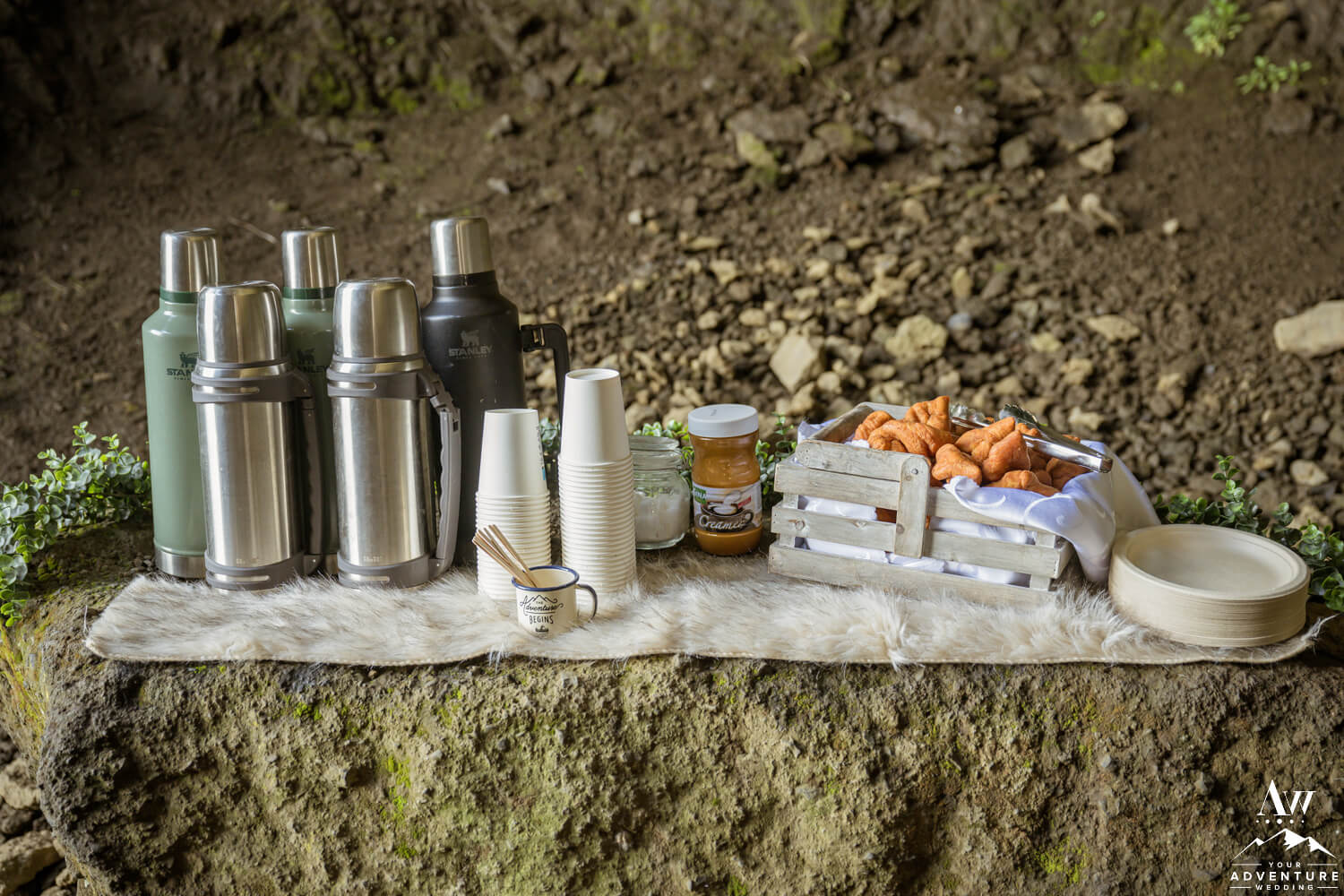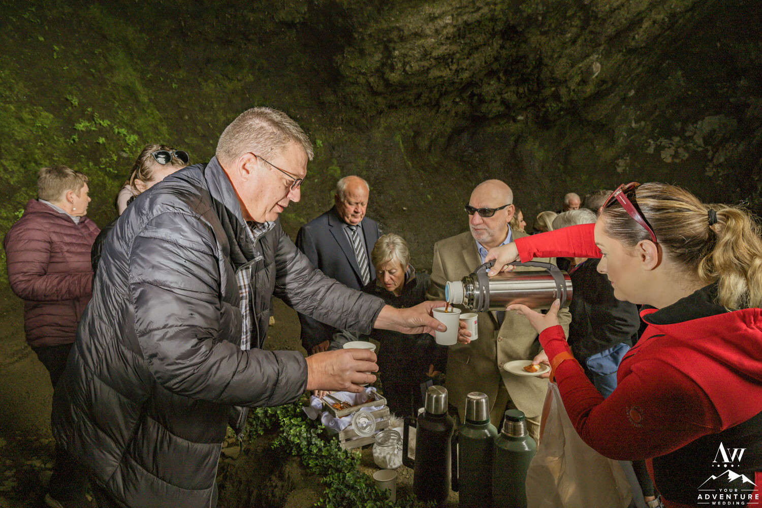 Following their destination wedding Iceland cave ceremony, the group delighted in hot coffee, kleina (Icelandic donuts) and celebratory first dances!