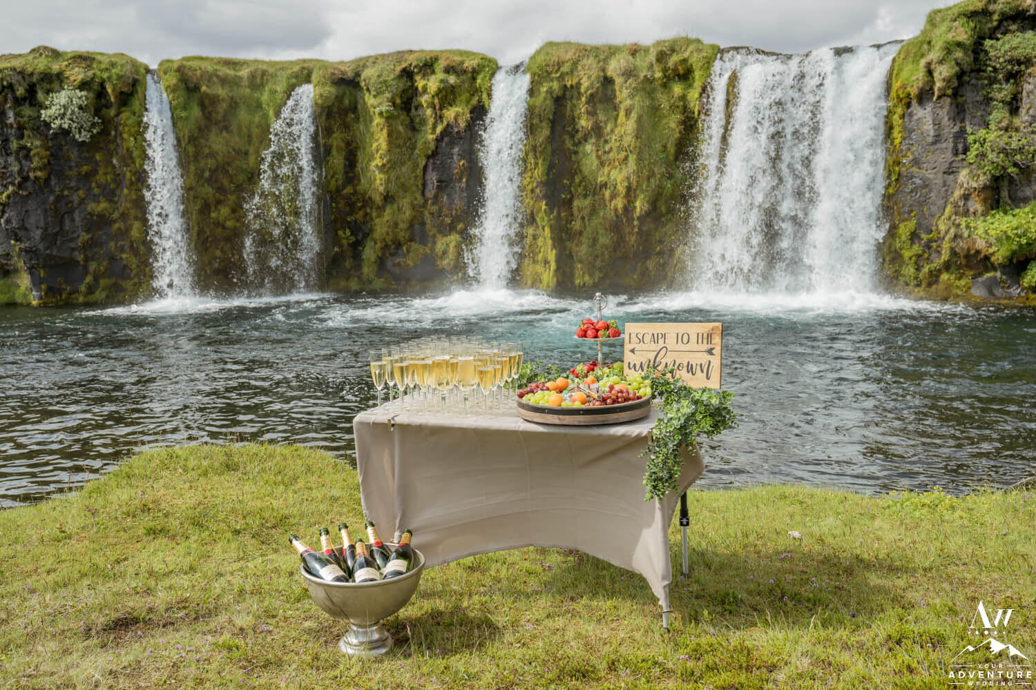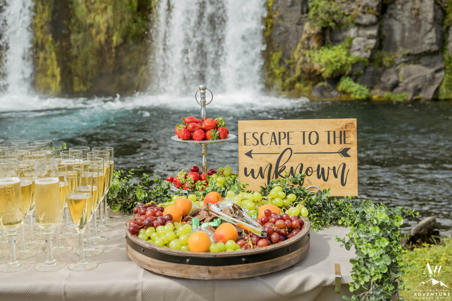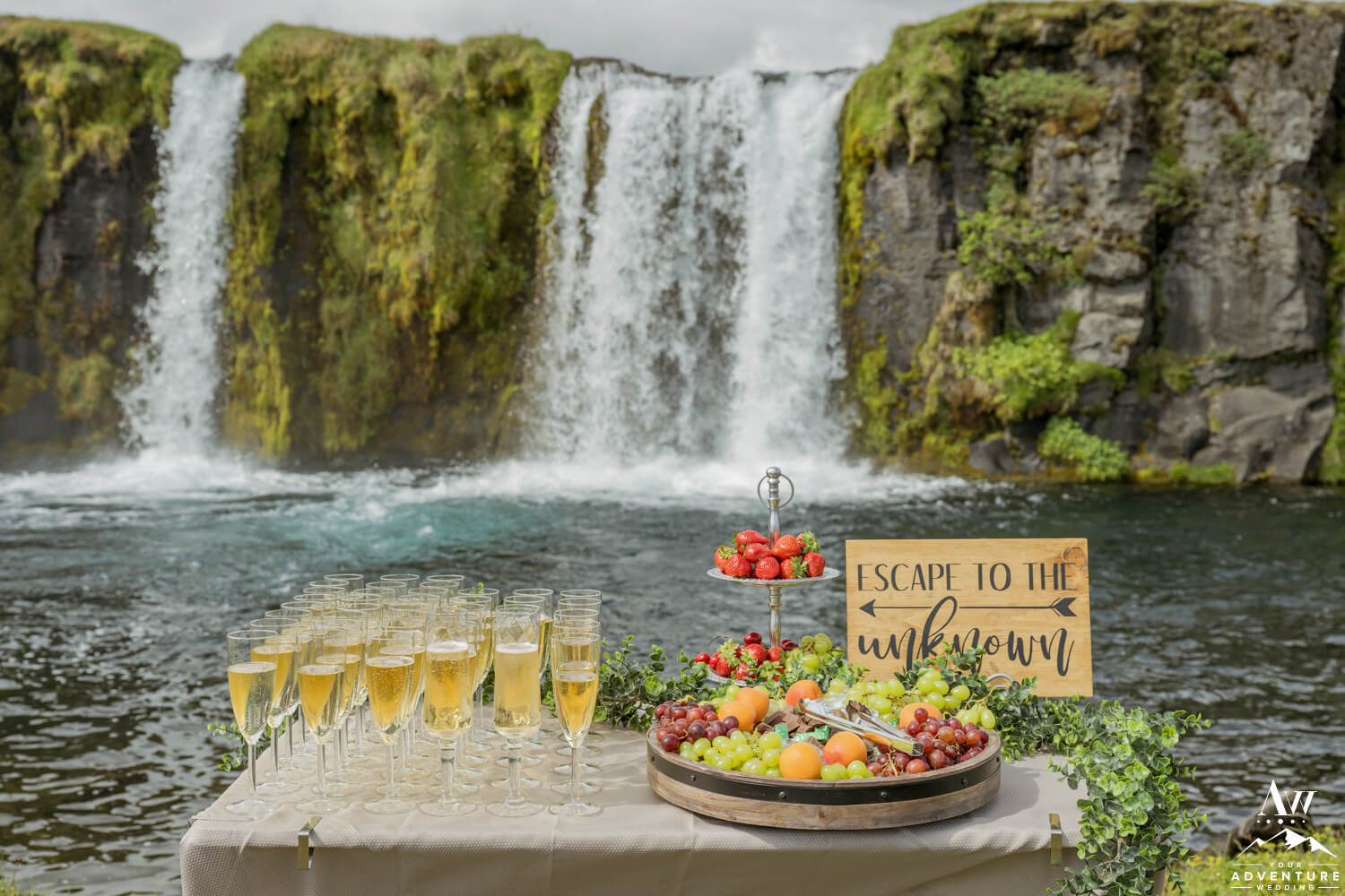 After your ceremony, why not celebrate with a champagne toast beside a private waterfall? Furthermore, imagine this secluded oasis being just for you and your guests! This intimate celebration adds a touch of luxury to your destination wedding Iceland adventure. Plus, who doesn’t love sunshine and good old BBQ of Icelandic hot dogs (totally different than the basic North American hot dogs)?! Frankly, this is a perfect way to introduce your guests to Icelandic culture of traveling the highlands.