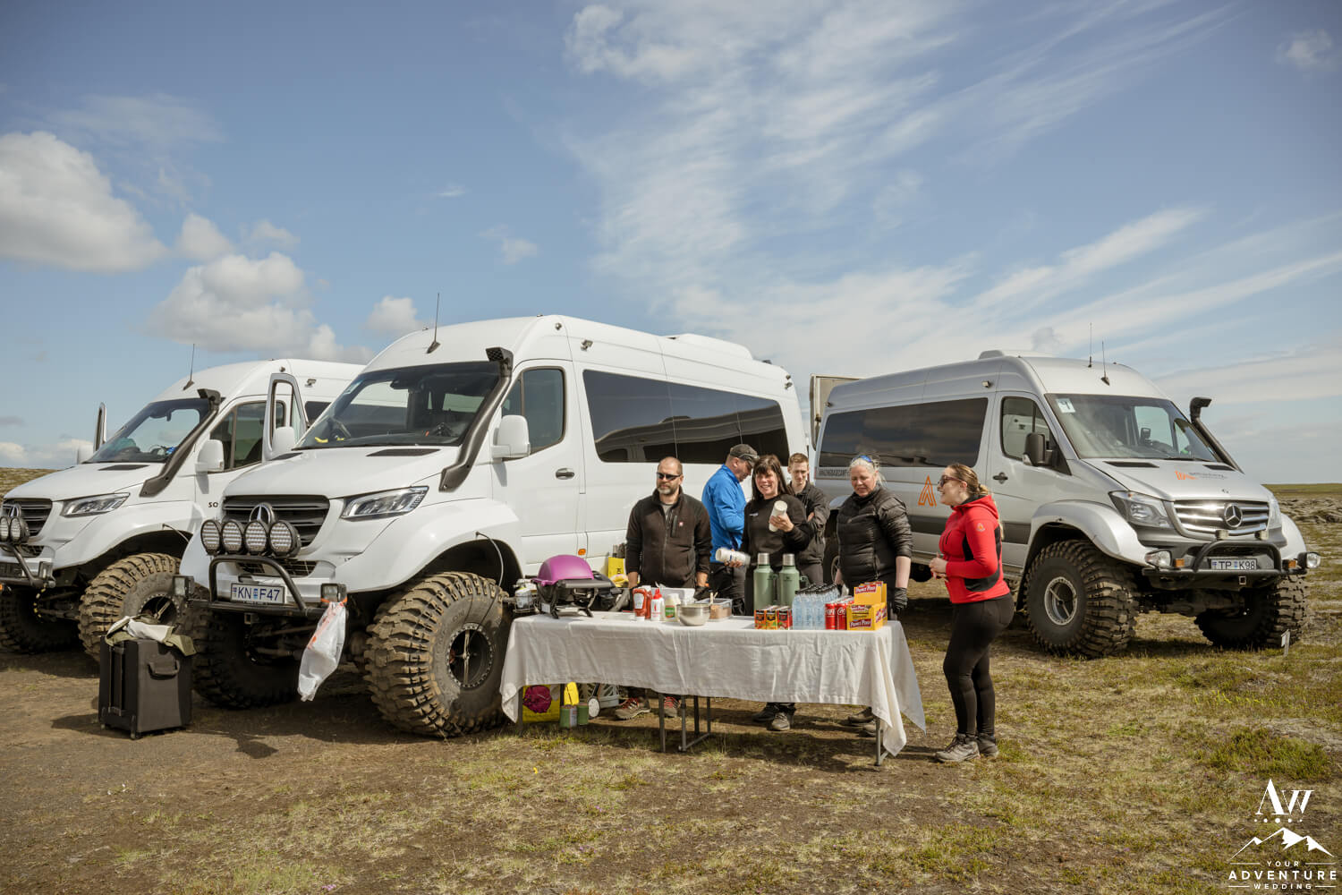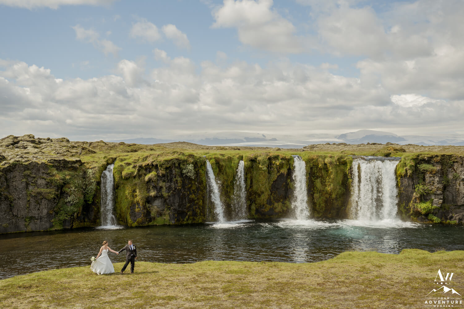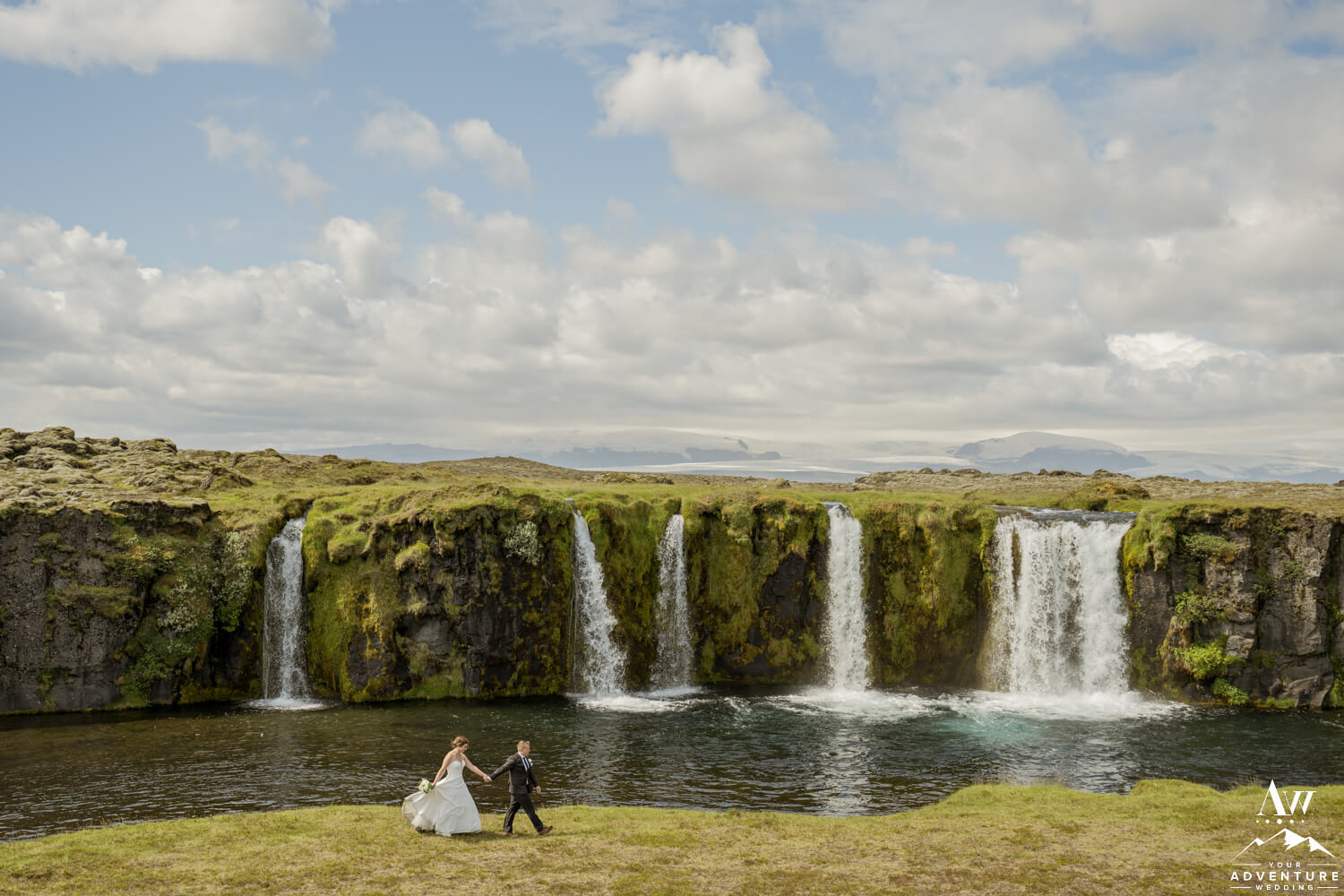 After your ceremony, why not celebrate with a champagne toast beside a private waterfall? Furthermore, imagine this secluded oasis being just for you and your guests! This intimate celebration adds a touch of luxury to your destination wedding Iceland adventure. Plus, who doesn’t love sunshine and good old BBQ of Icelandic hot dogs (totally different than the basic North American hot dogs)?! Frankly, this is a perfect way to introduce your guests to Icelandic culture of traveling the highlands.