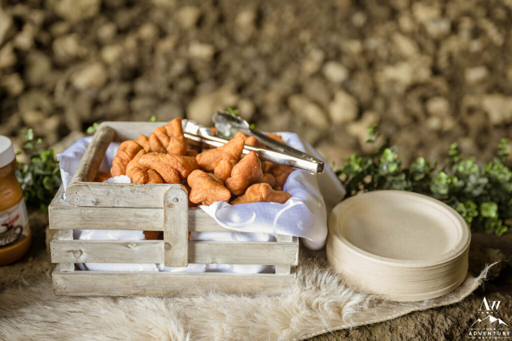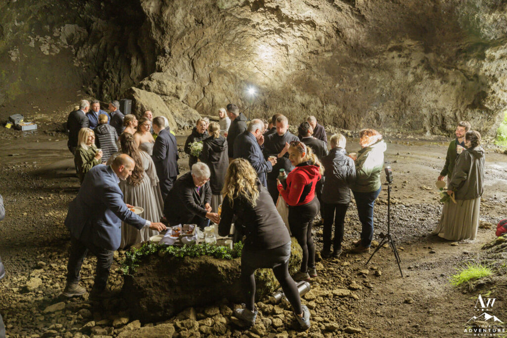 Following their destination wedding Iceland cave ceremony, the group delighted in hot coffee, kleina (Icelandic donuts) and  celebratory first dances!