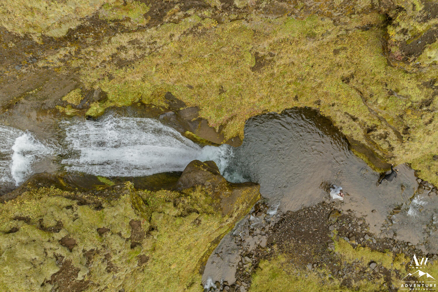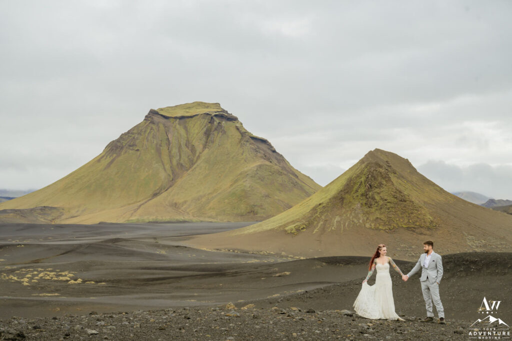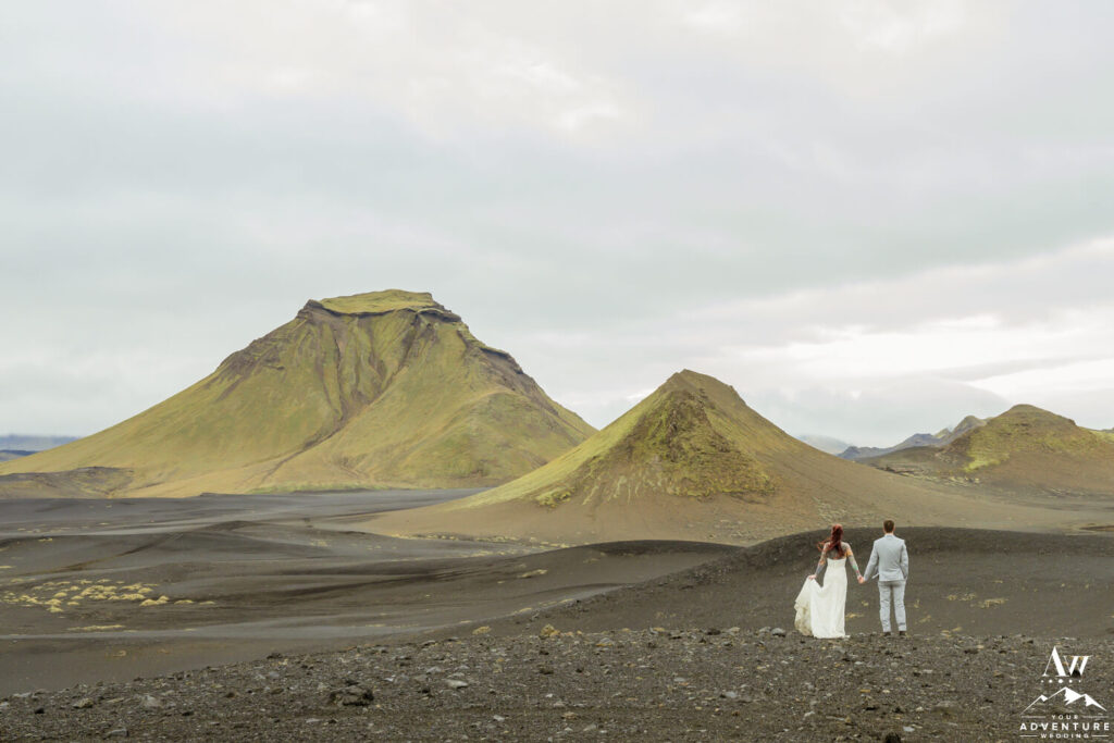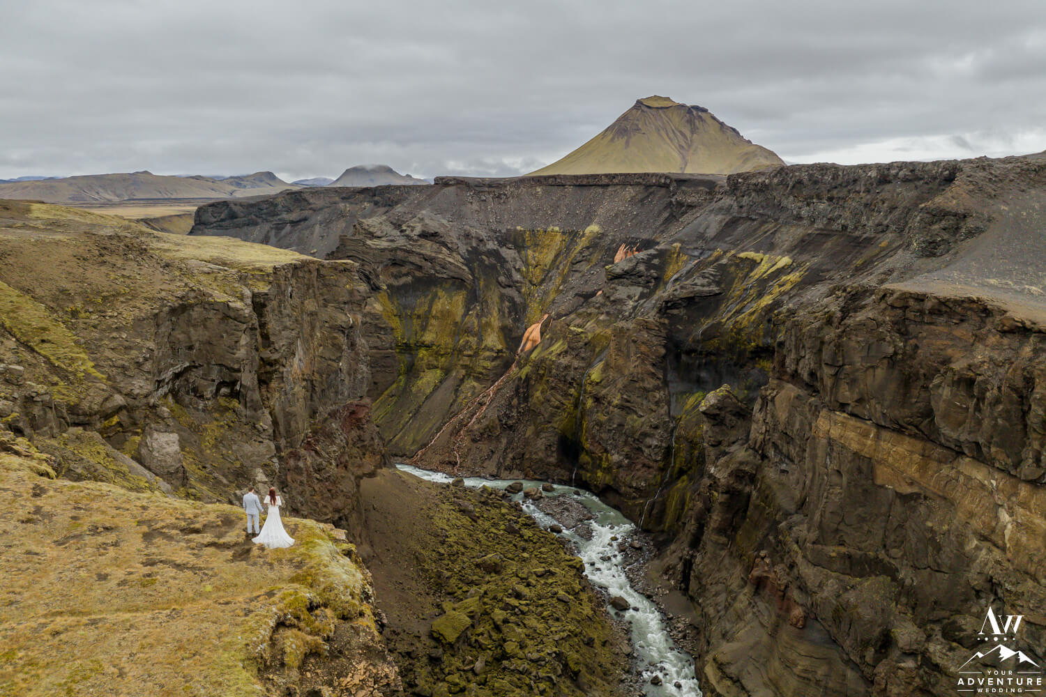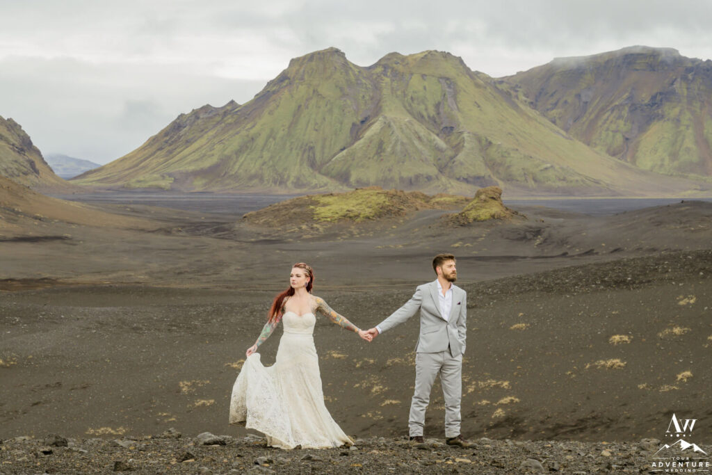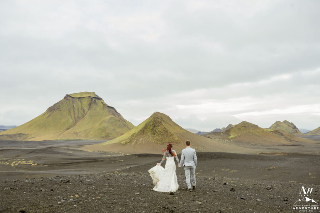 As they emerged from the natural caves, they were greeted by a vivid canyon that stretched as far as the eye could see. Additionally, the area offered panoramic 360-degree views of Iceland’s stunning highlands. But which photos do you like more… From the ground or from the drone our Iceland elopement photographer captured?