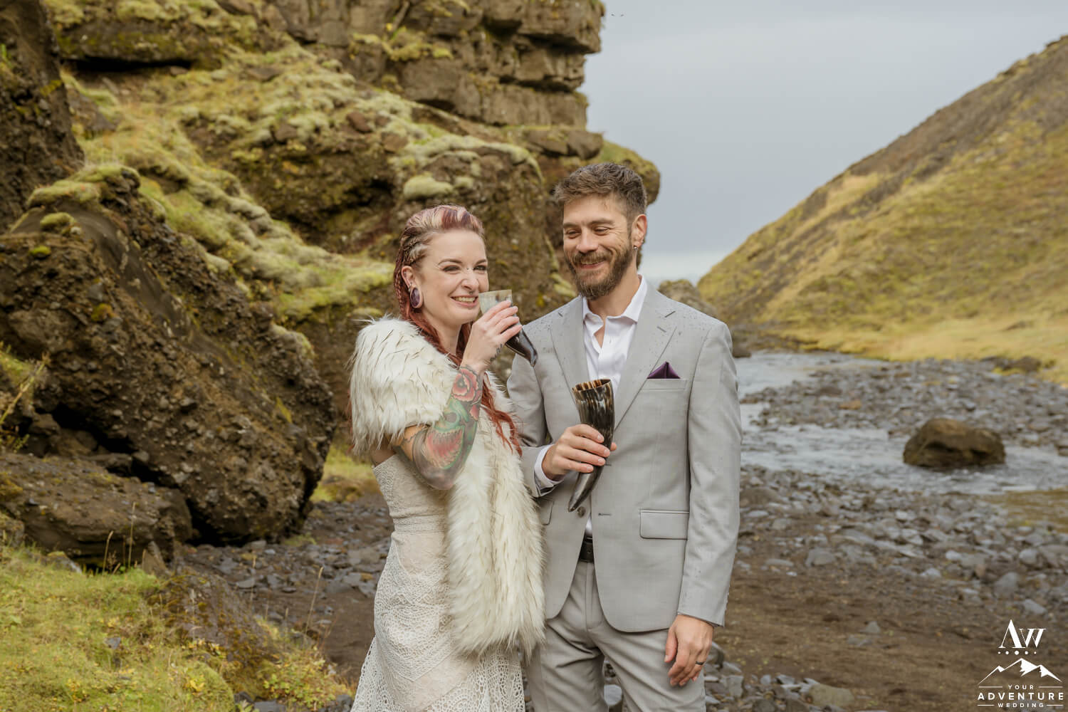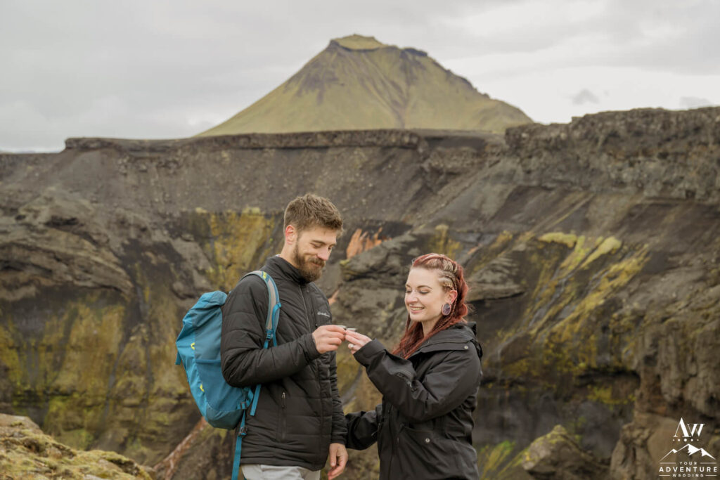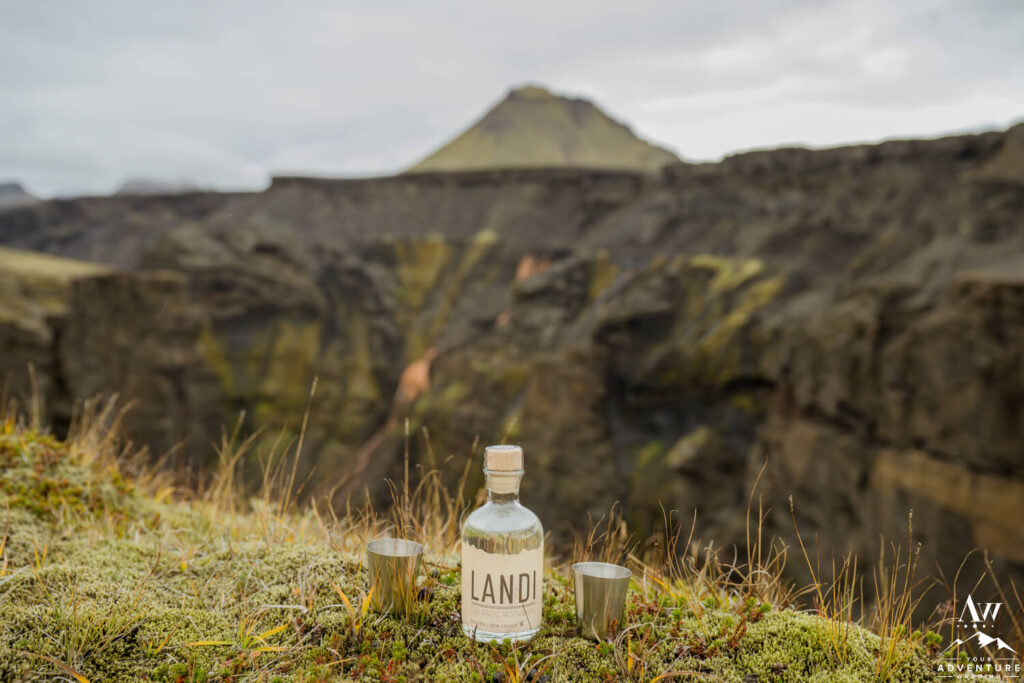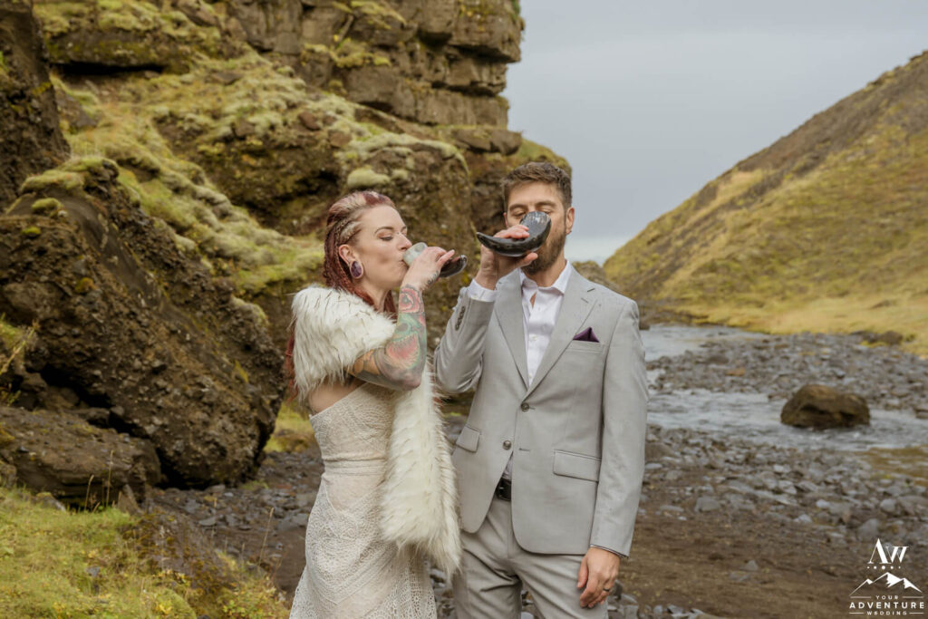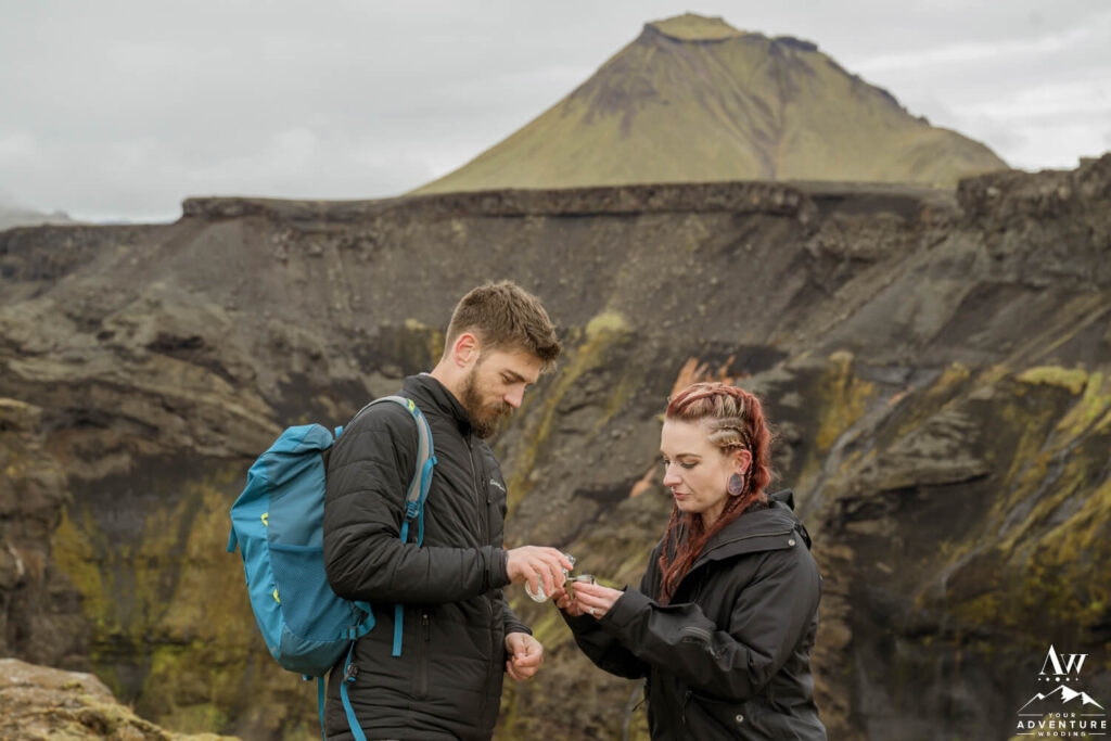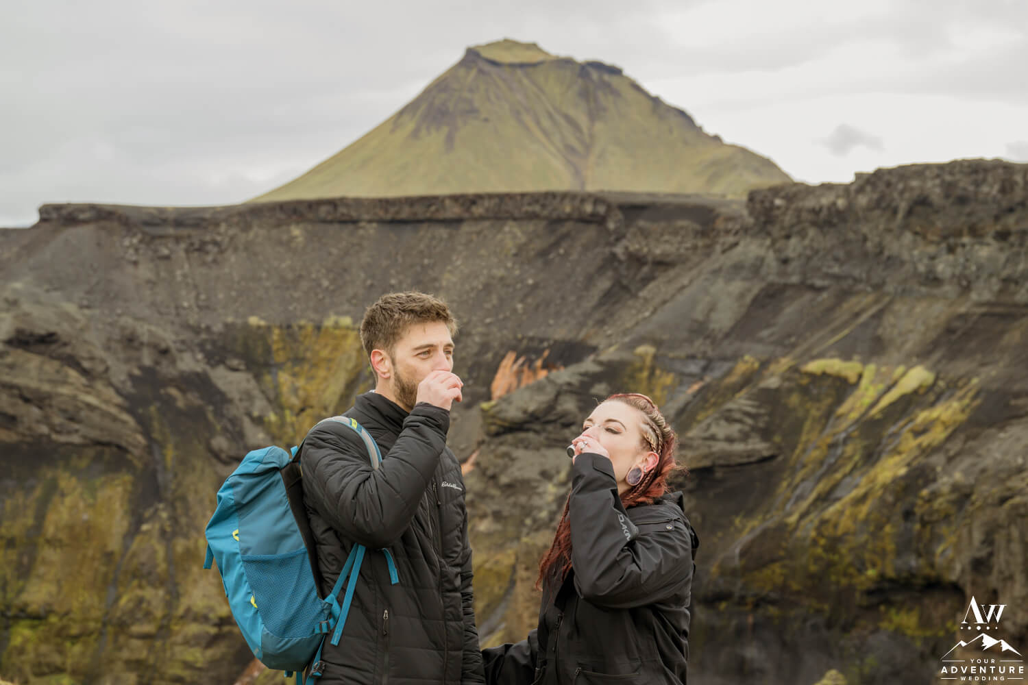 Further more, to continue celebrating their elopement in true Icelandic fashion, the couple raised their glasses for a toast with Icelandic moonshine. To illustrate, it’s called Landi and it is a strong and traditional drink that has a long history. Also, this fiery sip of adventure was the perfect way to seal the deal on their September hiking elopement!