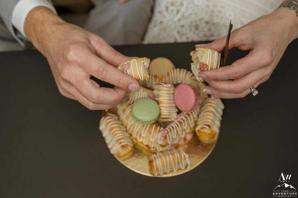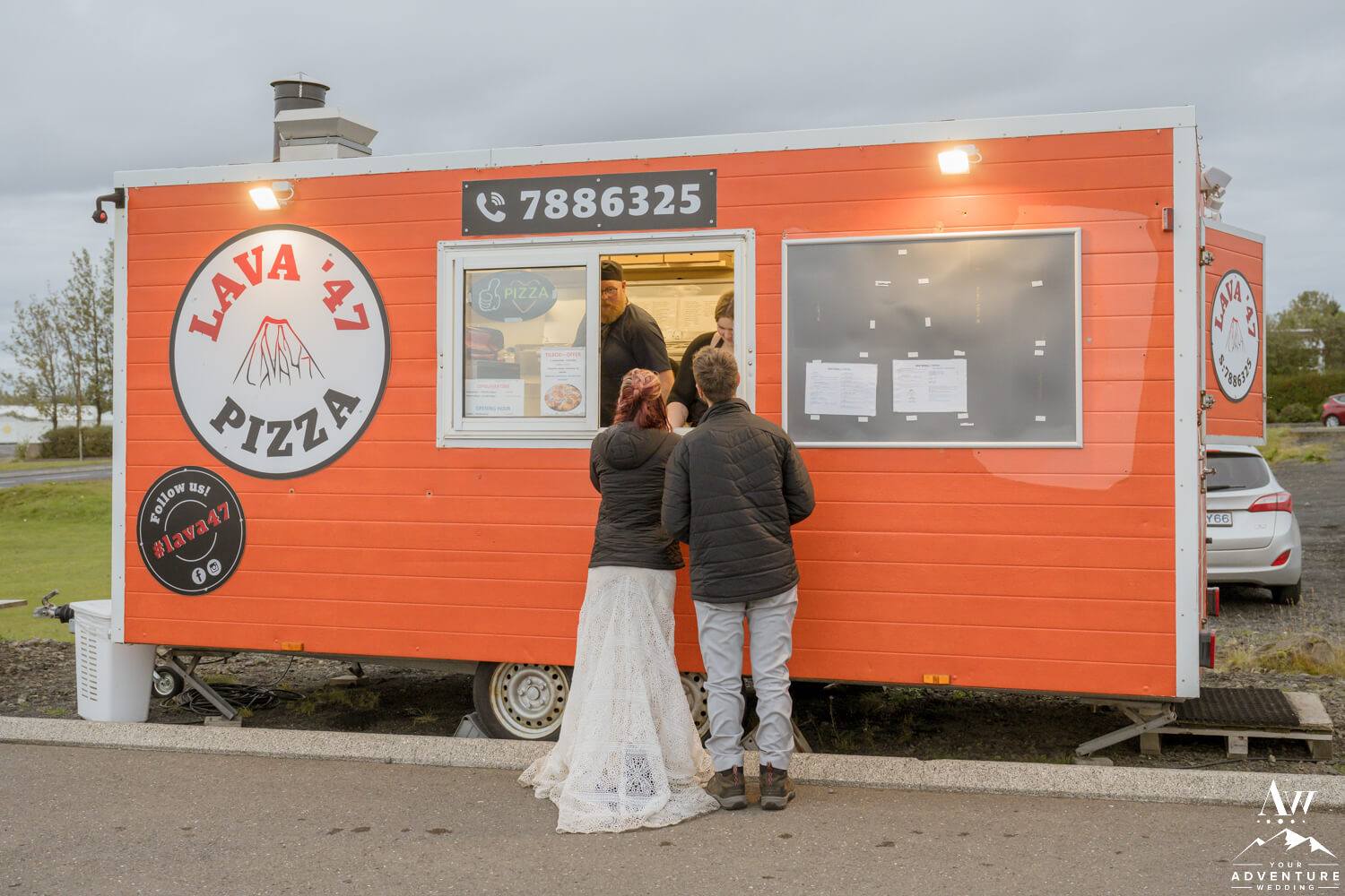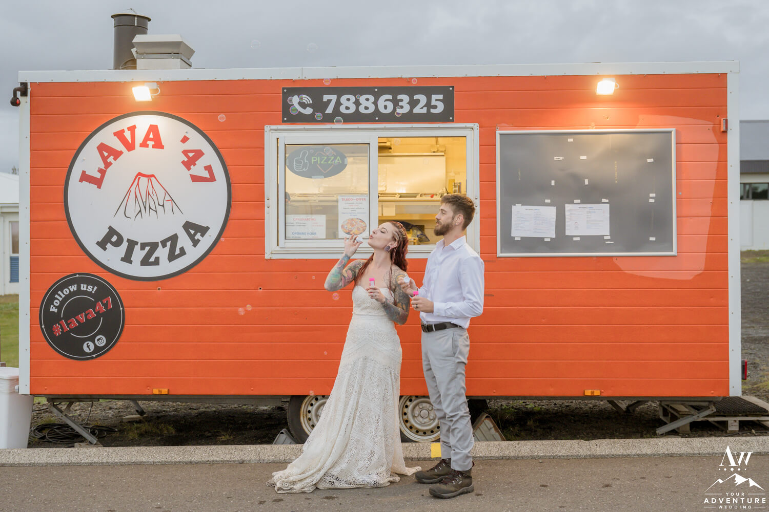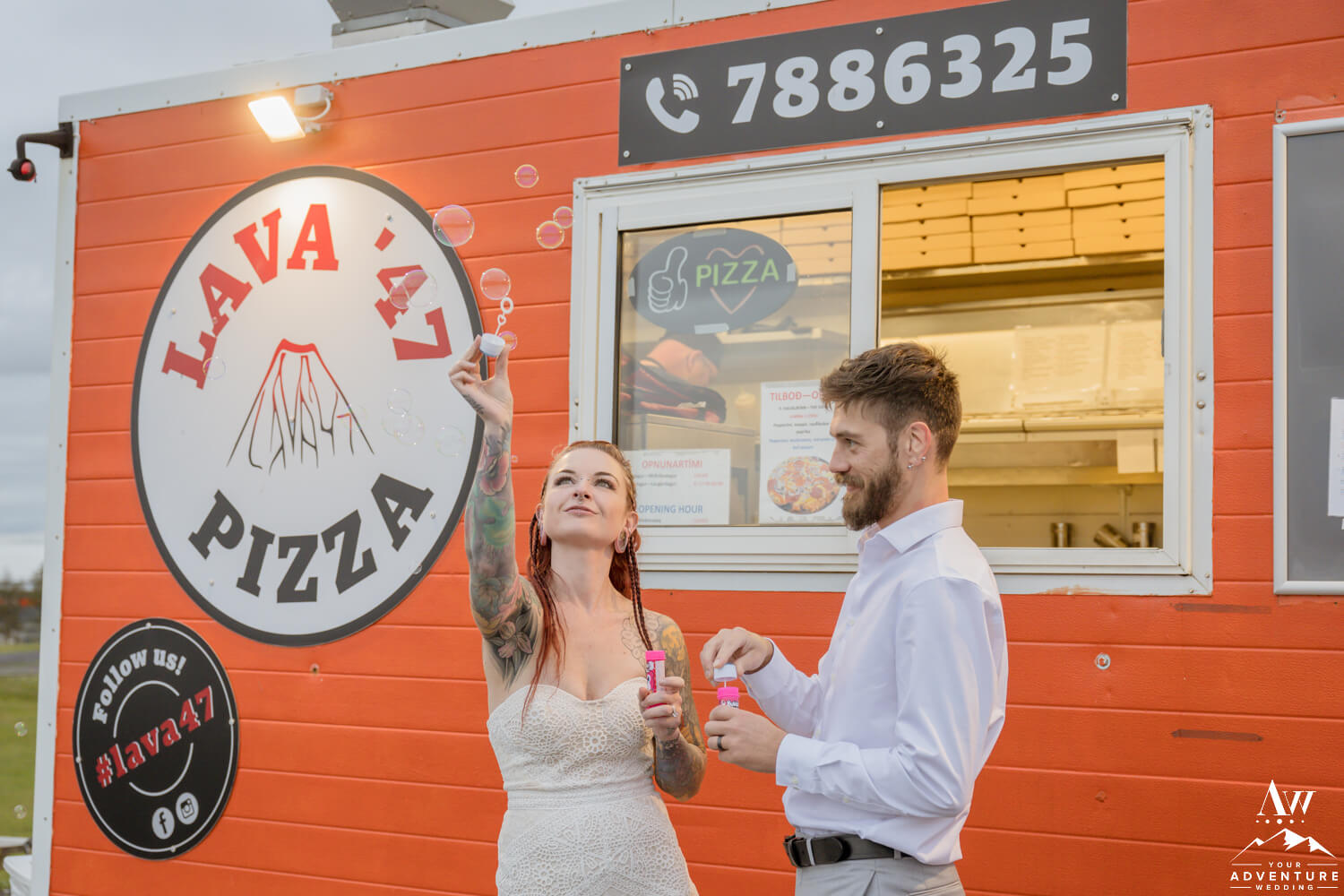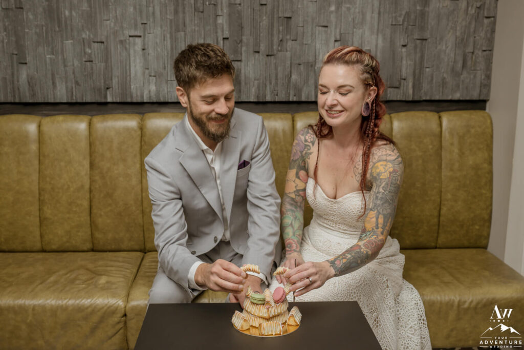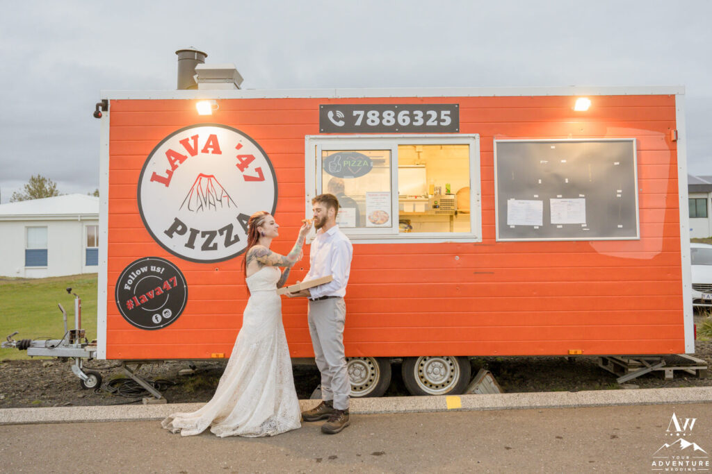 Following an unforgettable day of exploration and love, the newlyweds returned to their host hotel. However, when they came to our Iceland Wedding Planner team they wanted non-traditional elements. Well now it was time for one… To illustrate, the hightailed it across the street to enjoy a delicious pizza feast from the Lava 47 pizza truck! Besides that delicious adventure, they also chose to embark on the Iceland wedding cake tradition (kransakaka), making for a fun and unconventional way to conclude their once-in-a-lifetime September hiking elopement!