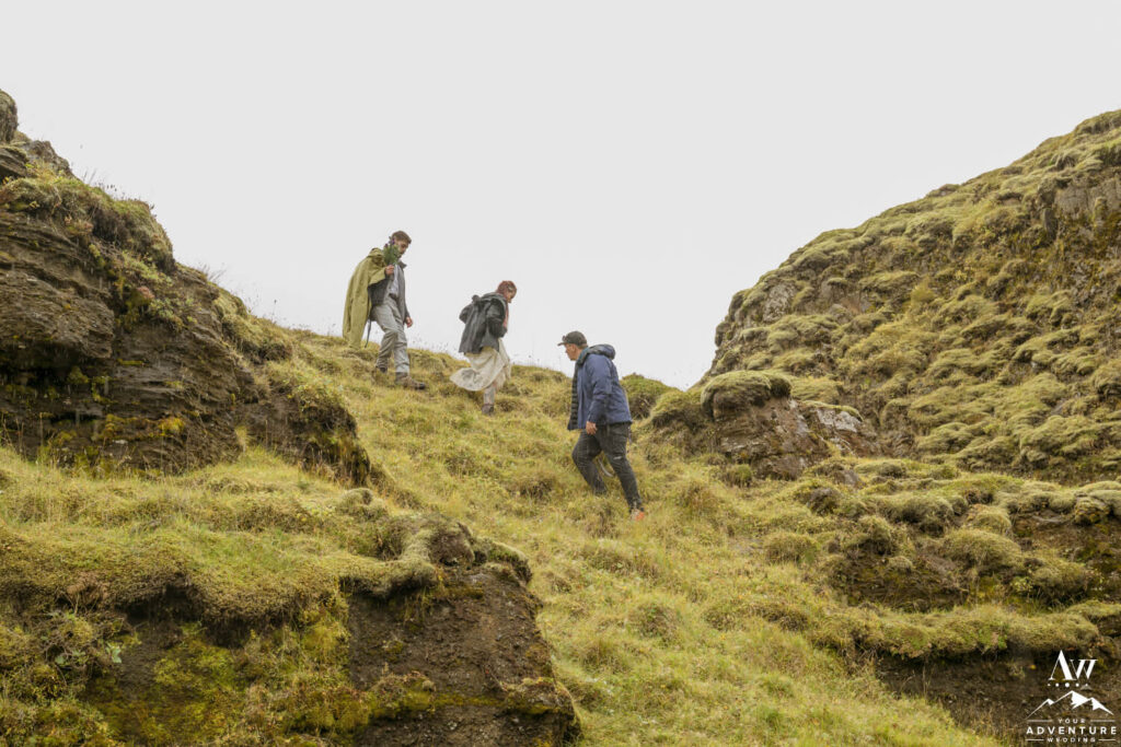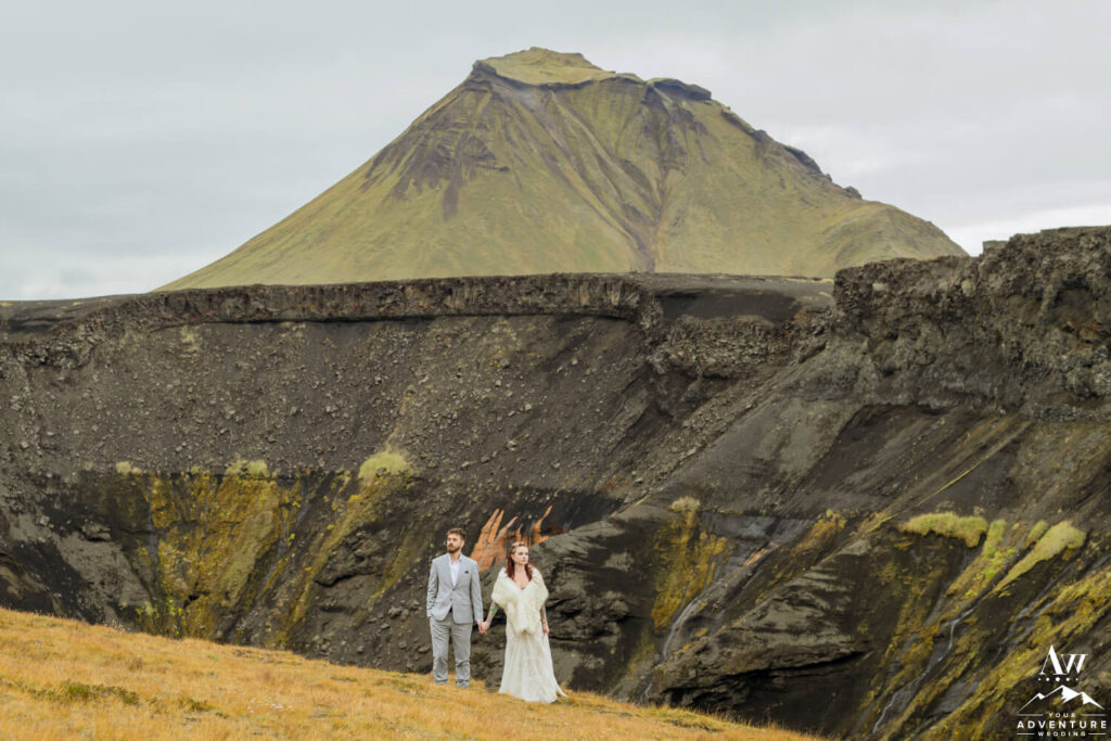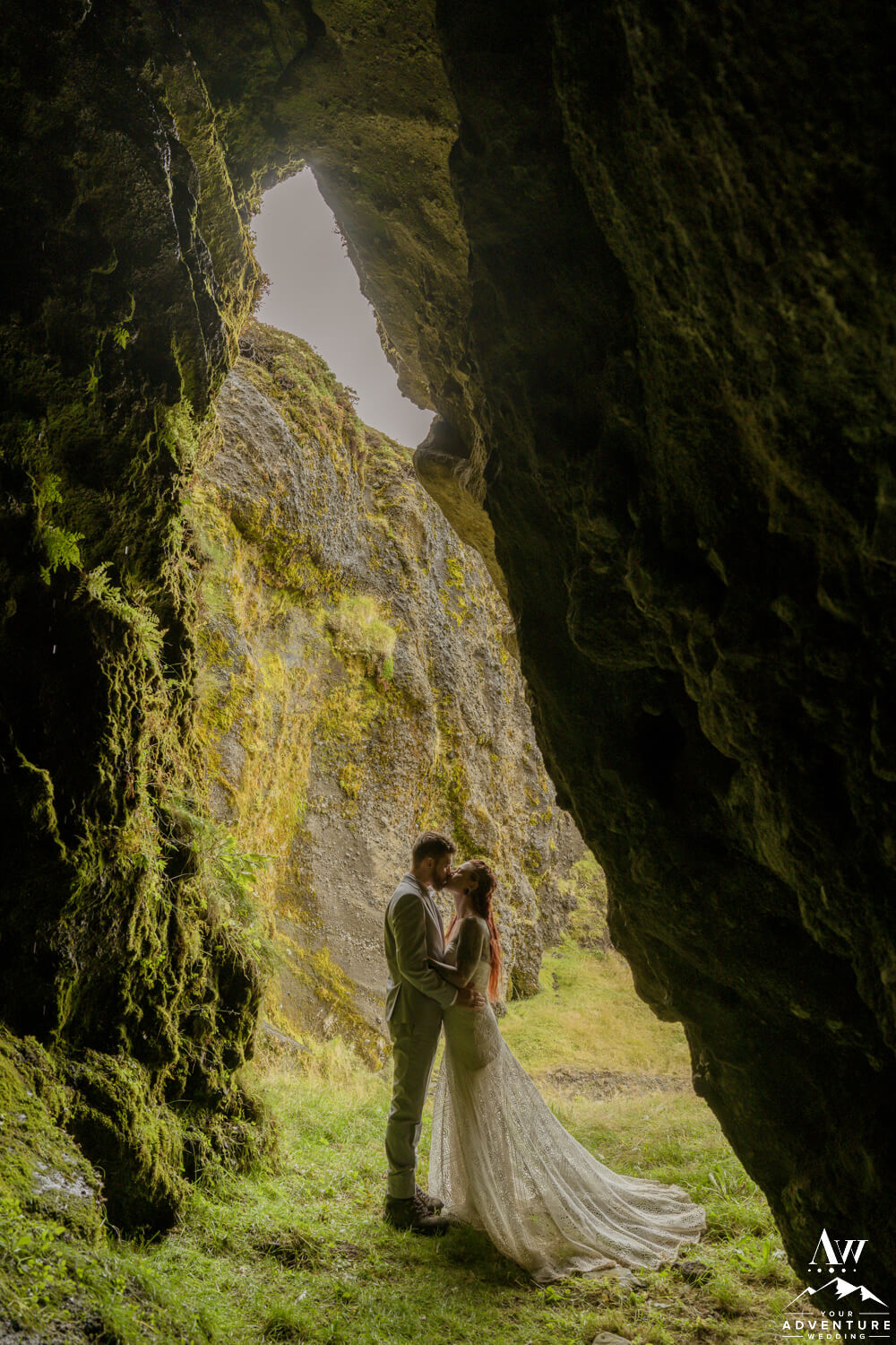 No September hiking elopement in Iceland is complete without a touch of mystery. For instance, the couple ventured into some hidden highland caves, where shadows and light danced around them, making for unique wedding portraits.