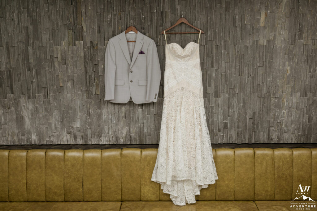 The couple’s September hiking elopement adventure began at Hotel Stracta, a cozy and stylish retreat that served as their home base for a few days. With its welcoming atmosphere and ideal location, it provided the perfect starting point for their wedding day. After a restful night, the morning began with Emily and Aaron getting ready together.