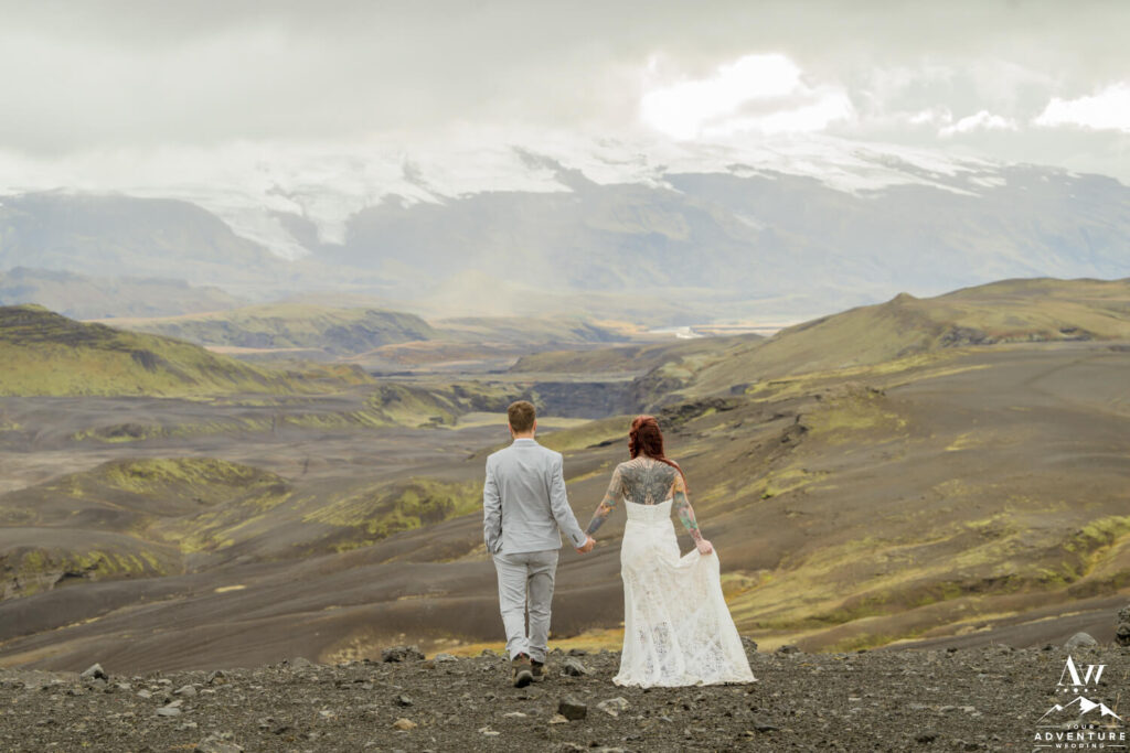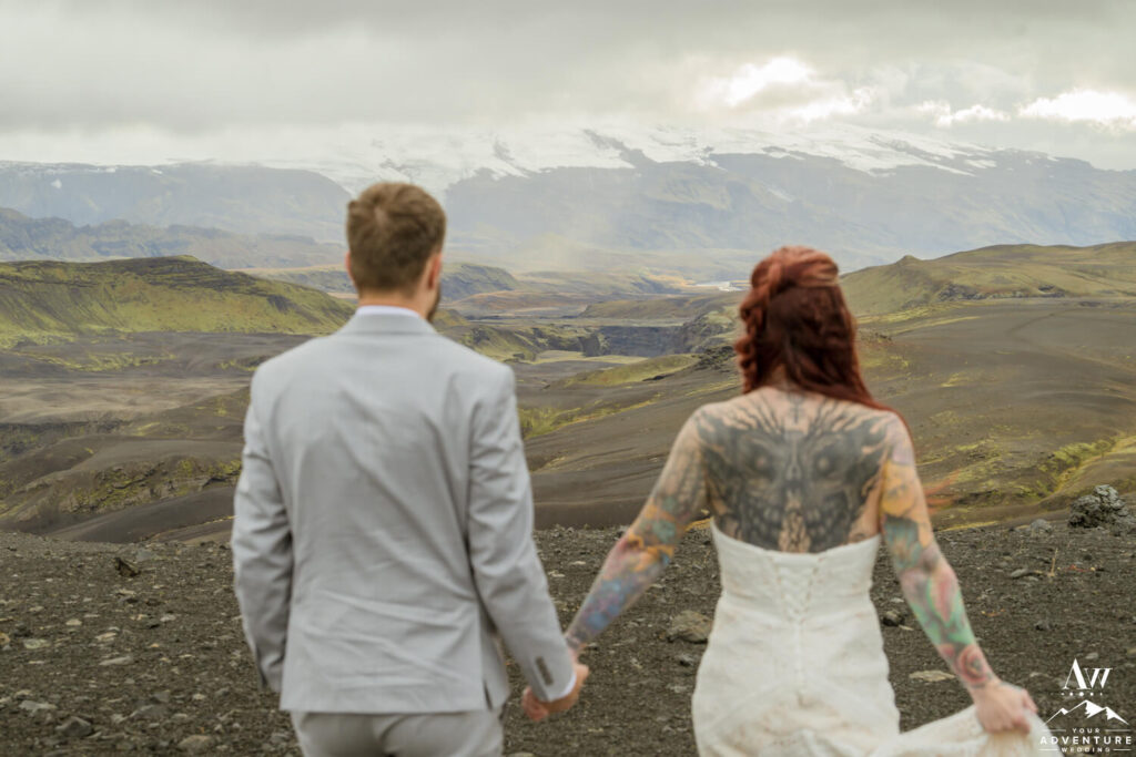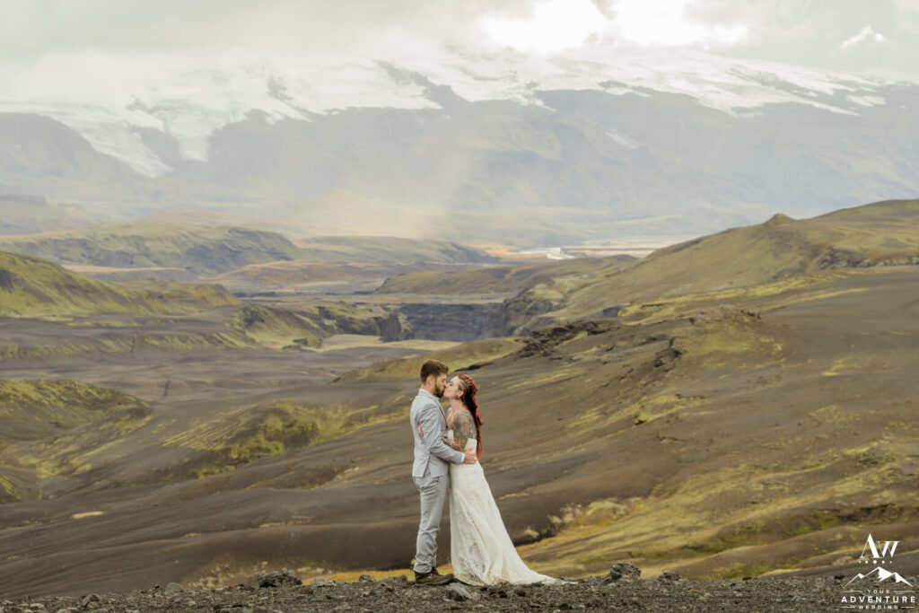 Lastly on the September hiking elopement adventure, is reaching a 360-degree viewpoint that overlooked the vast Icelandic Highlands. Standing atop this vantage point, the newlyweds were surrounded by nothing but expansive landscapes. Truly where distant mountains, deep valleys, and winding rivers created cinematic vibes. What a highlight to their journey! But wait, there’s more!! Keep scrolling…