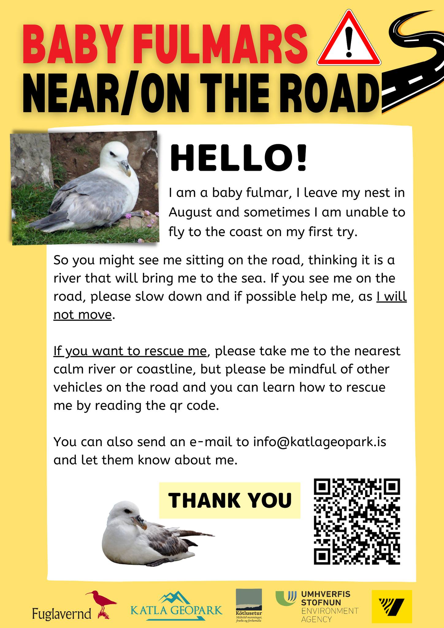 If you’re a bird watcher… Go Birdwatching Around Vík! Nature lovers will enjoy spotting puffins, Arctic terns, and other seabirds along the cliffs and beaches of Vík. But between mid-August to early September, your most important contribution will be saving a baby Fulmar! These birds mistakenly find their way to the Vik area roadsides thinking the road is a river that will take them safely to the ocean. Read more below on how to save them…