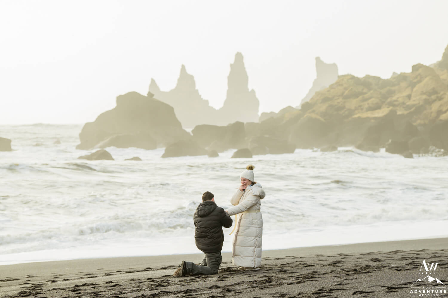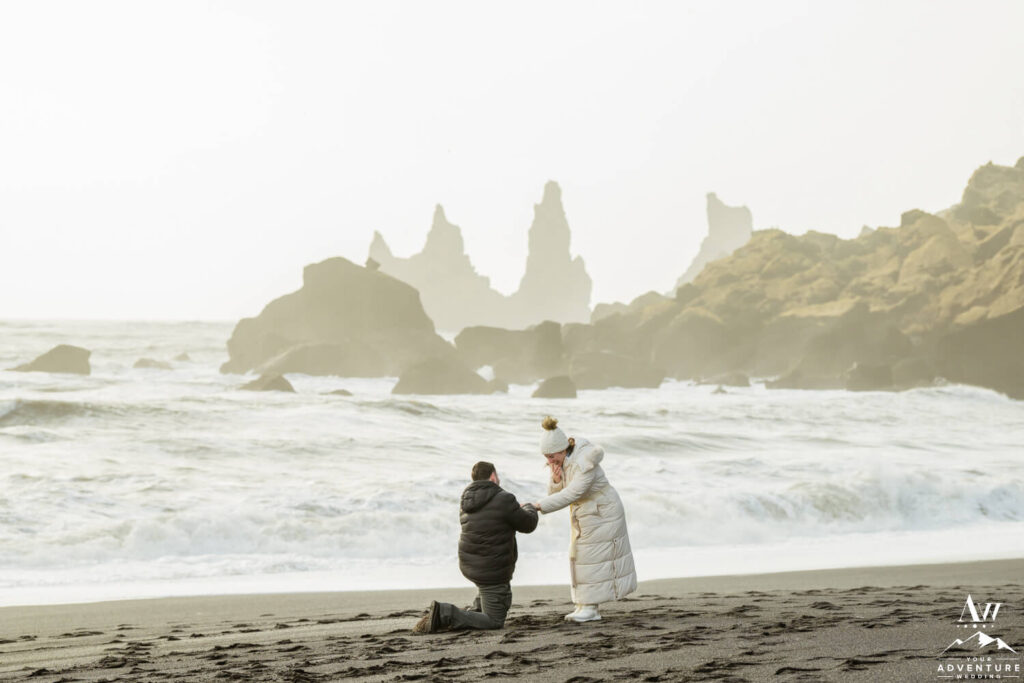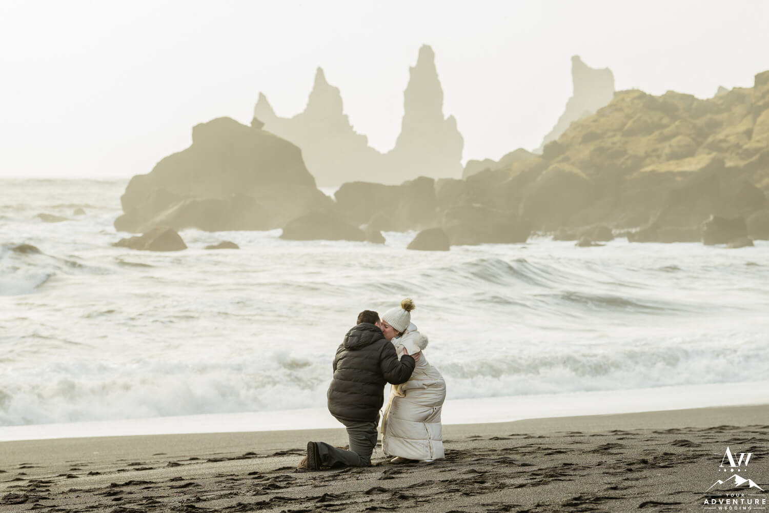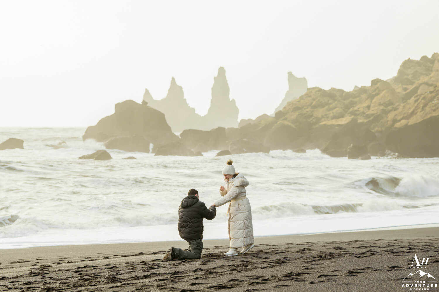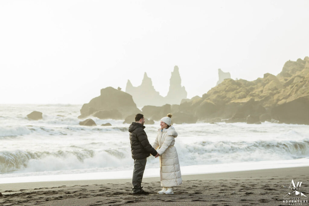 Marco worked with our Iceland Wedding Planner team weeks before their self-drive Iceland itinerary begins. Choosing a Vikurfjara proposal was just one of the many option he could choose from. After all, the things to do in Vik are abundant along with no shortage of picturesque locations!