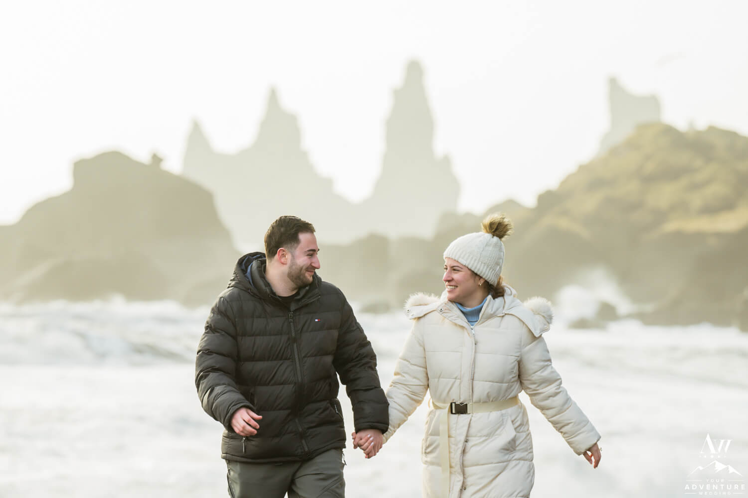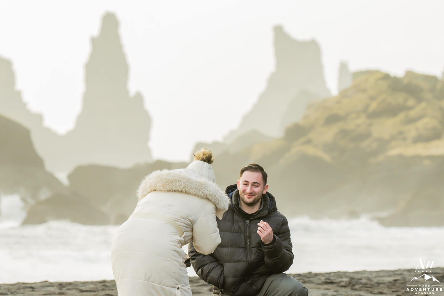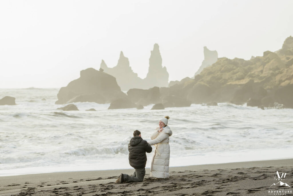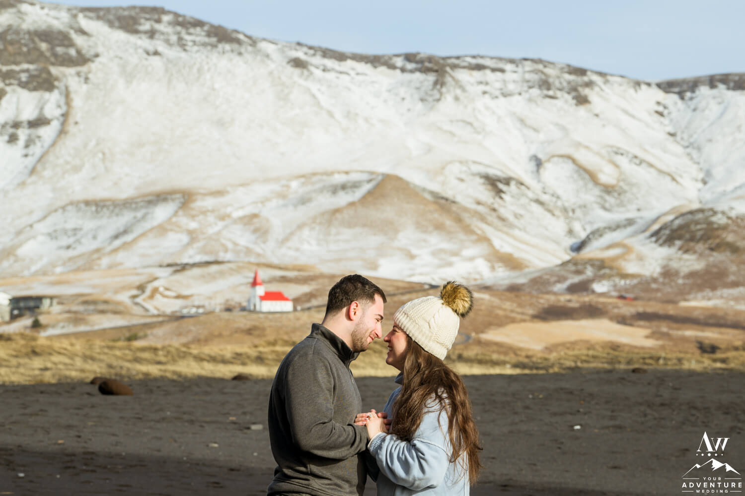 Marco worked with our Iceland Wedding Planner team weeks before their self-drive Iceland itinerary begins. Choosing a Vikurfjara proposal was just one of the many option he could choose from. After all, the things to do in Vik are abundant along with no shortage of picturesque locations!