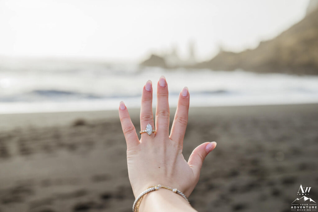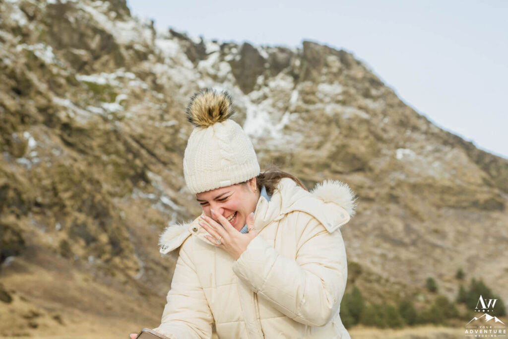 Now onto the main attraction… Marco and Stephanie’s Vikurfjara proposal… Imagine kneeling down on volcanic black sands. With only the crashing Atlantic waves as a soundtrack! Oh la la!! Firstly, Stephanie had a feeling an Iceland proposal might happen sometime during their trip but not that day or location. Secondly, she thought they were just going for a morning walk on a black sand beach so she was the definition of surprised! Thirdly, she said yes!