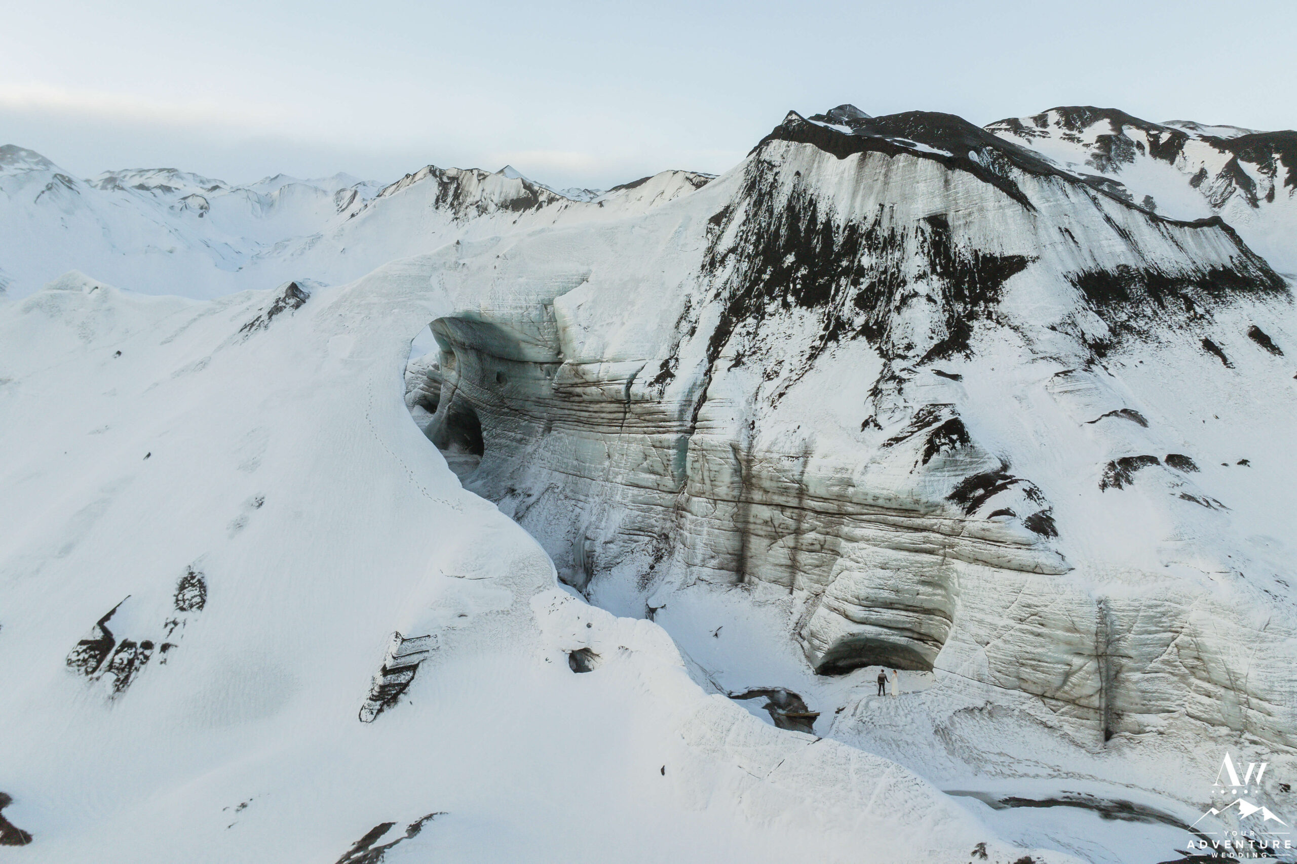 Furthermore, as we always say… No winter elopement in Iceland would be complete without a visit to an Iceland ice cave! After all, these stunning natural formations create an unreal backdrop for wedding portraits. Likely why Katarzyna and Jacek braved the elements to explore not just one, but two! And delighted in a glass of champagne in celebration too as the day turned to night!