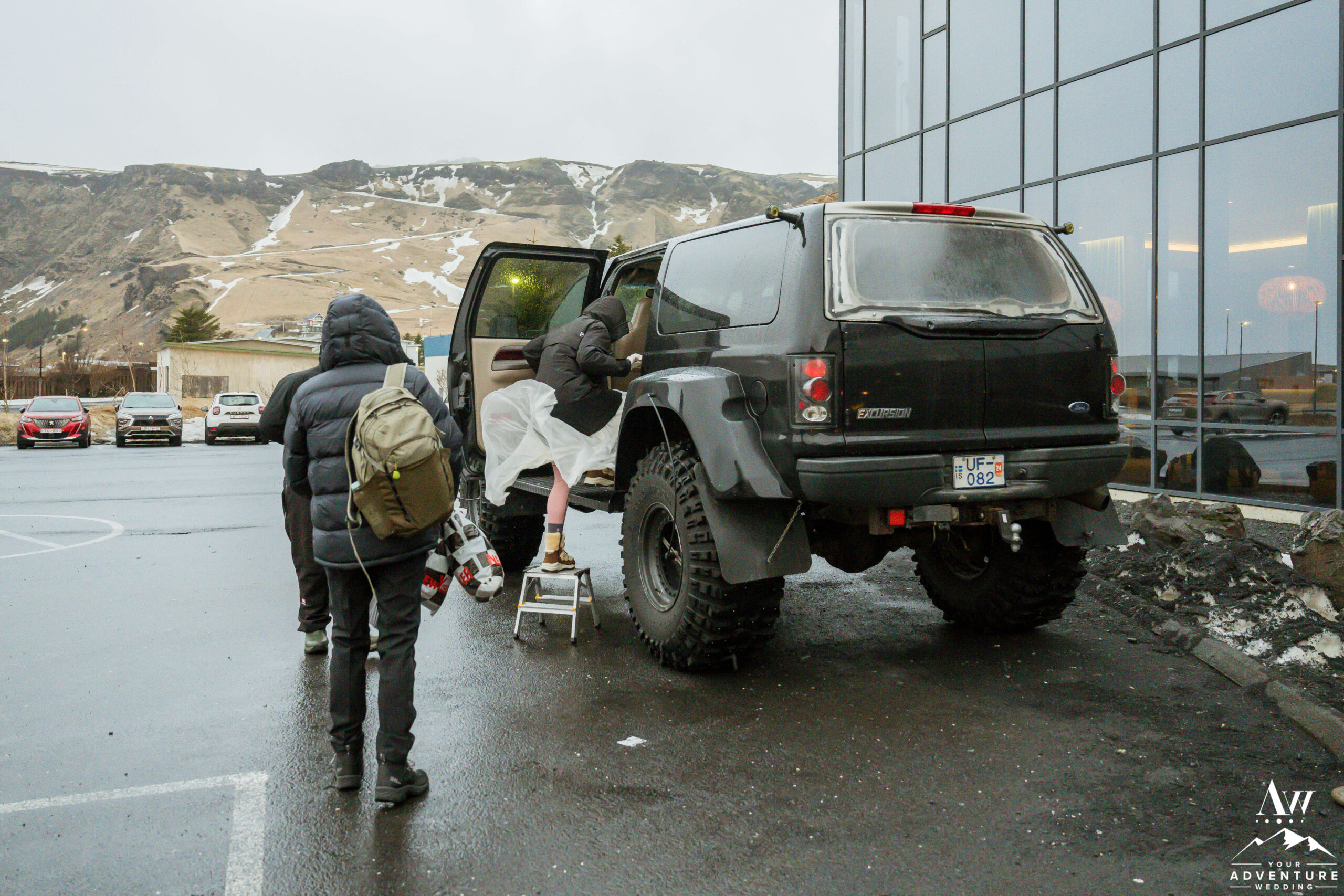 Next, our hometown of Vik Iceland is known for its black sand beaches, cliffs, and dramatic winter weather. Which for many offers the ideal setting for those seeking something off the beaten path. Eloping in our tiny southern town allows you to immerse yourself in the snowy mountains and untouched landscapes. The morning began before Katarzyna and Jacek. Our Vik wedding photographer was hard at work documenting all of their fabulous details. Then they grabbed their “go bags” and started their journey to their February Iceland elopement ceremony location…